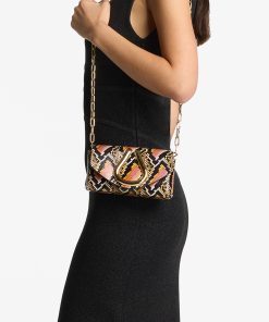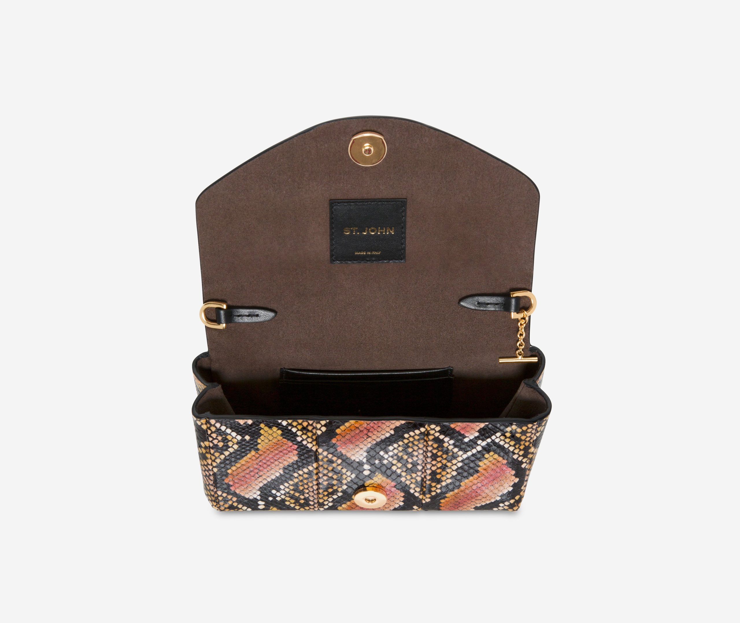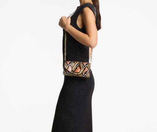 Swap solids for this bolder snake print handbag is simply stunning. Featuring signature St. John loop hardware, leather and chain straps.