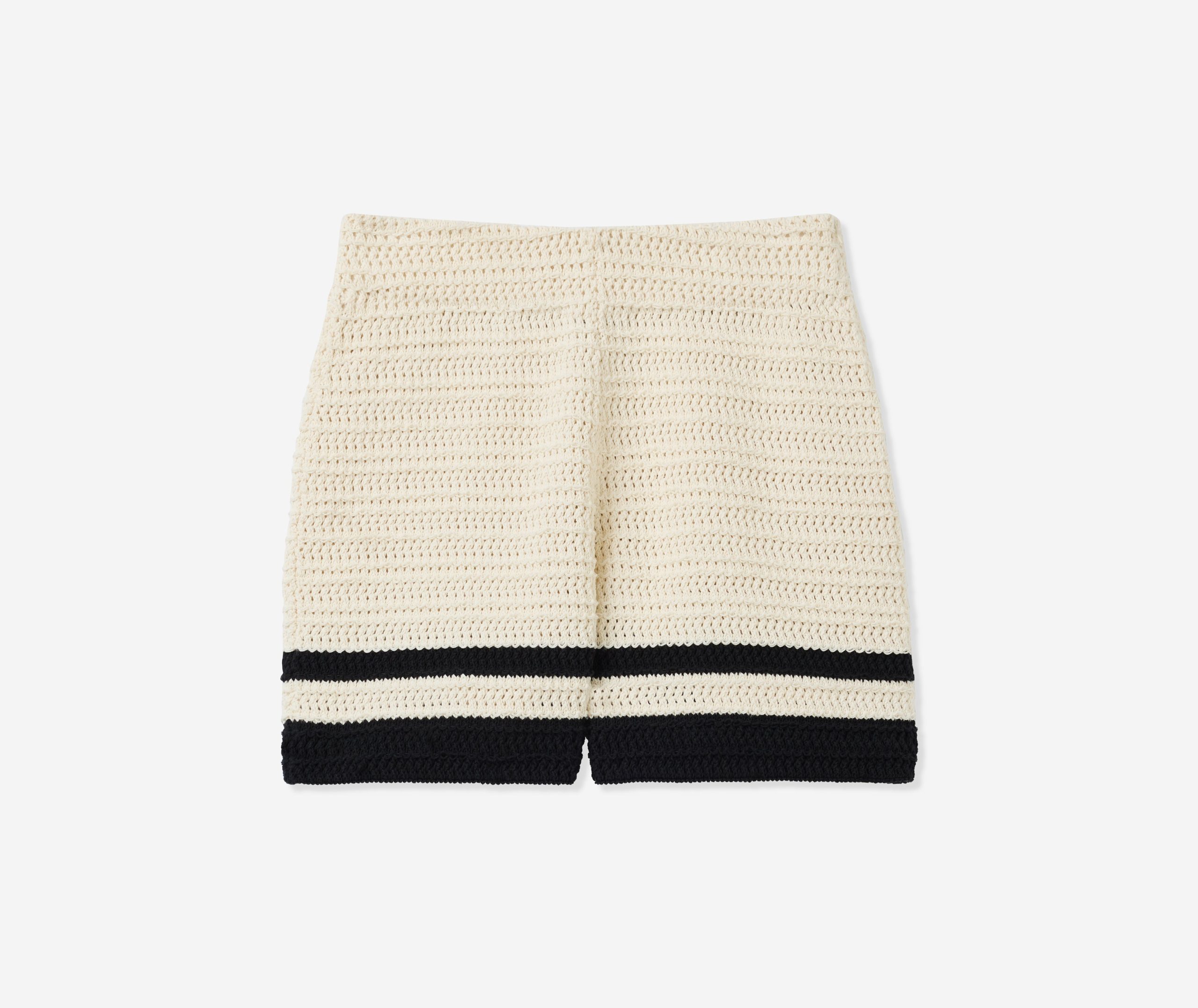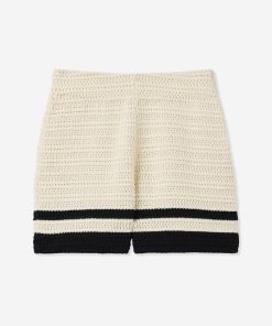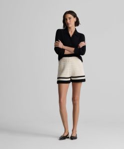 St.John Women’s Chelsea Short In Striped Pointelle Knit | Ecru & Black Multi