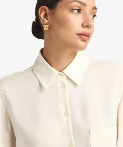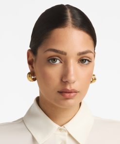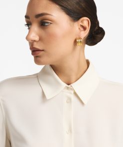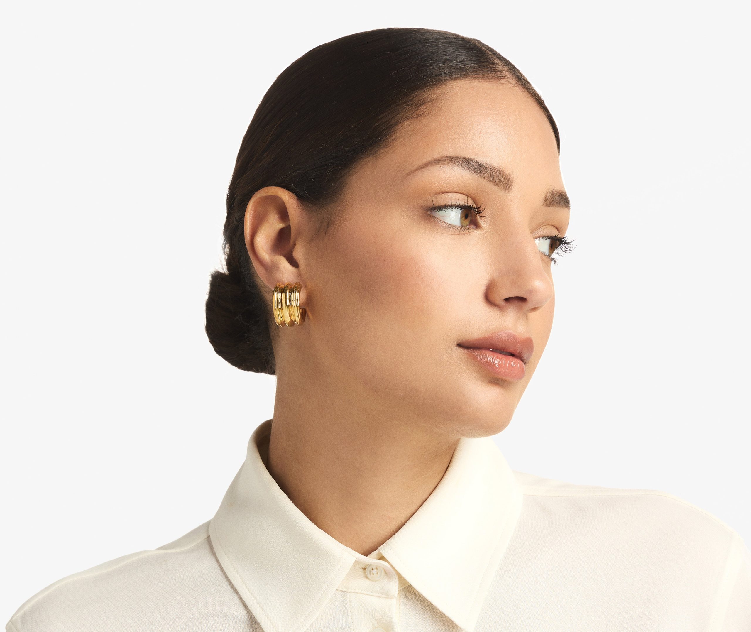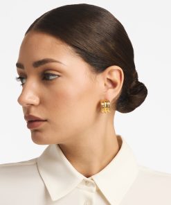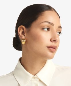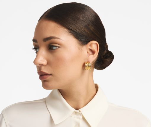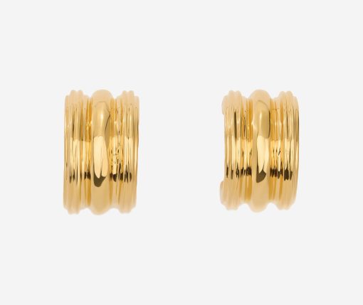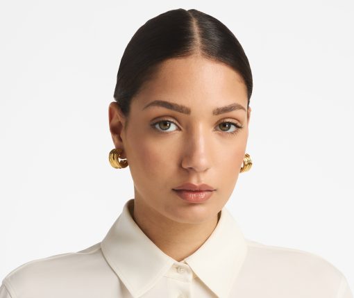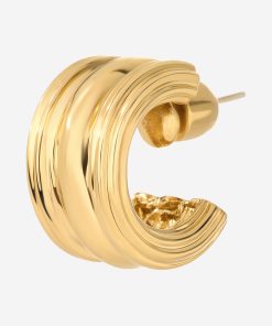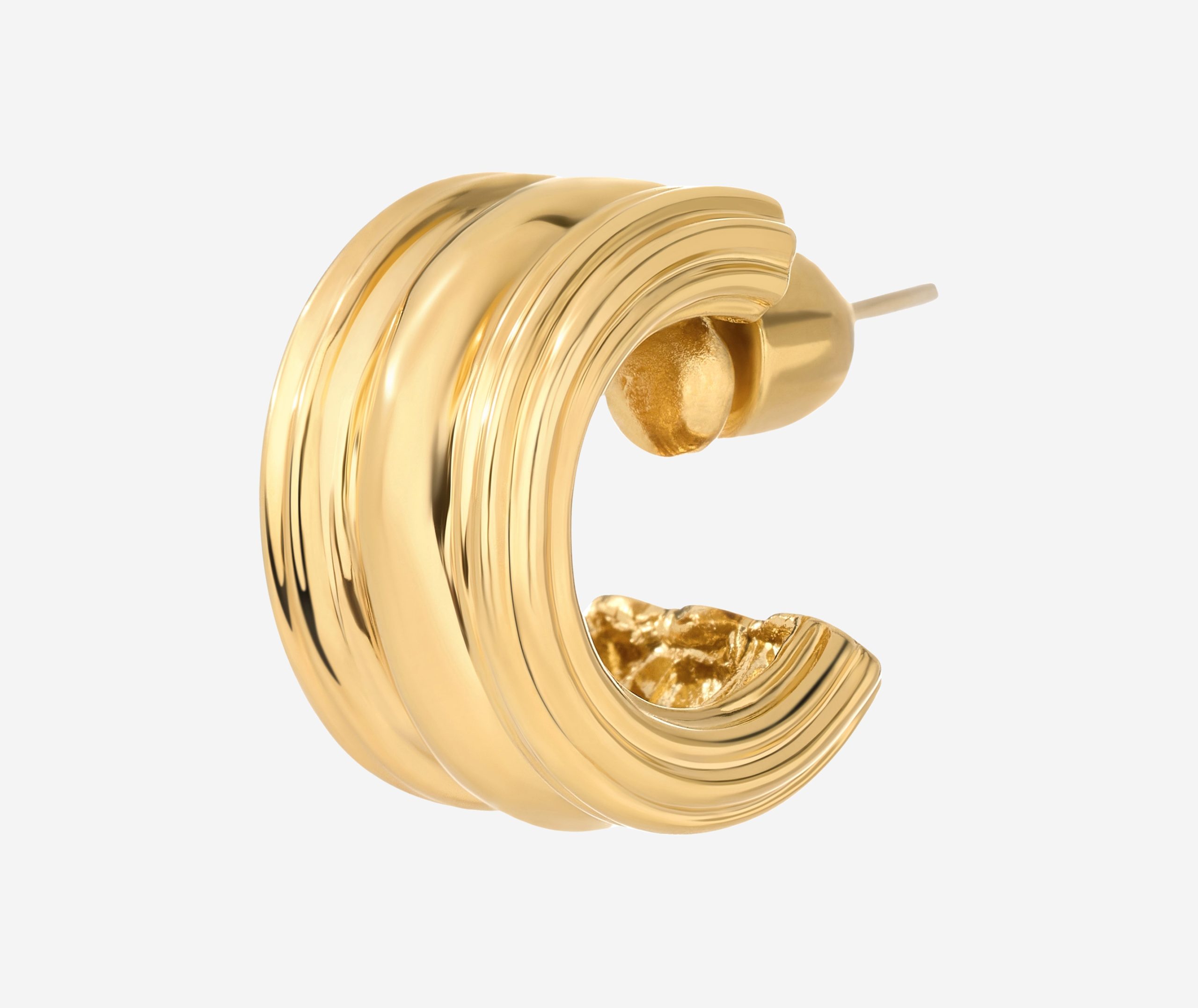 This hoop earring triples the fun, in Chirstina Caruso’s signature hand carved ribbed texture.Three vertical rows define this chunky-yet-petite style.