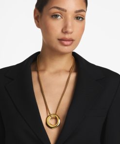 Accentuate the décolletage or top a tee with this hand sculpted circle pendant necklace.
