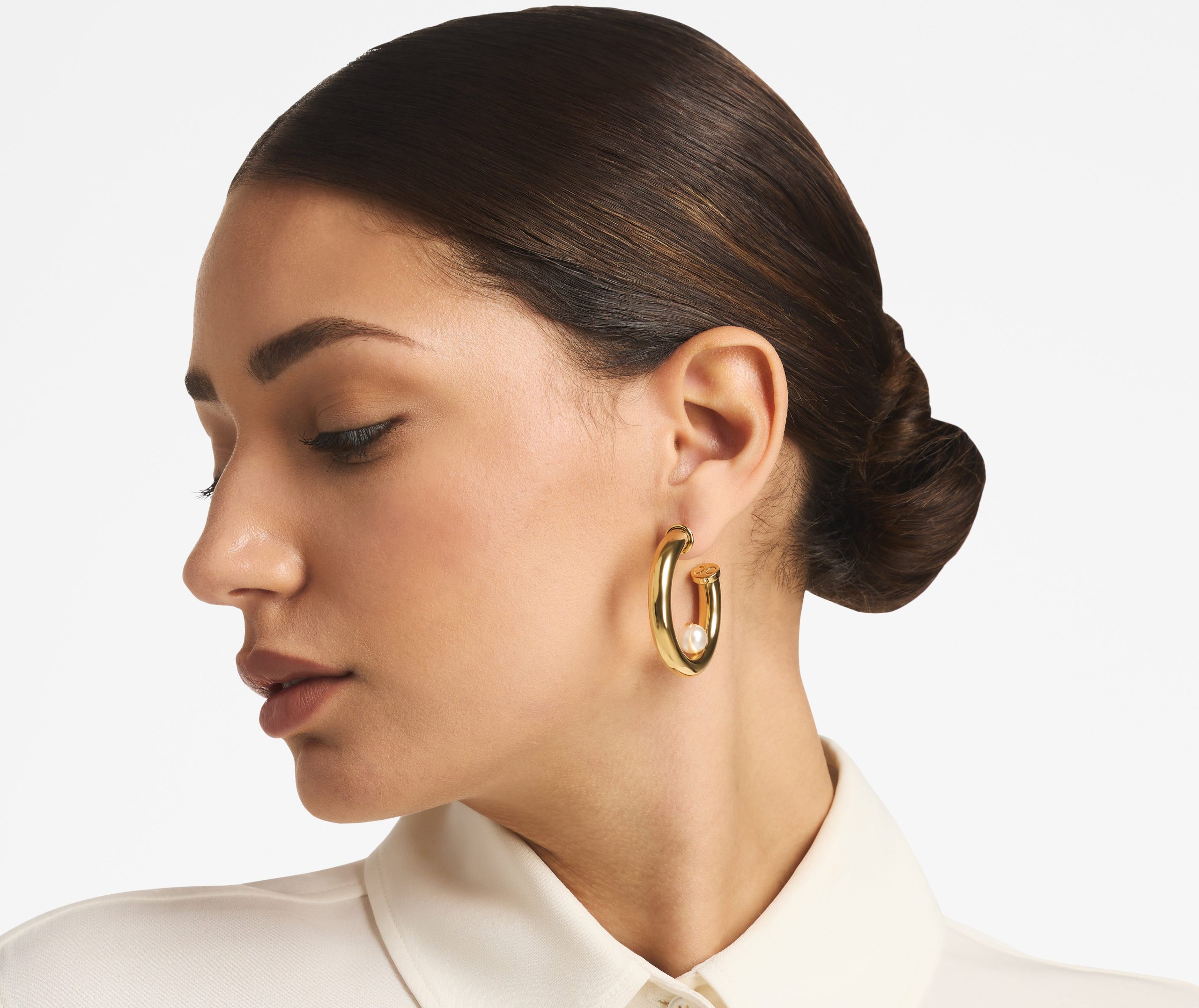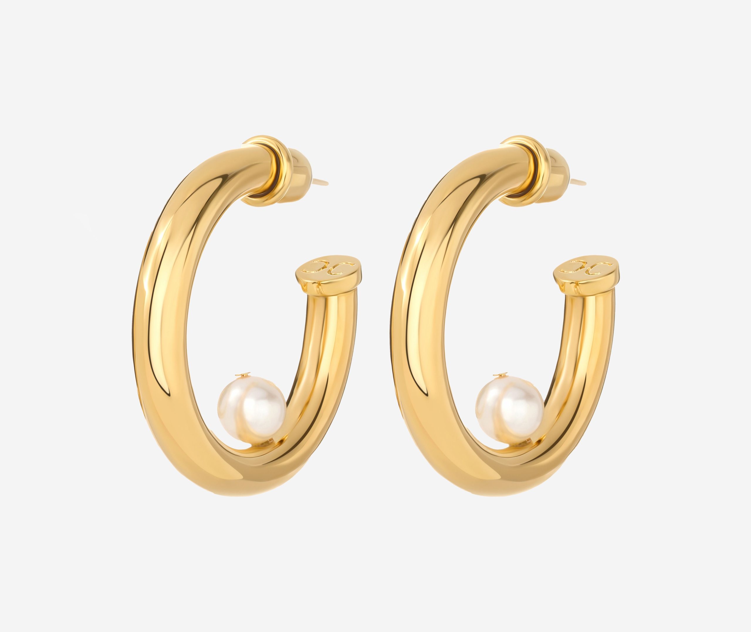 While a sophisticated-yet-chunky hoop earring is gorgeous in its own right, the pearl accent takes this ear candy to an even chicer level.