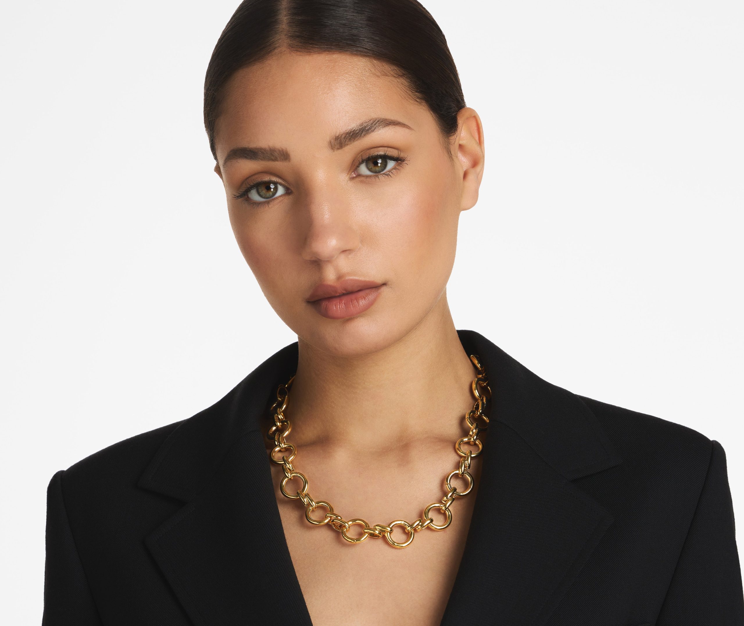 Bold yet understated, this versatile Italian chain necklace can be worn daily to add a pop of glam to any outfit.