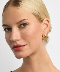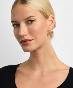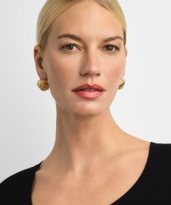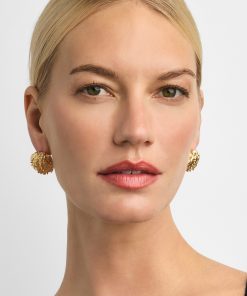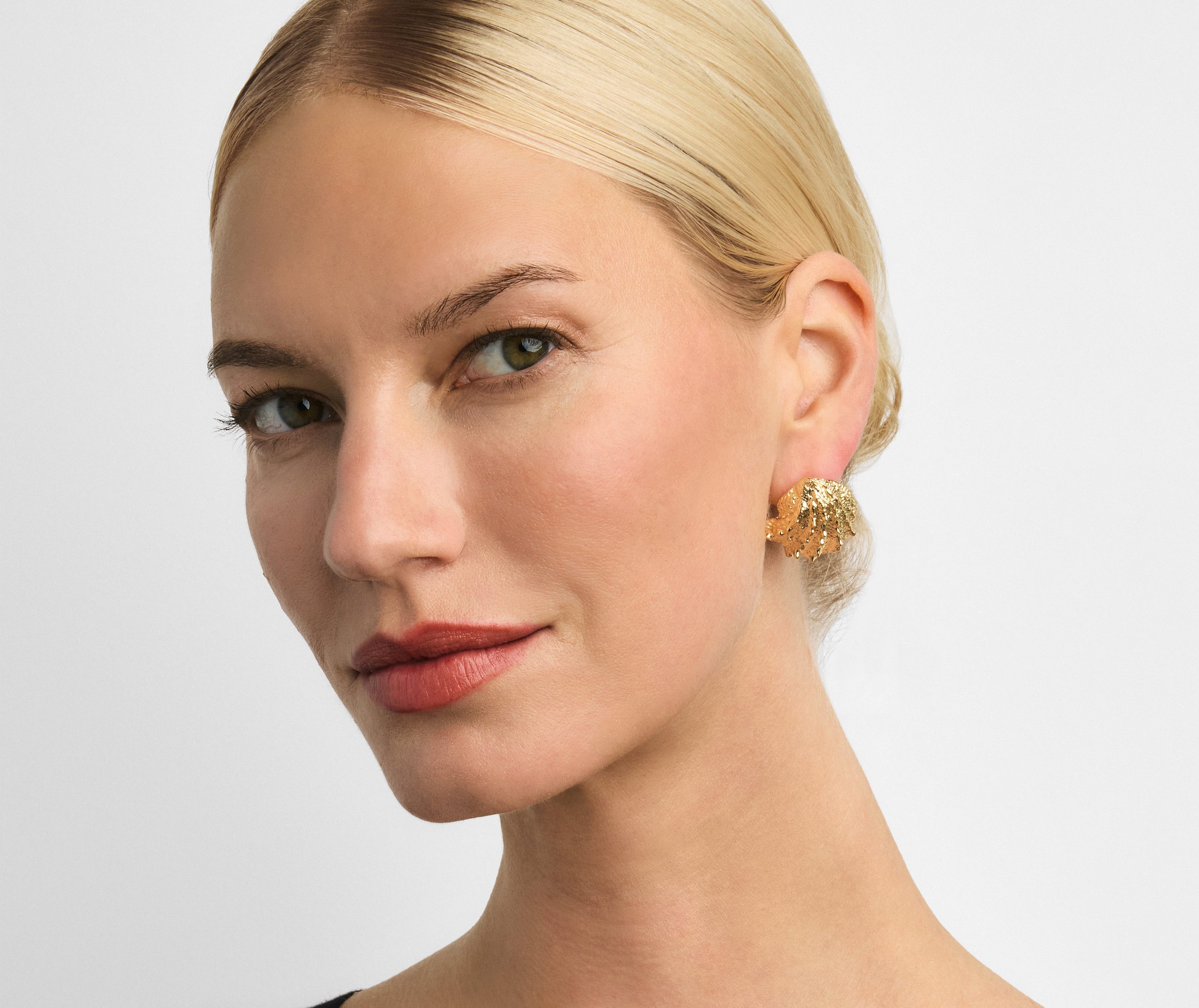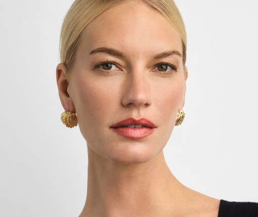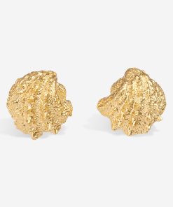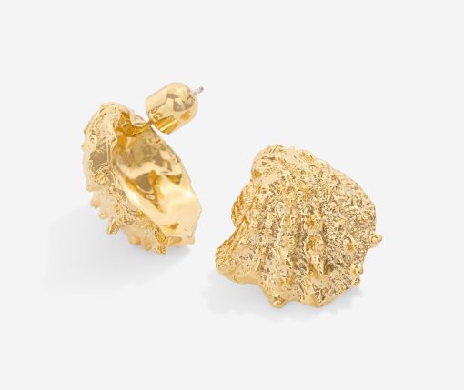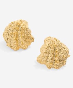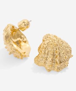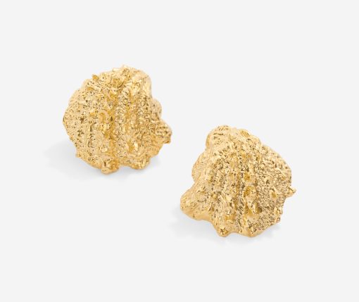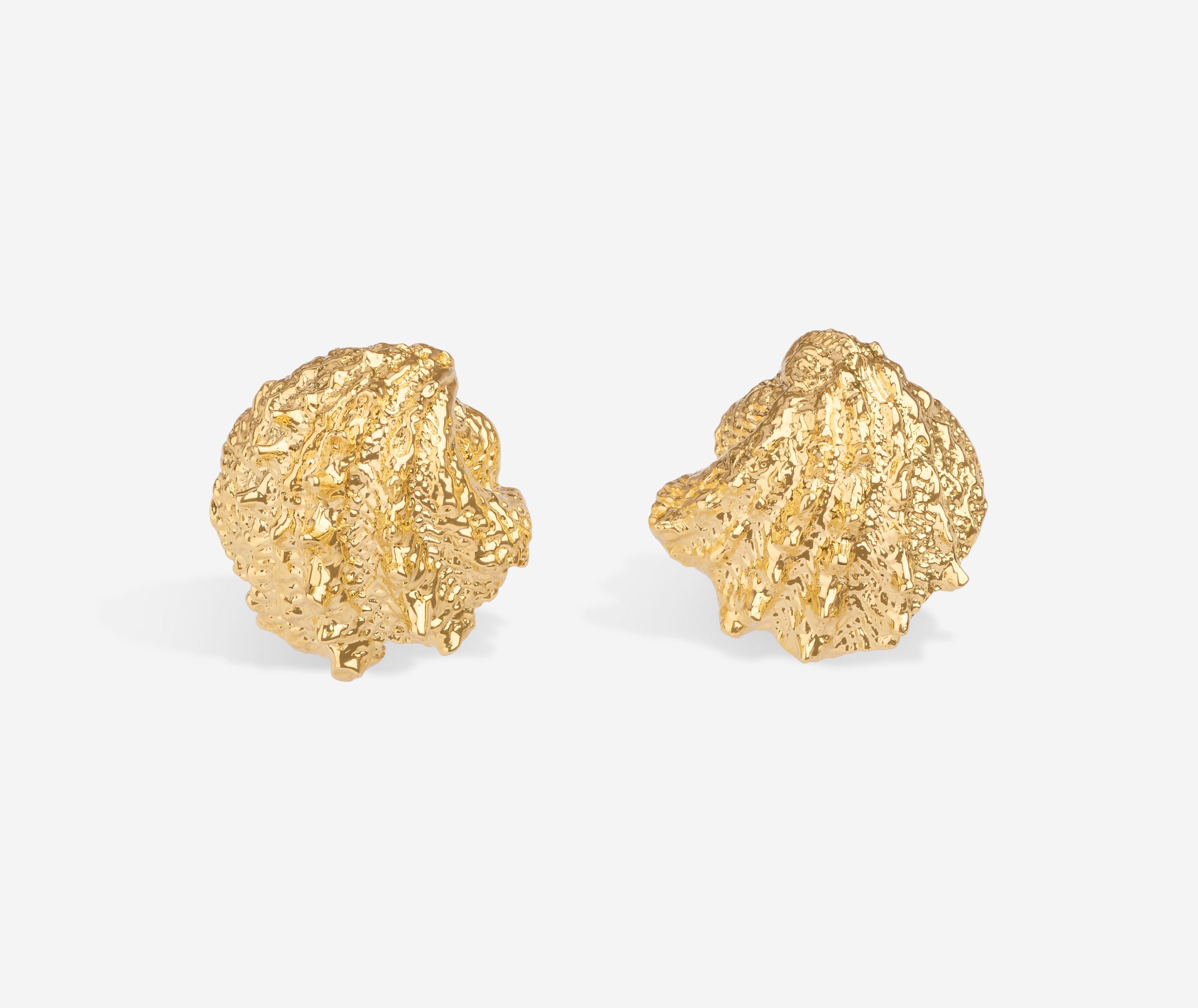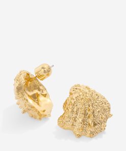 These shell-inspired stud earrings feature a textured gold design, bringing an organic feel to the shiny accents.