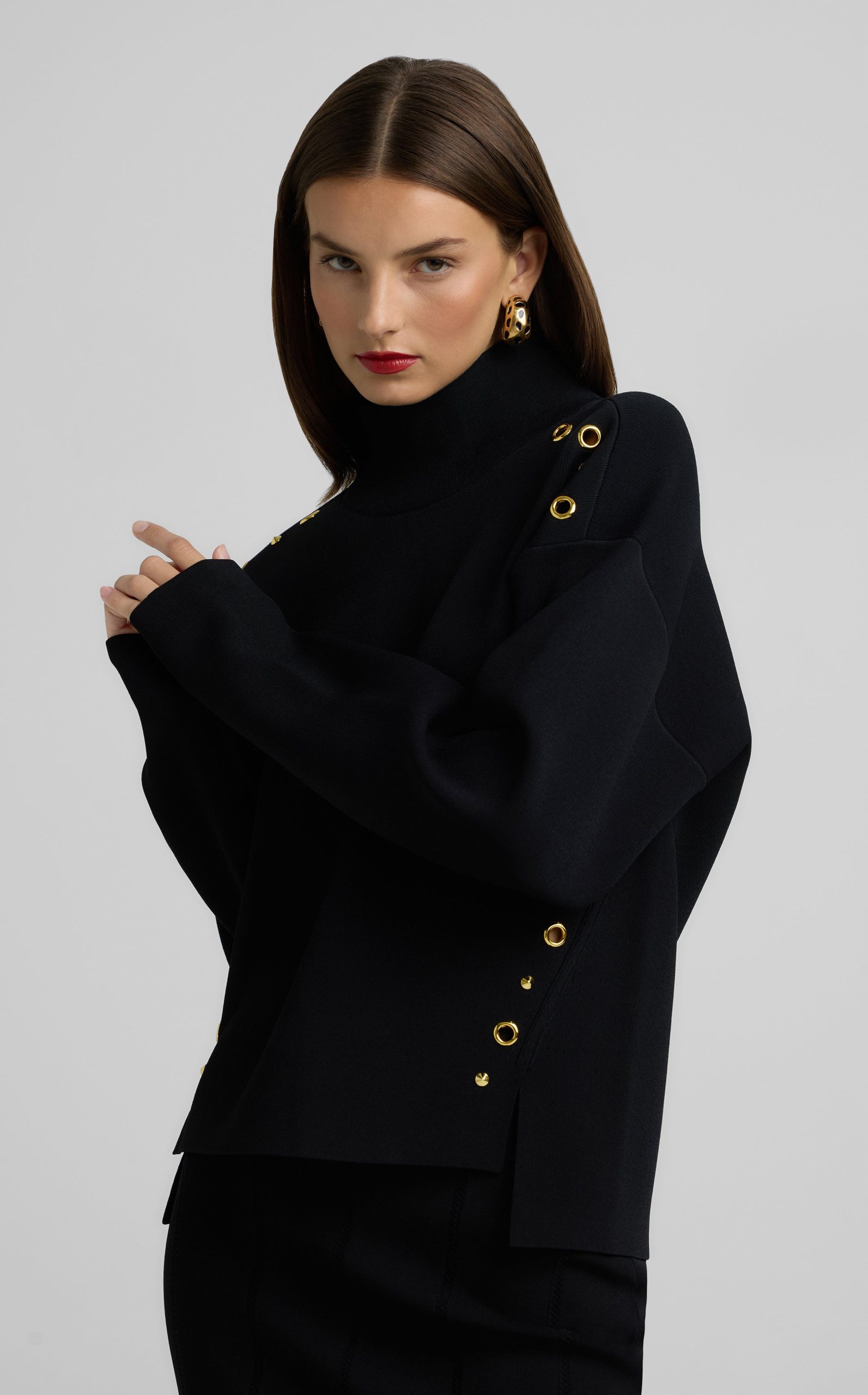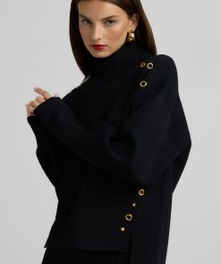 St.John Women’s Embellished Turtleneck Sweater | Black