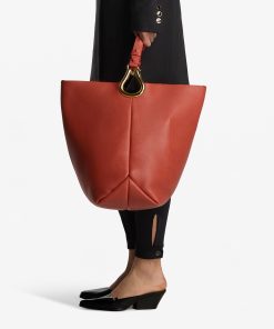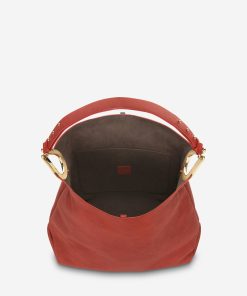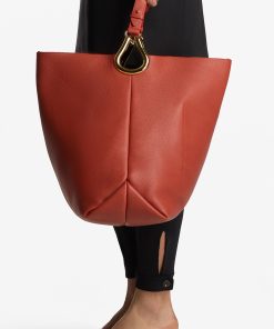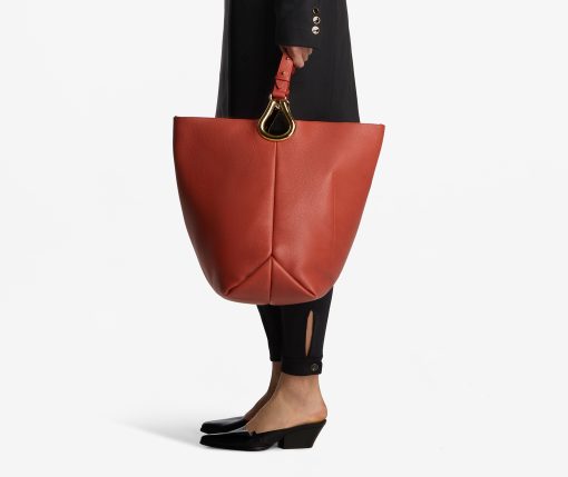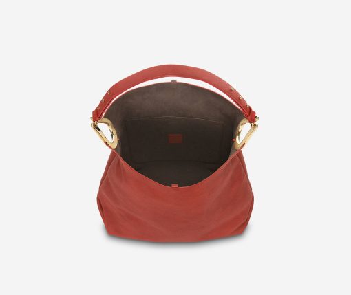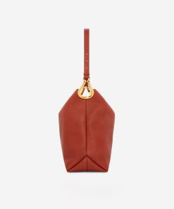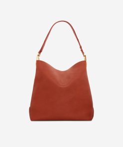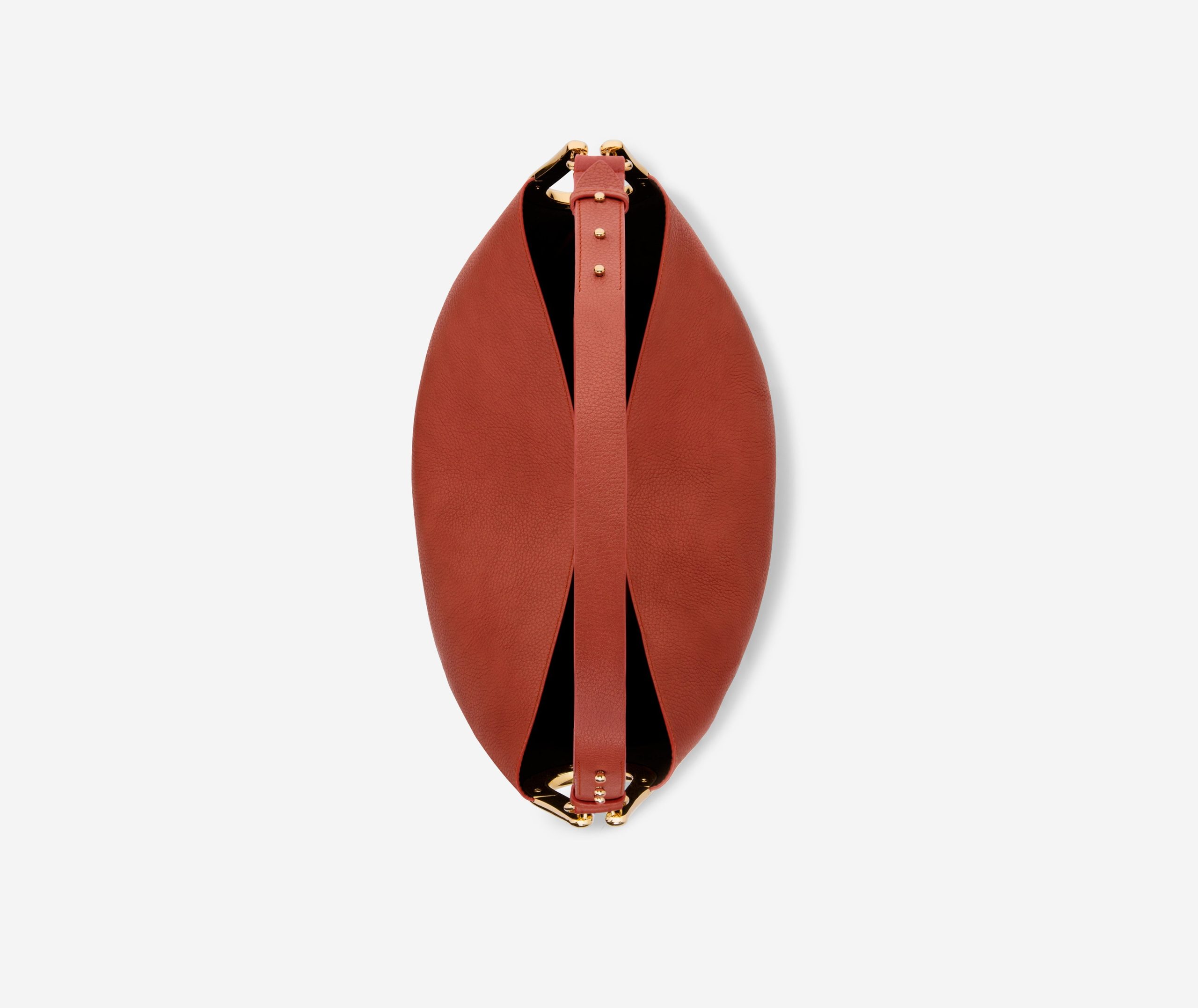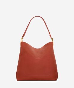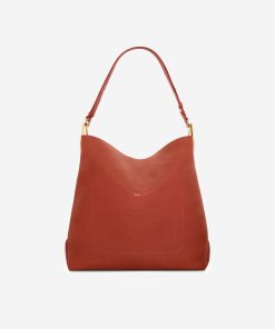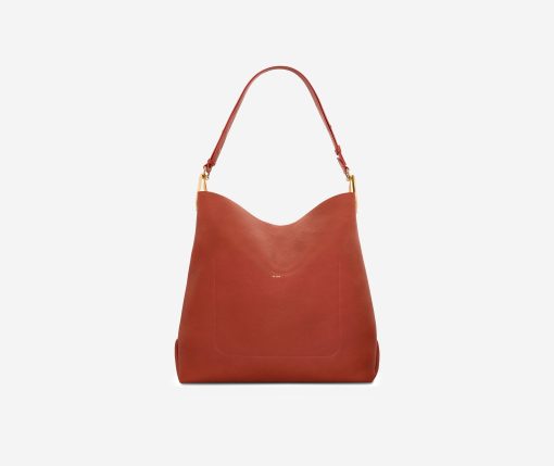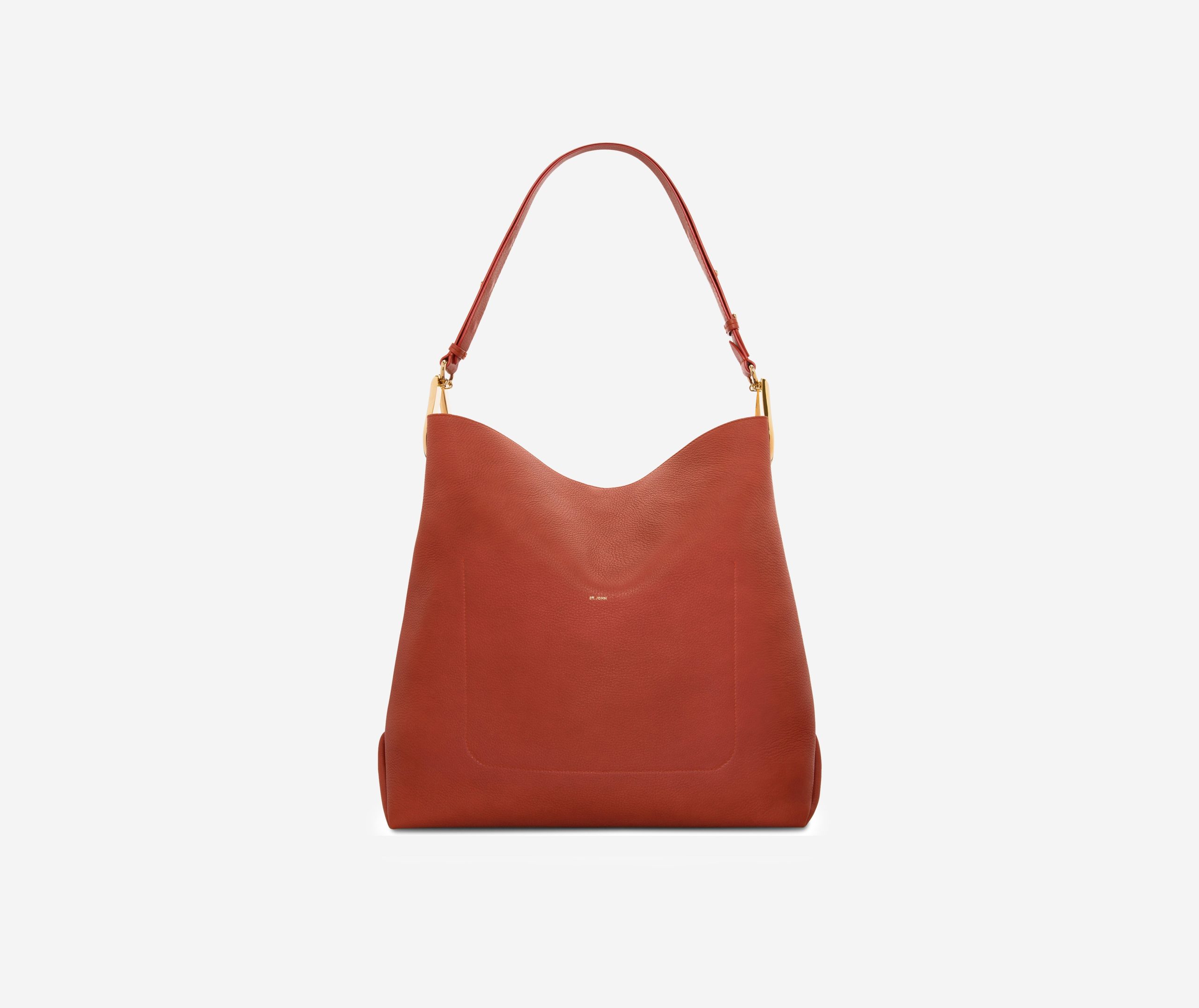 Leather hobo bag in grainy leather with notched top handle, signature loop design at sides, gold-tone accents, and interior side pocket. Modern, versatile and elevated; meet the perfect carryall in a roomy silhouette. Offers complimentary delivery and returns. Delivery and Return Policy