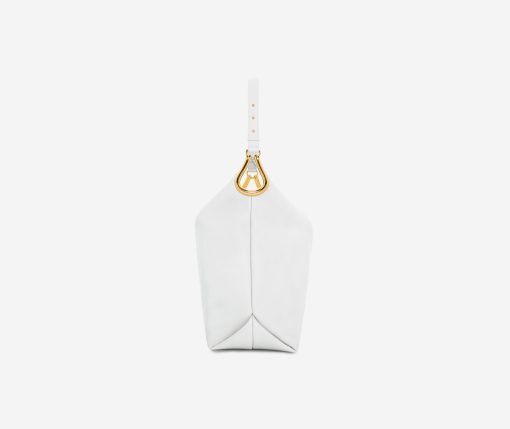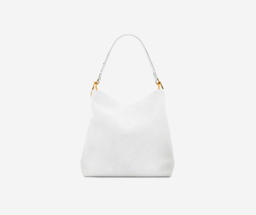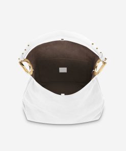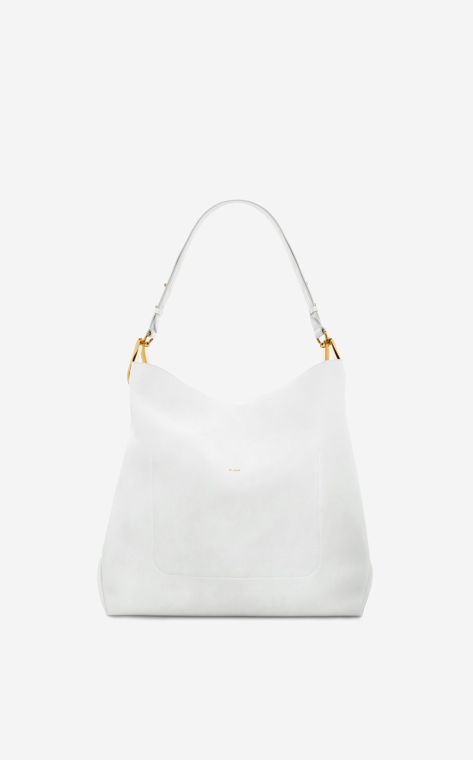 Leather hobo bag in grainy leather with notched top handle, signature loop design at sides, gold-tone accents, and interior side pocket. Modern, versatile and elevated; meet the perfect carryall in a roomy silhouette. Offers complimentary delivery and returns. Delivery and Return Policy