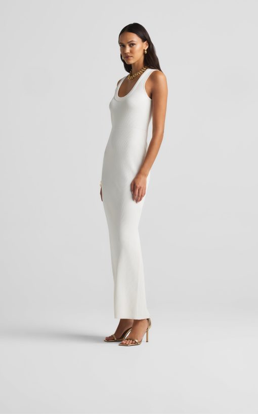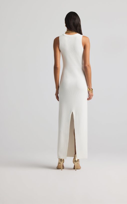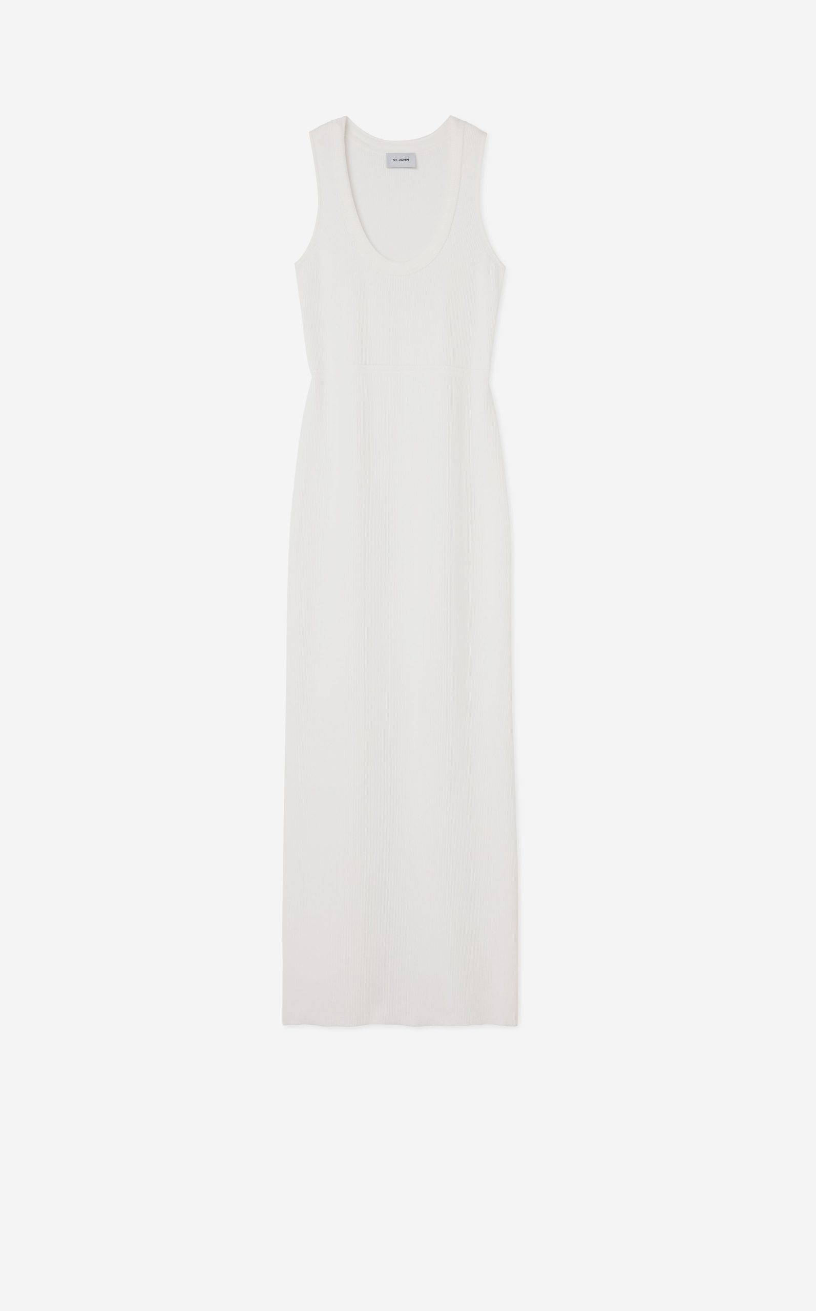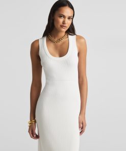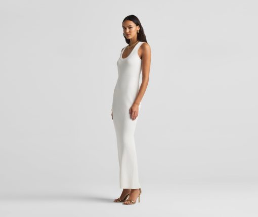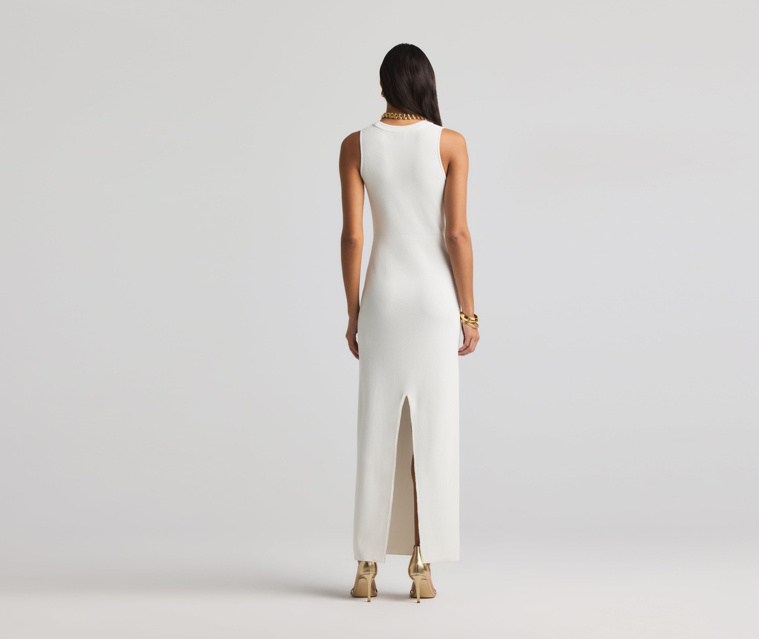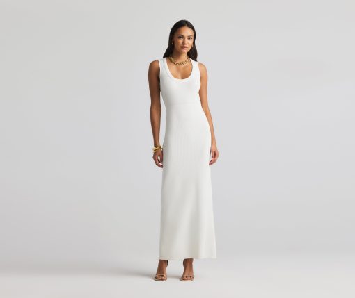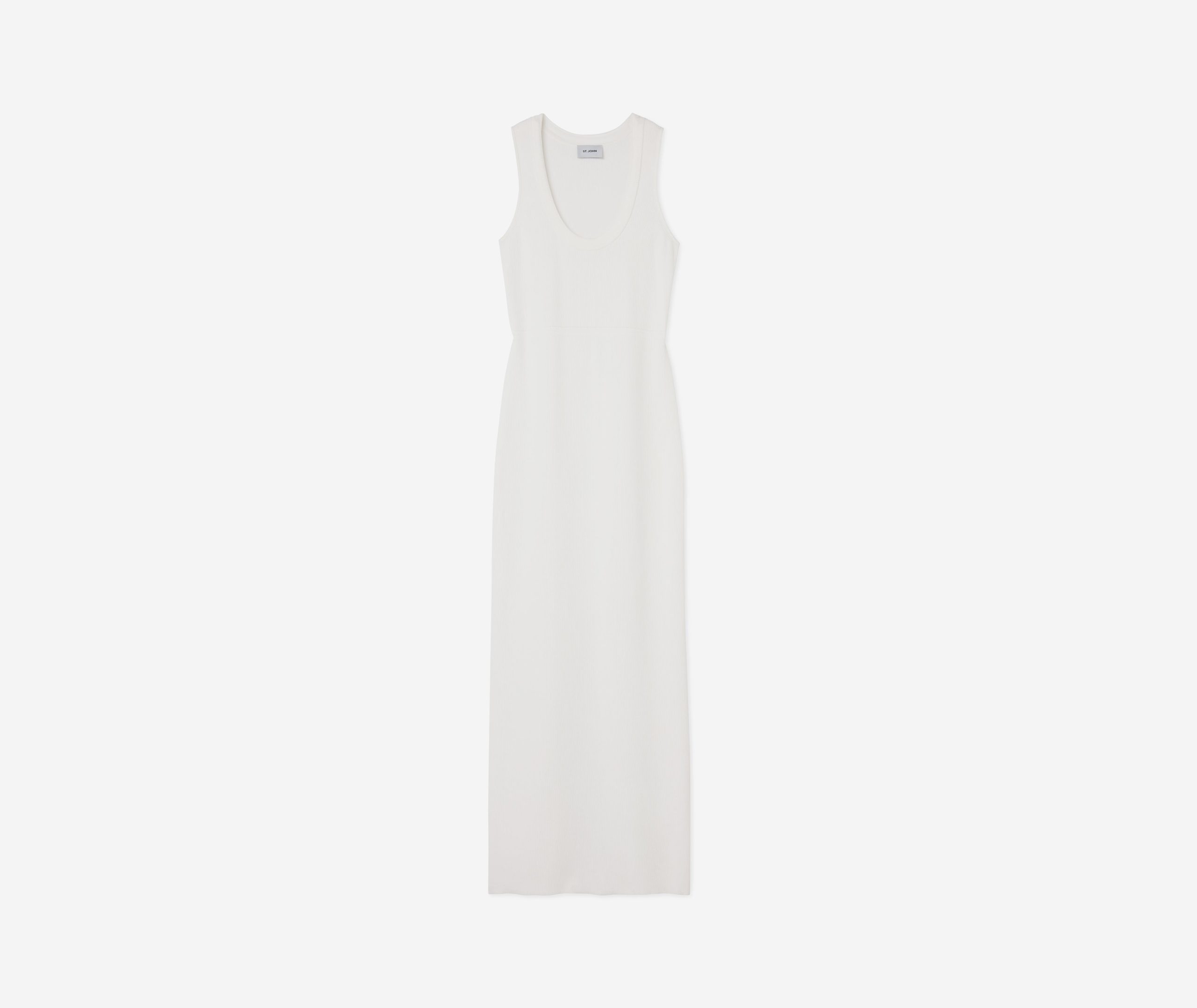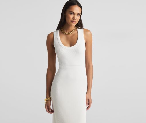 One of the Collection’s most versatile styles, this understated fine rib scoop neck sleeveless dress with a back slit easily dresses up or down.All Sales are Final. No Returns or Exchanges.