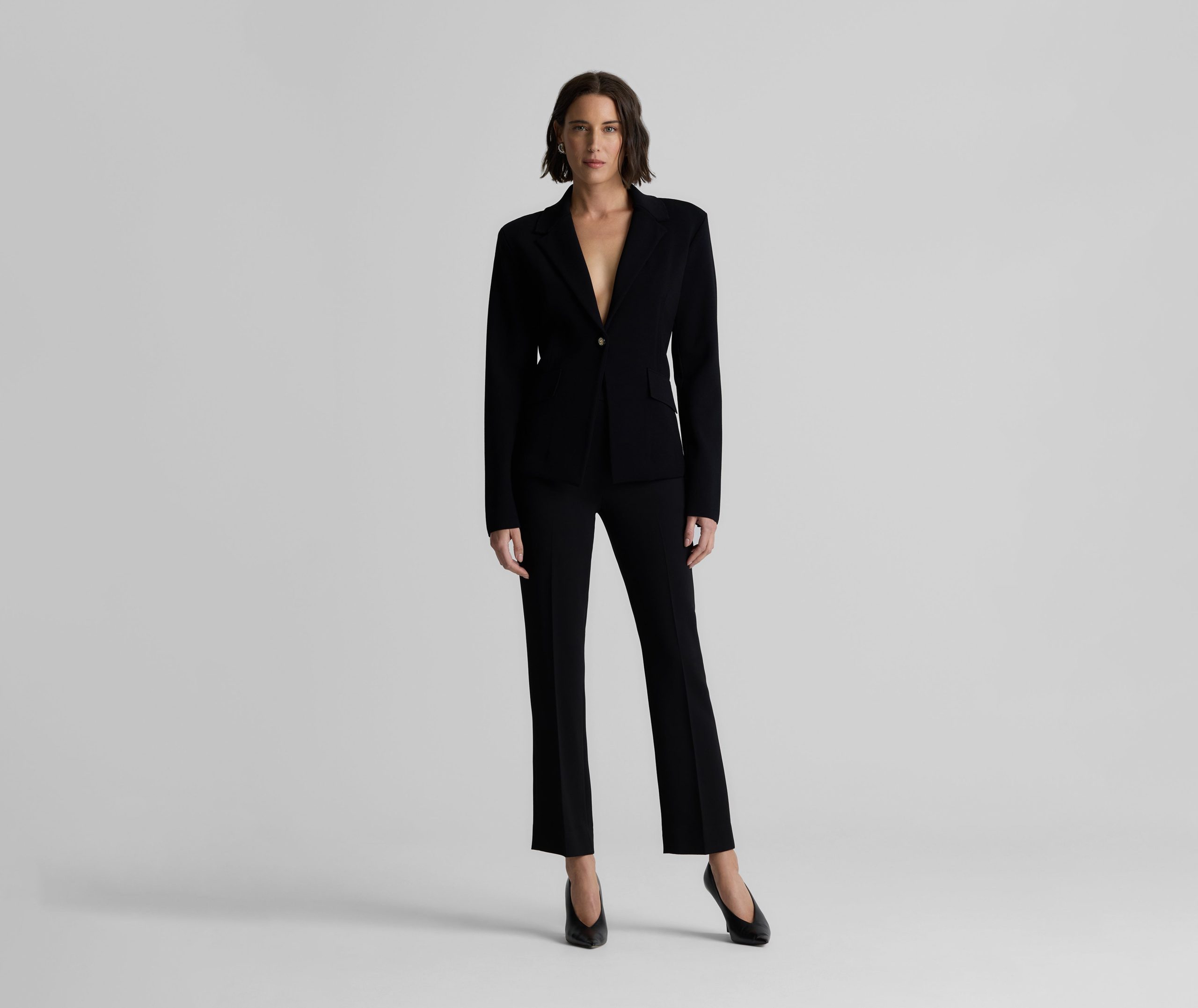 Cut from a luxurious Stretch Italian Viscose Blend, this expertly tailored, ankle-glazing pant moves effortlessly with you throughout the day—transitioning seamlessly from the office to after-hours cocktails without ever losing its polish.