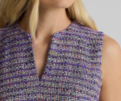 Our luxe Lenox Tweed gives the Larkin its signature texture and shimmer. Whether worn on its own or layered under its coordinating Arden Jacket, this sleeveless, v-neck sheath dress was designed to steal the spotlight at all your formal affairs.