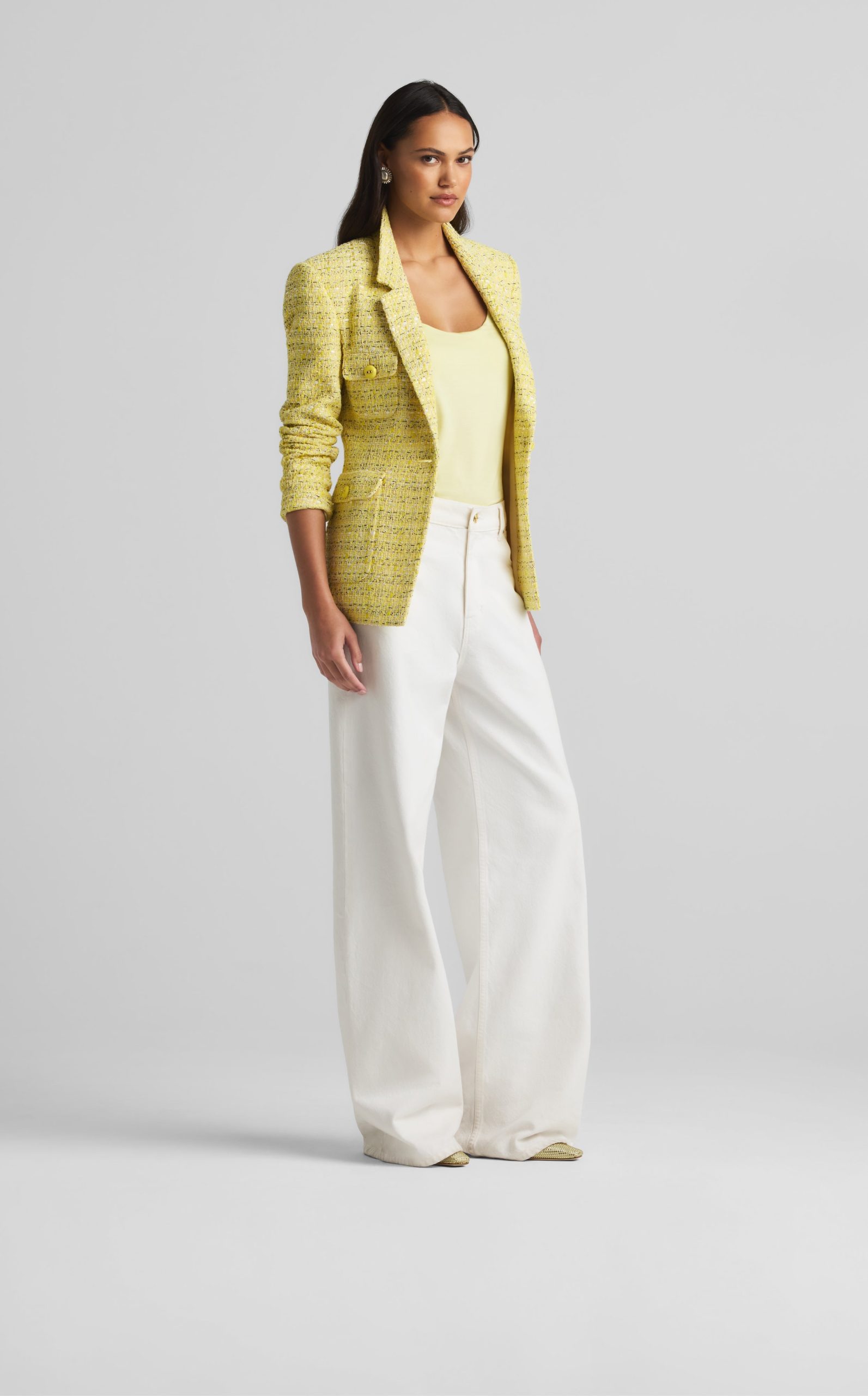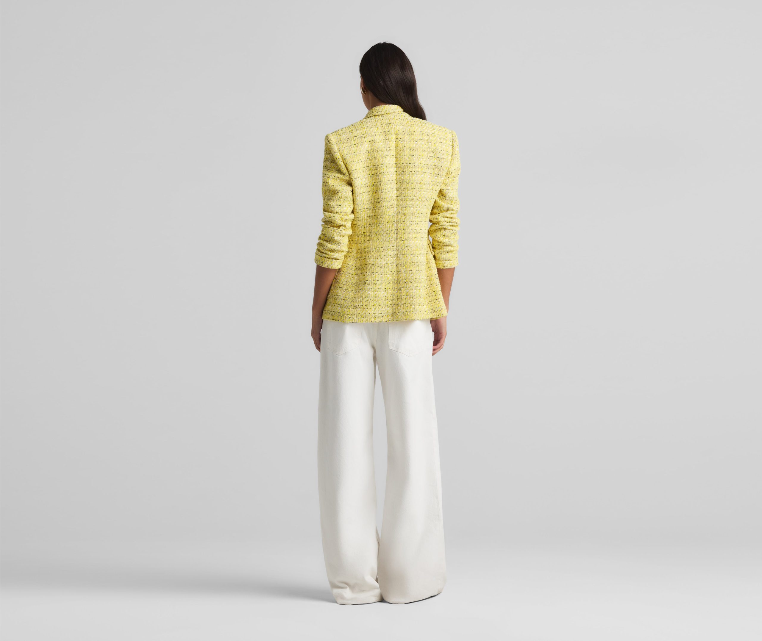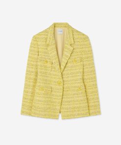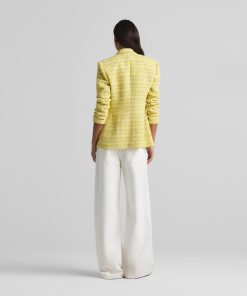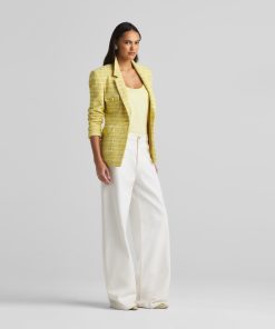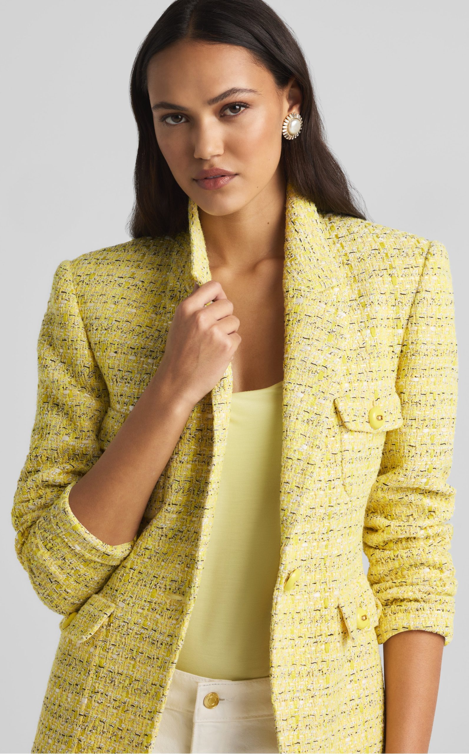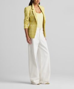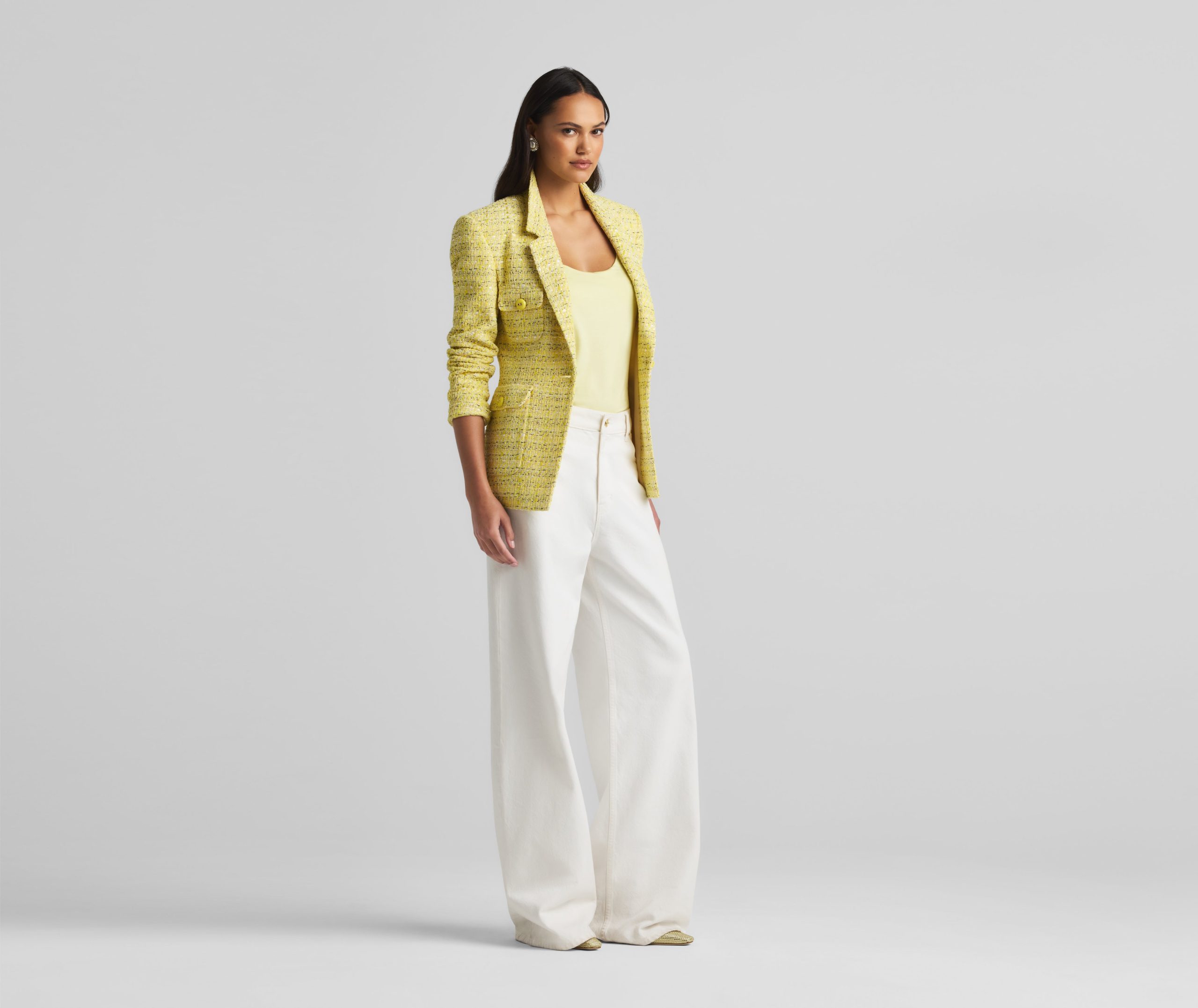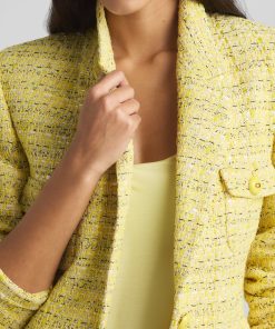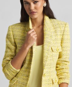 Multicolored threads blend in this lightweight lurex tweed jacket, infusing the knit with varying hues in a notch collar style with flap pockets.All Sales are Final. No Returns or Exchanges.
