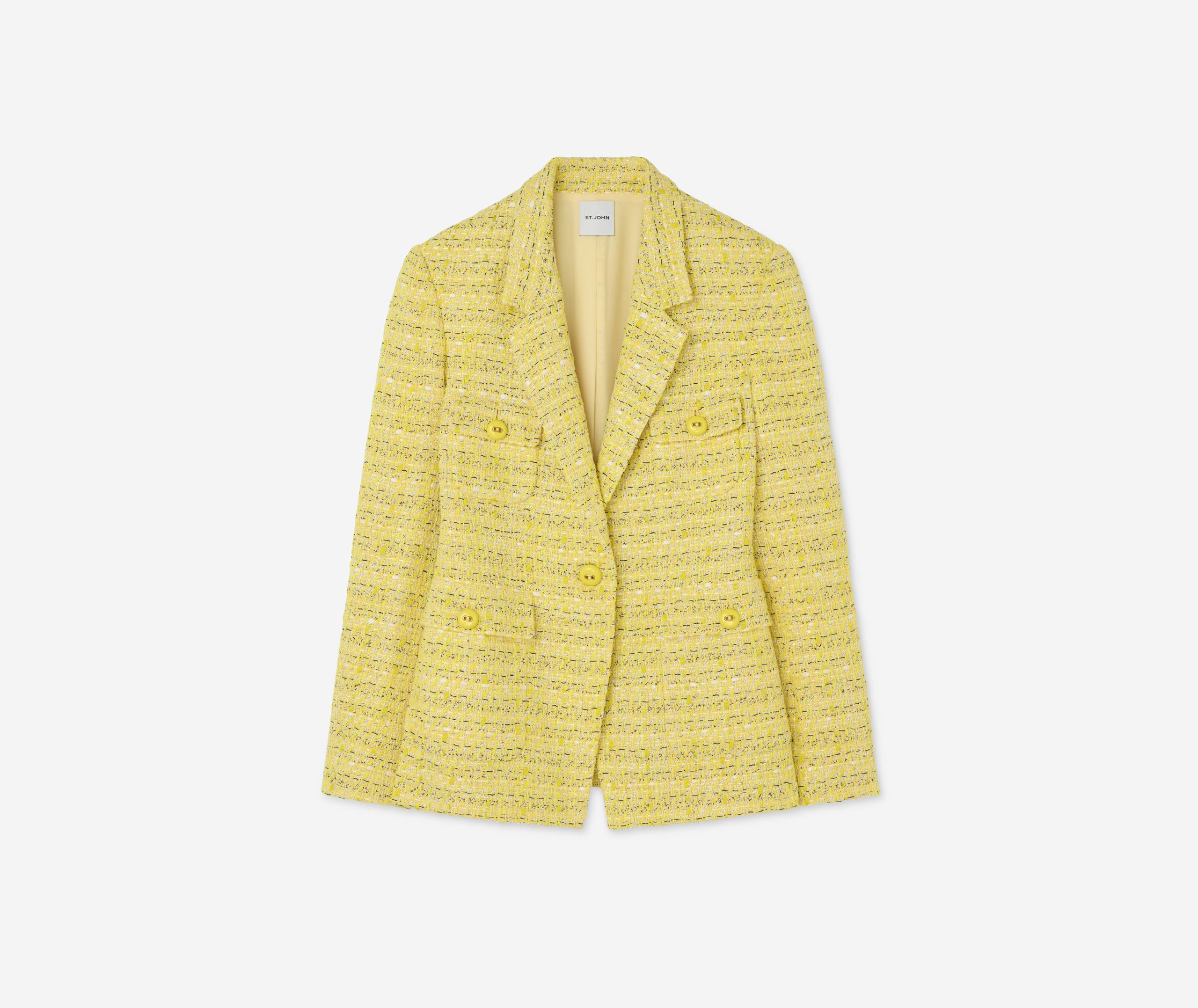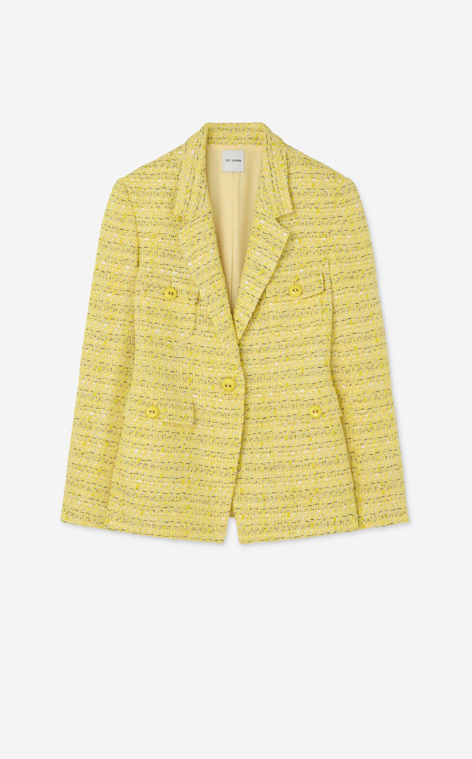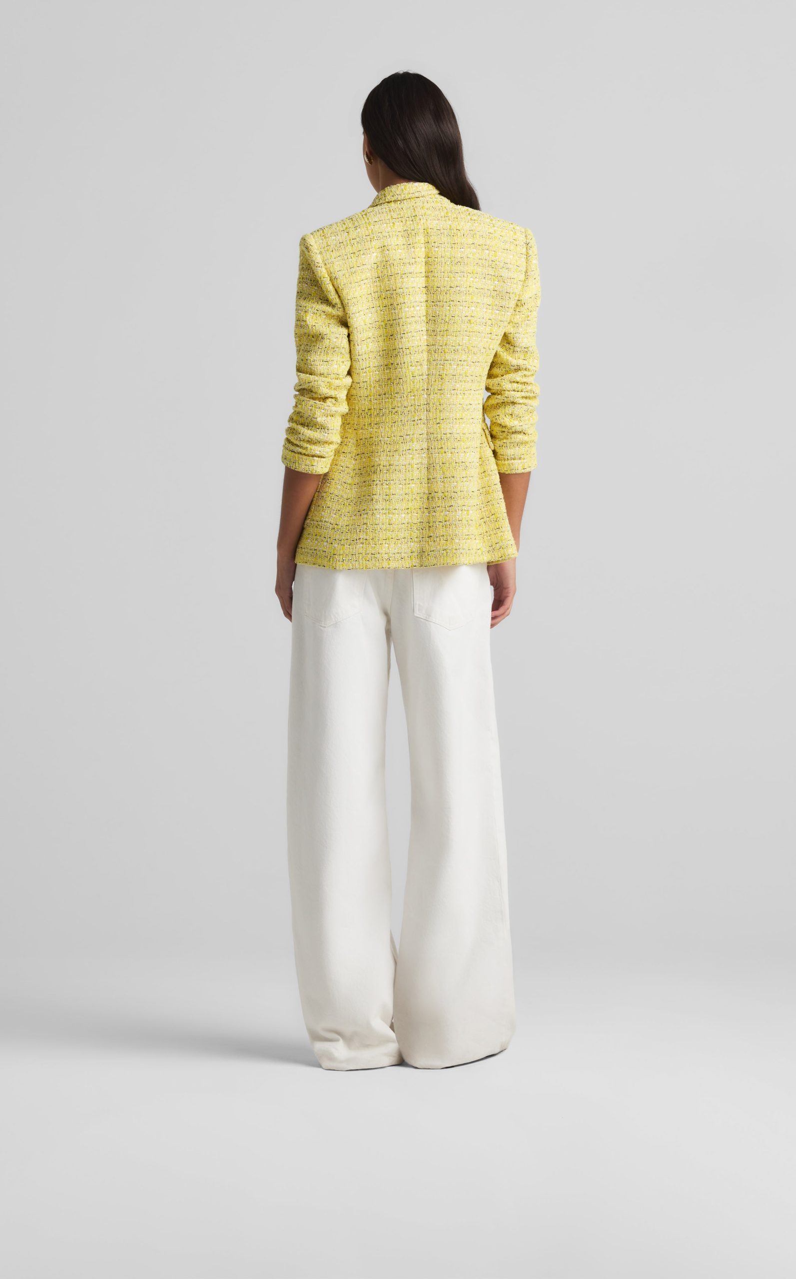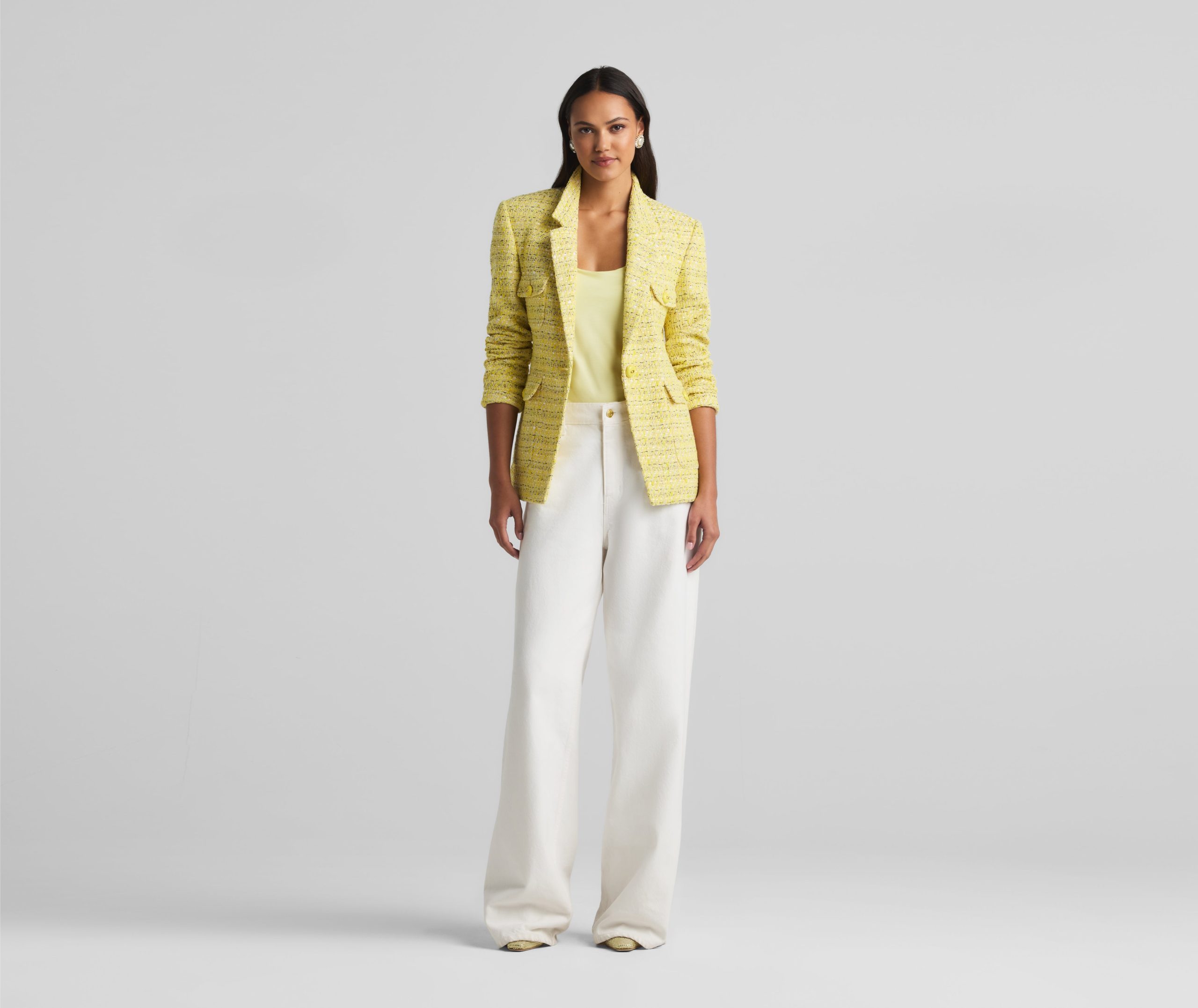 Multicolored threads blend in this lightweight lurex tweed jacket, infusing the knit with varying hues in a notch collar style with flap pockets.All Sales are Final. No Returns or Exchanges.
