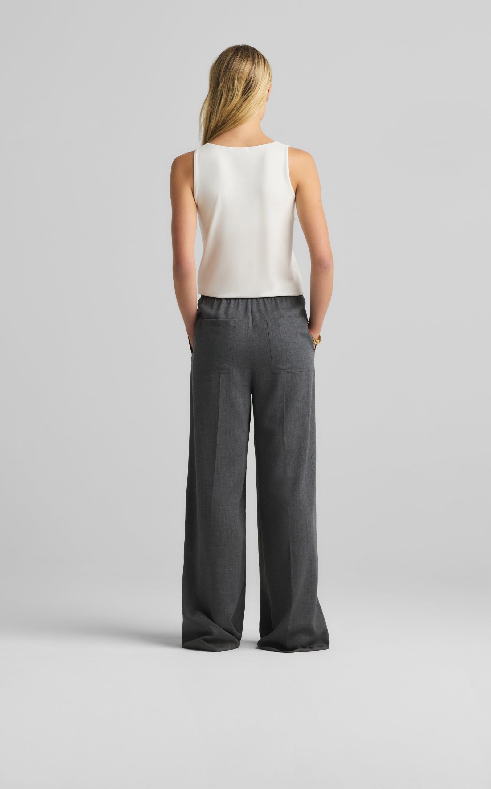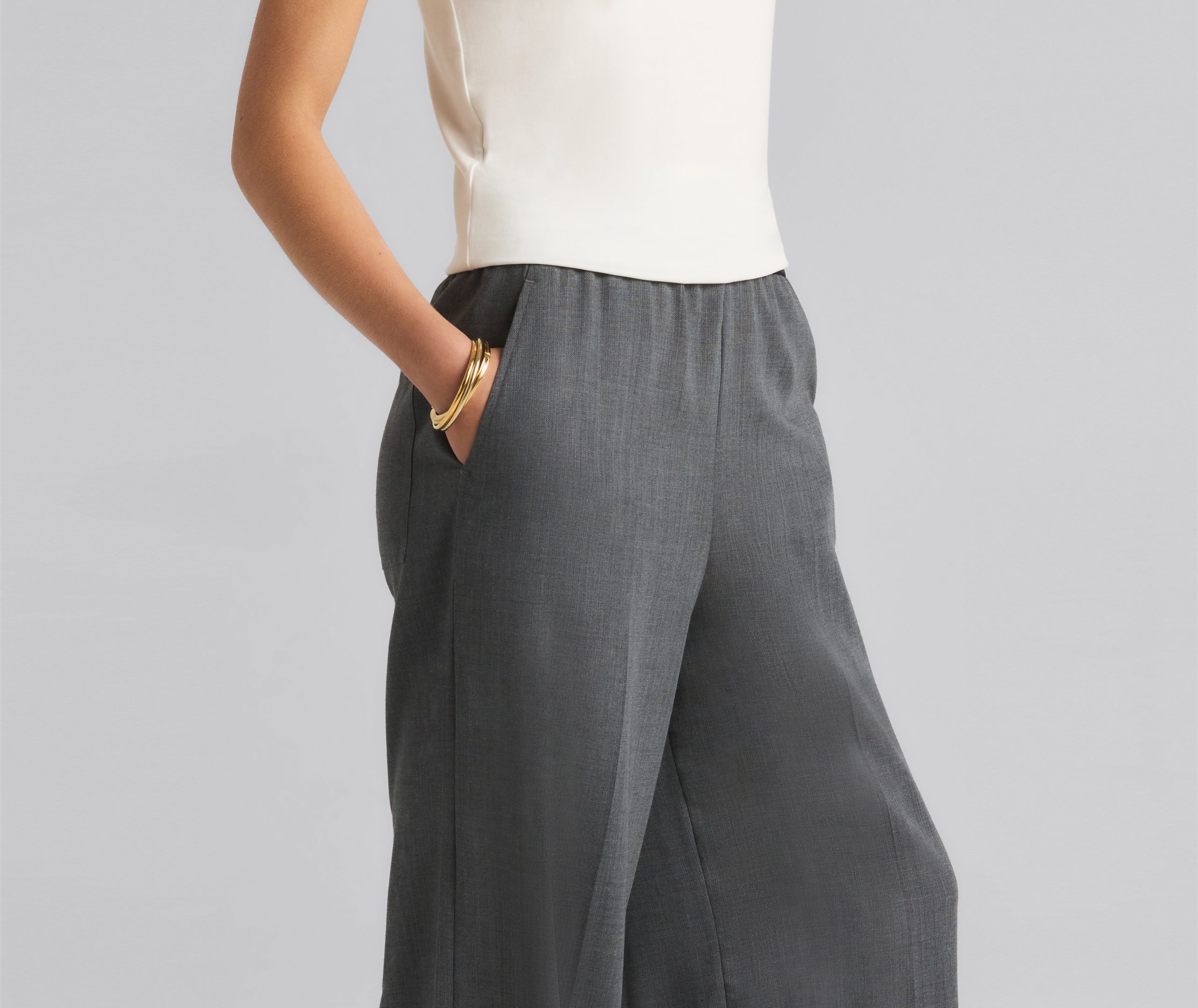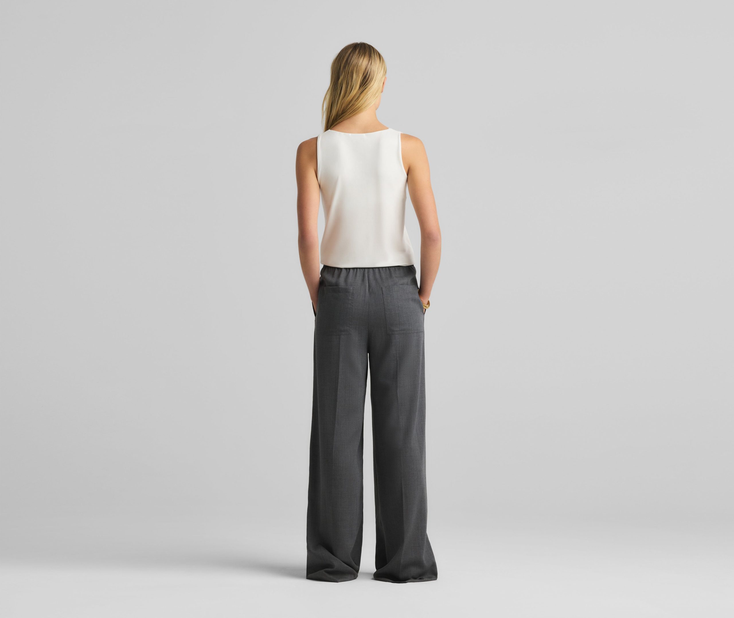 A typically casual wide leg, pull-on pant is crafted in luxe lightweight wool voile, dressing up this style for the office and day or night outings.All Sales are Final. No Returns or Exchanges.