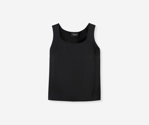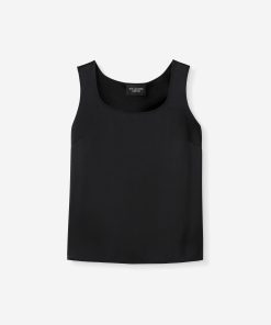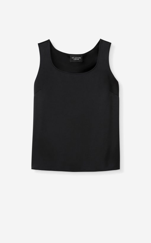 A timeless St. John staple rendered in a smooth figure-contouring liquid satin, this elegant shell looks polished paired with liquid satin pants.