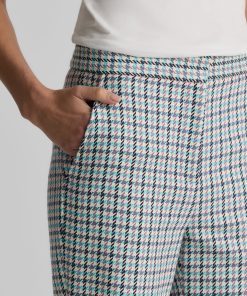 Heritage houndstooth gets a modern twist with the Logan Pant in a vibrant Tropical Blue/Ivory Multi palette. Made from a comfortable stretch fabric for effortless, all-day wear and designed with a clean waistband, slash pockets, and a slightly flared leg to create a crisp look, these flattering trousers can be mixed and matched with solid separates to let the pattern pop, or worn with our Parker Jacket or Sloane top for the ultimate coordination.