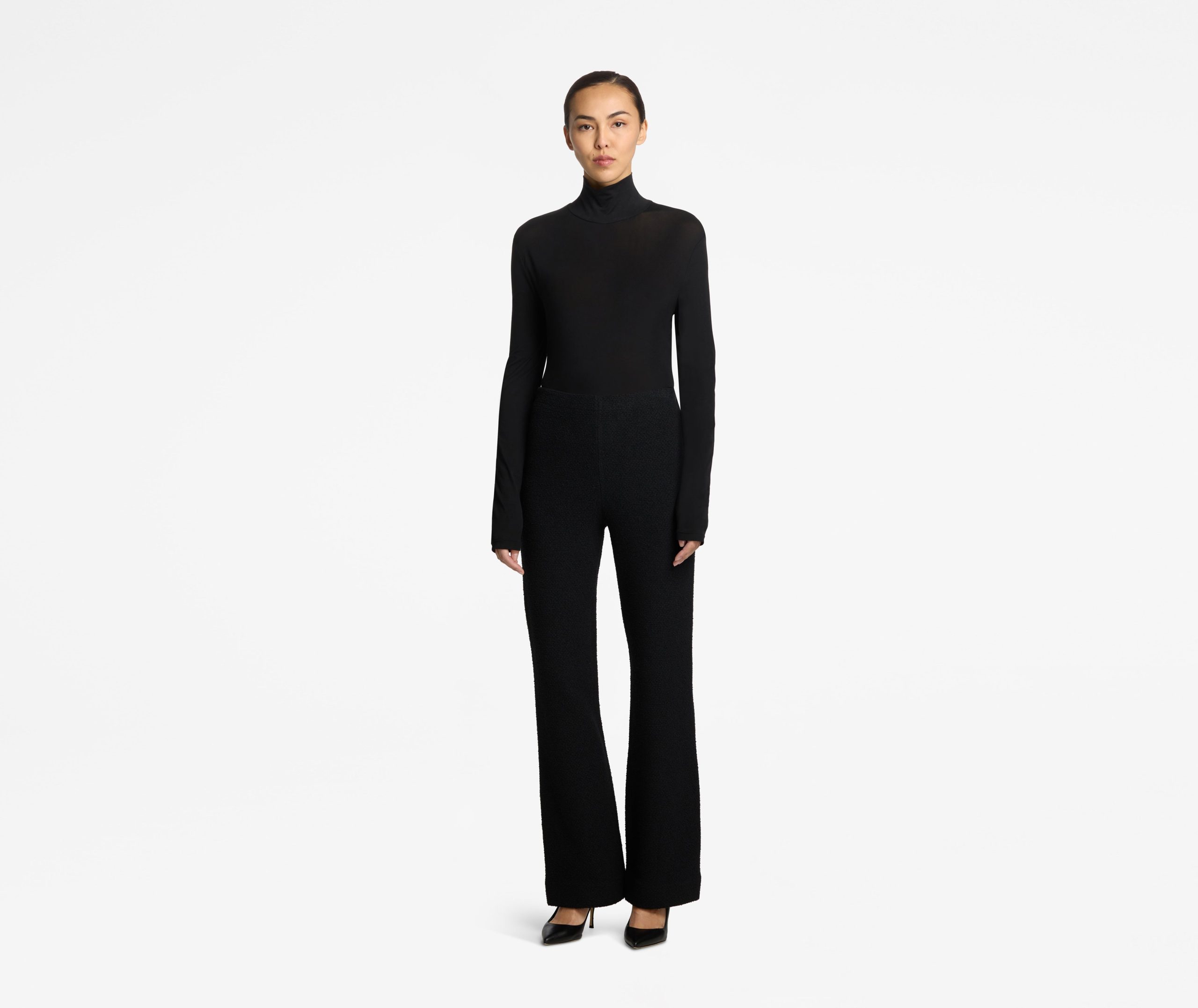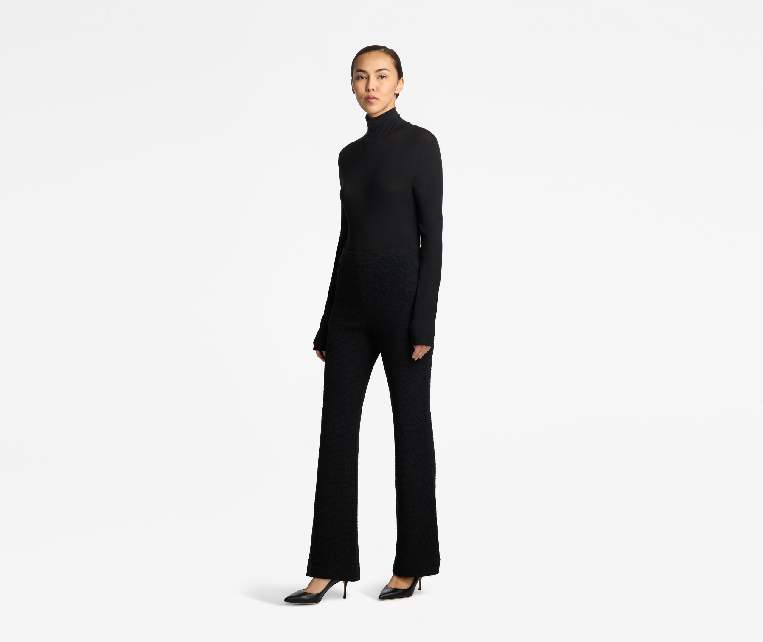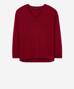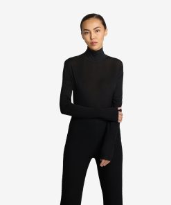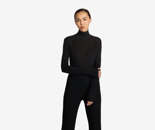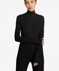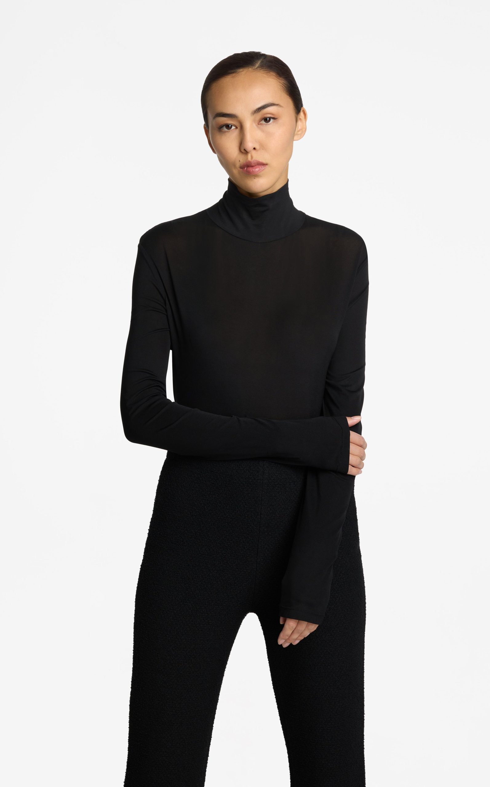 A lightweight option for easy layering, this long sleeve shell is offered in fine jersey and features a flattering T-neckline.