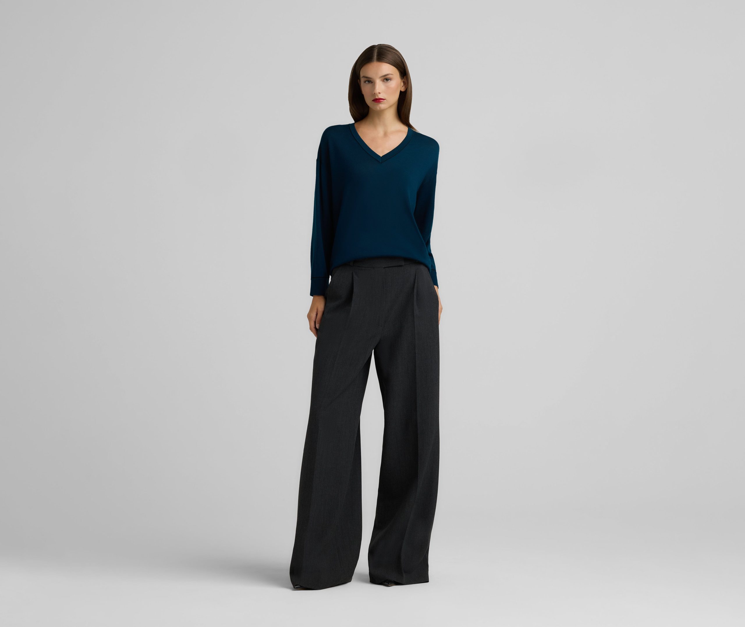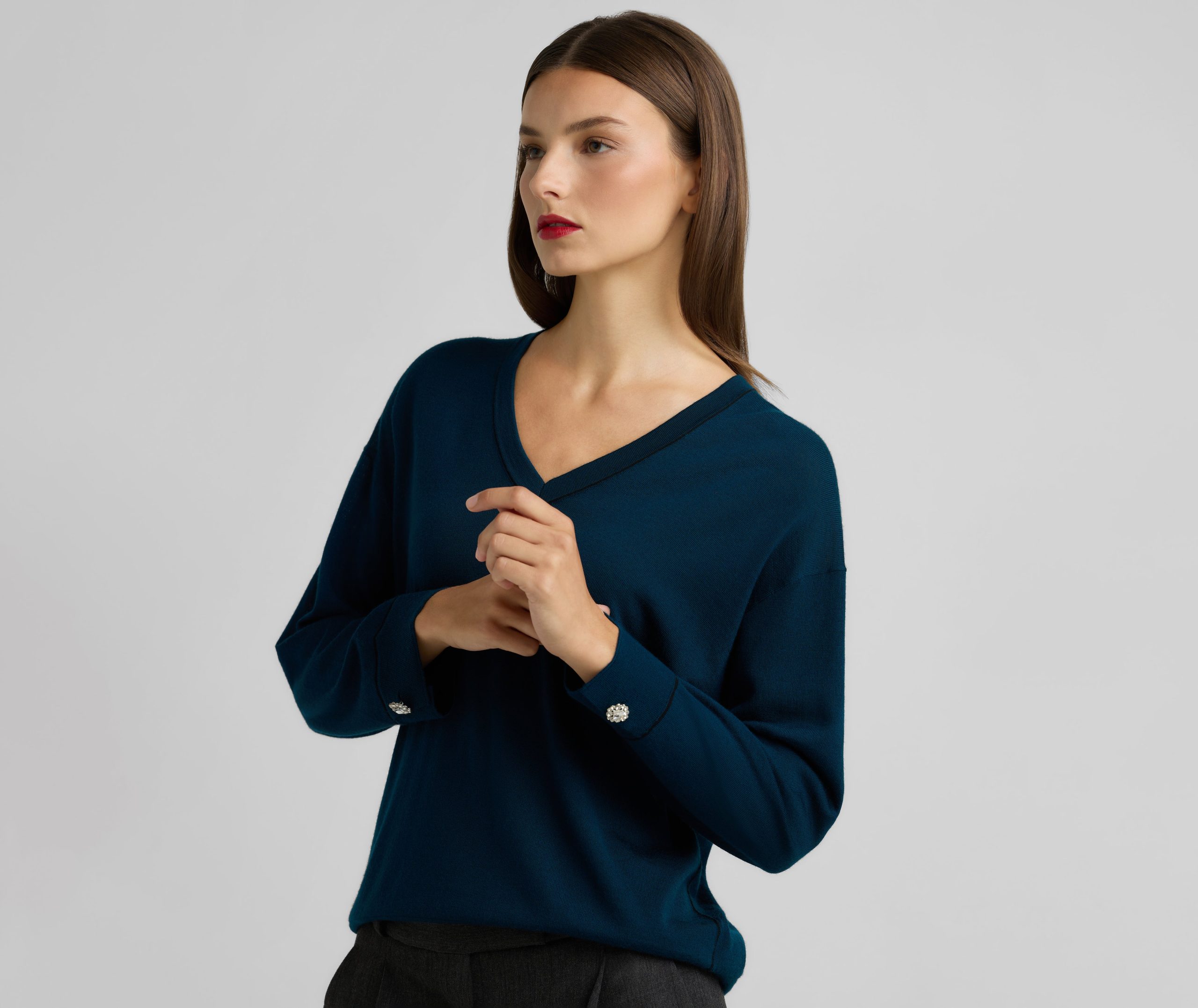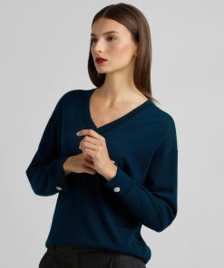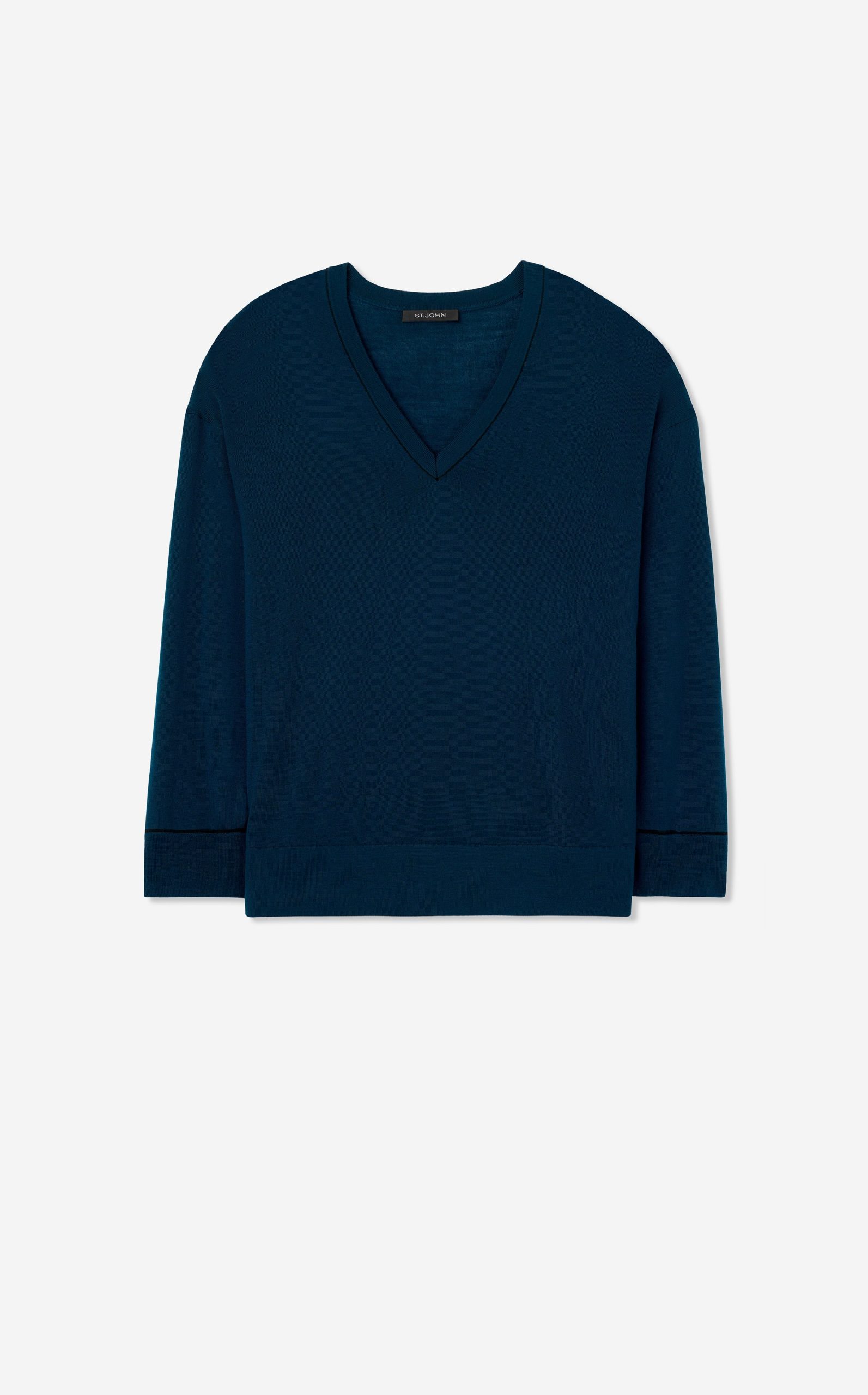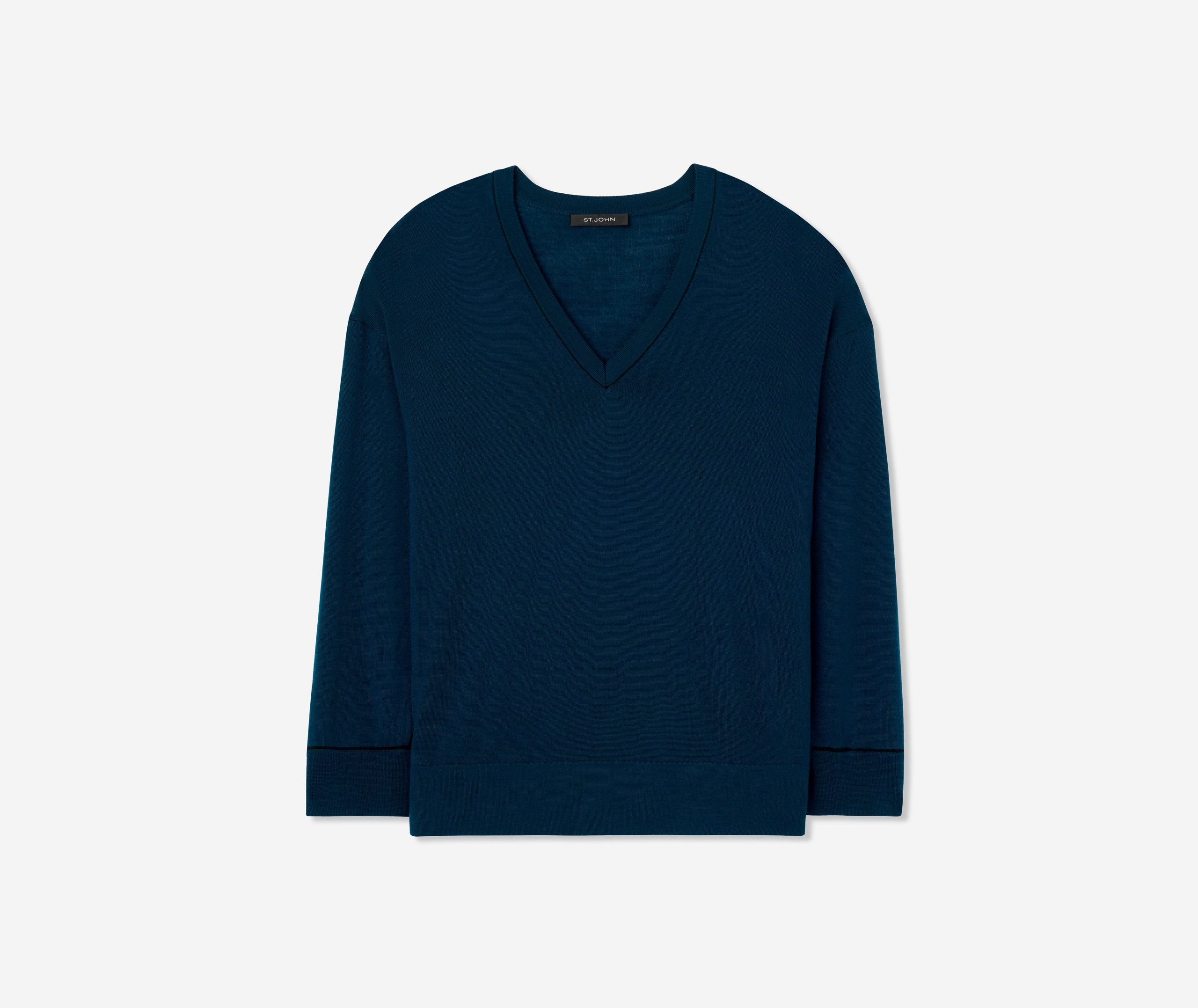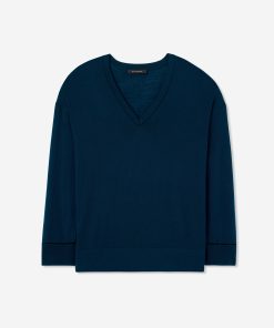 An effortlessly cool relaxed fit sets the tone for this staple V-neck sweater with accented trims, knit in Merino wool for a soft and warm fit.All Sales are Final. No Returns or Exchanges.