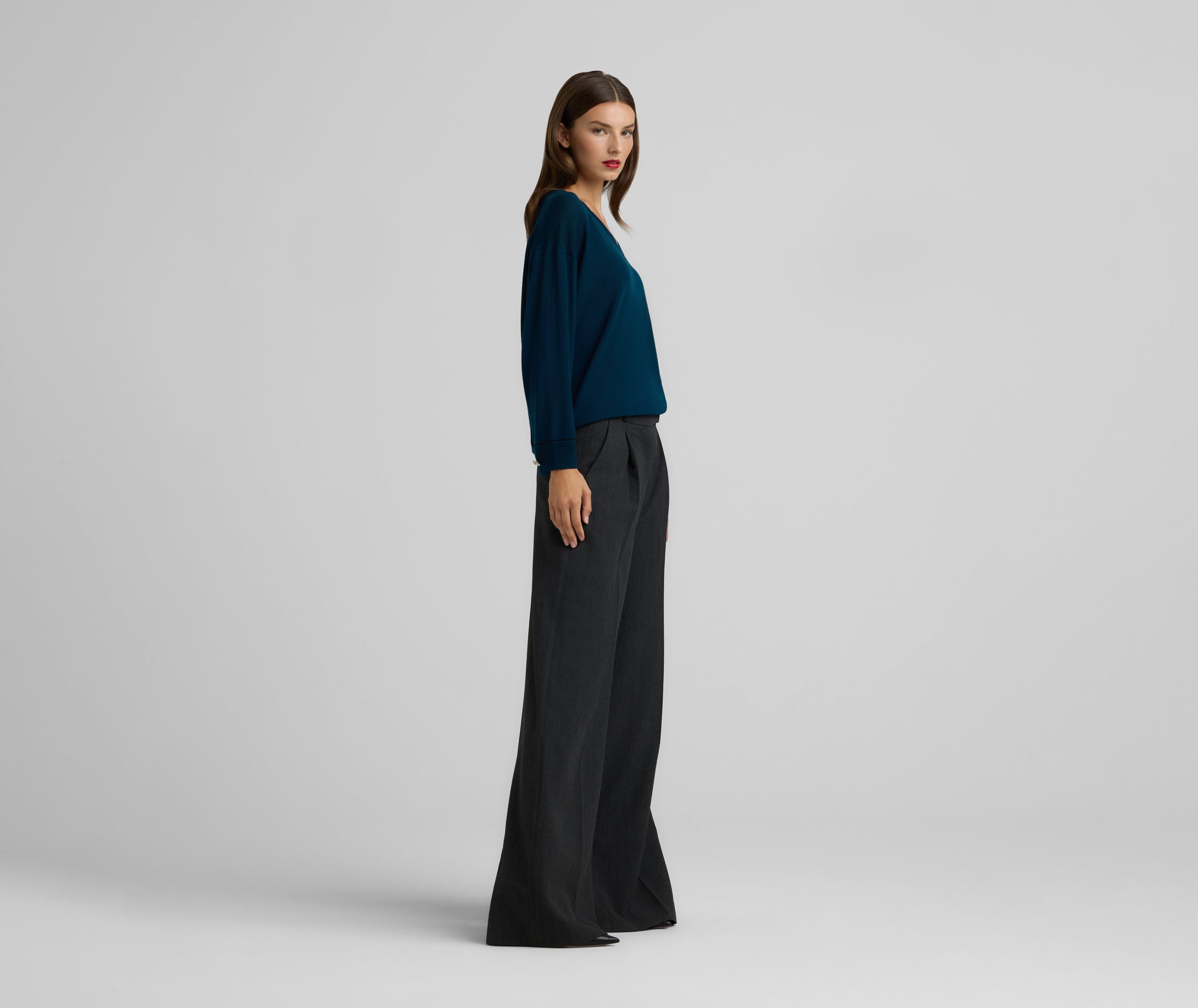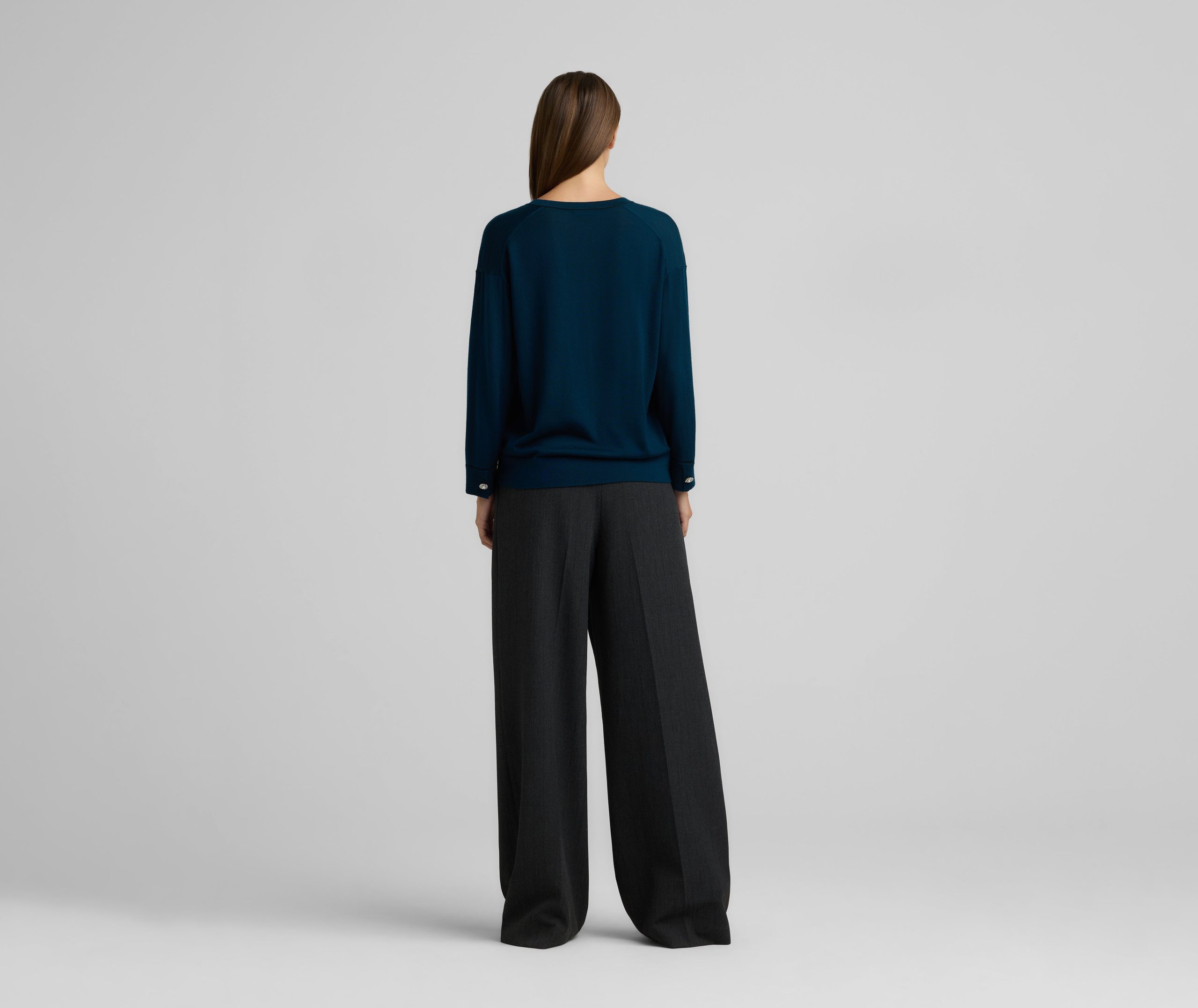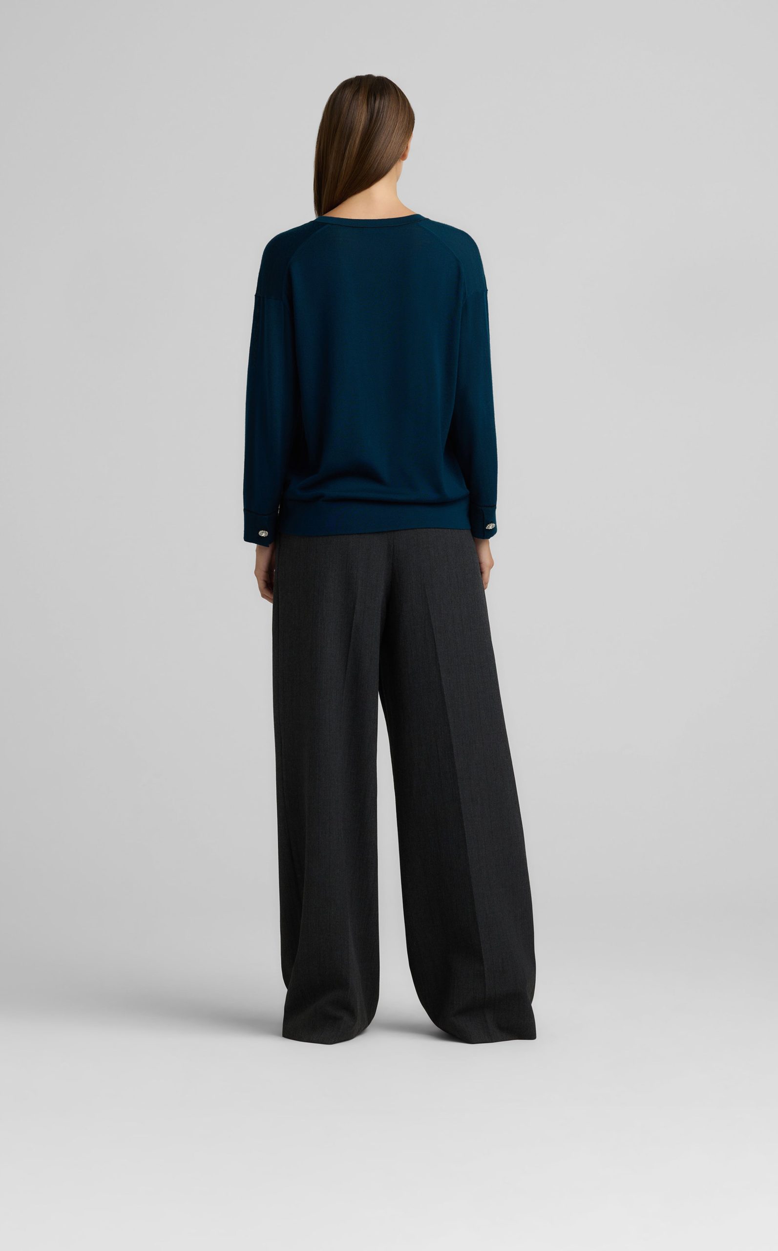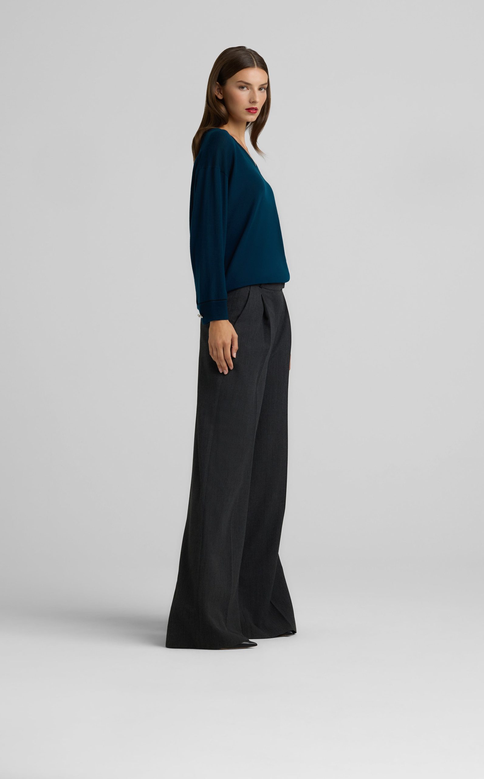 An effortlessly cool relaxed fit sets the tone for this staple V-neck sweater with accented trims, knit in Merino wool for a soft and warm fit.All Sales are Final. No Returns or Exchanges.