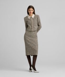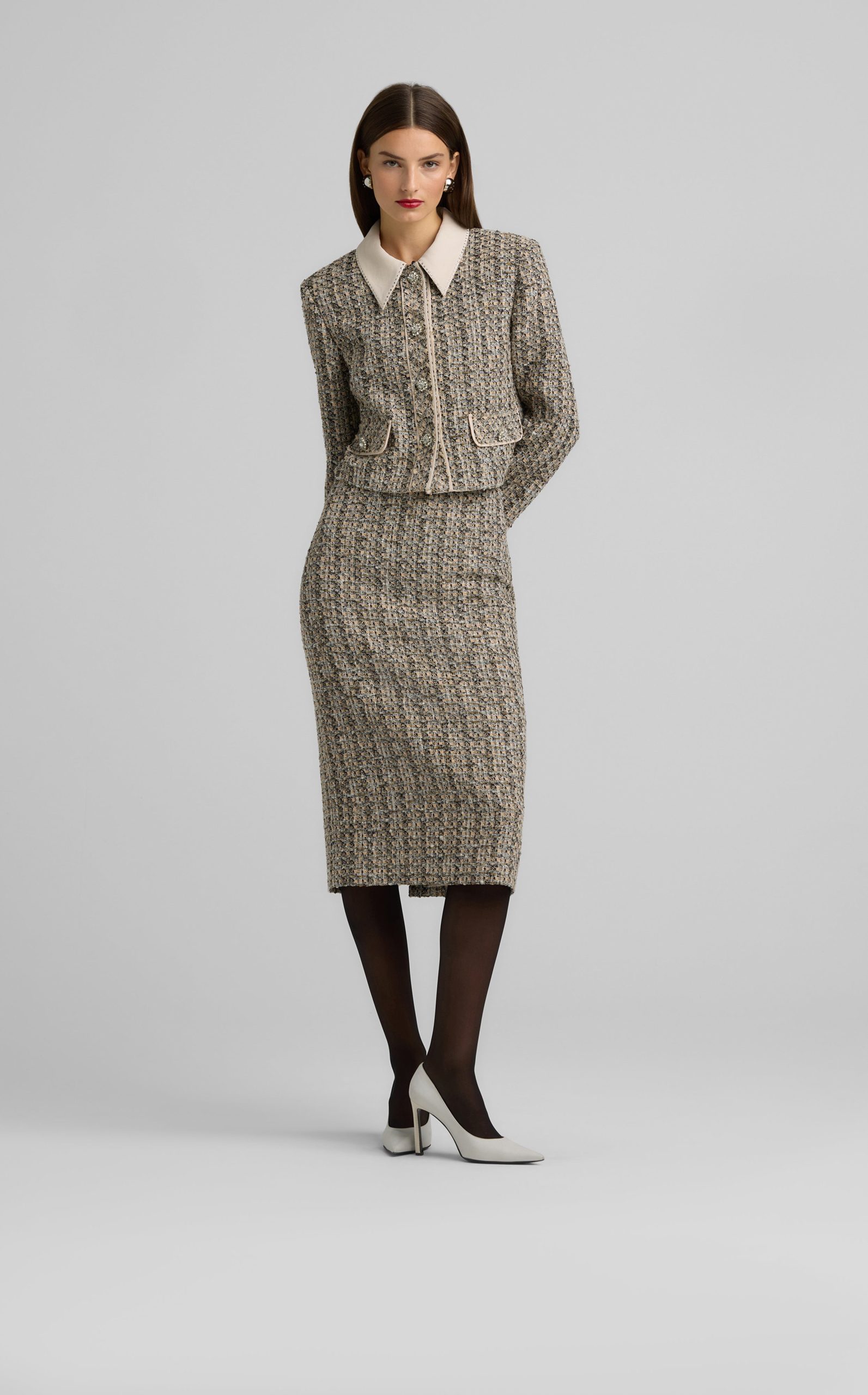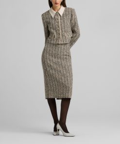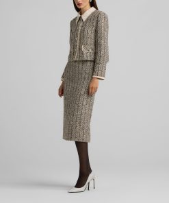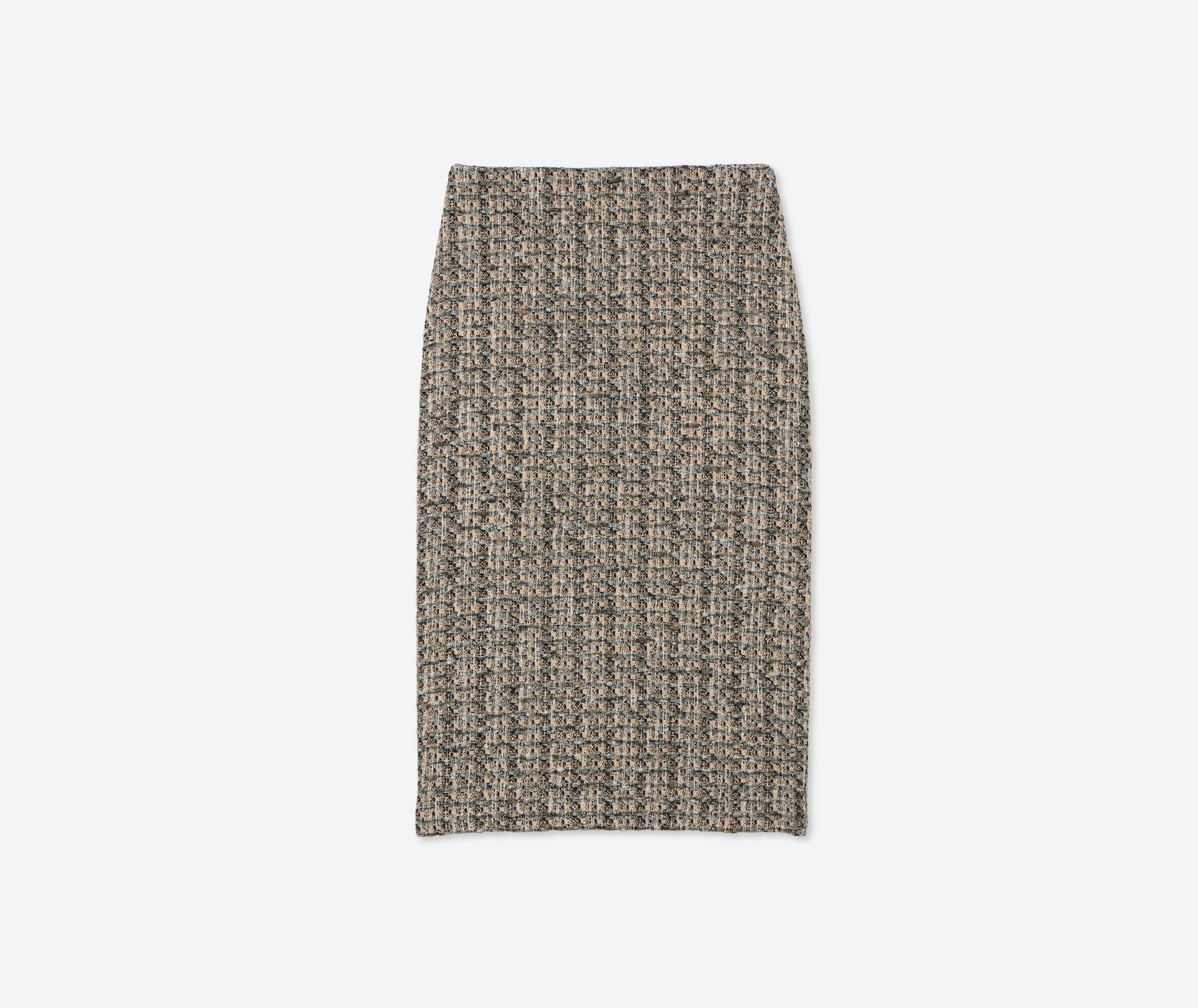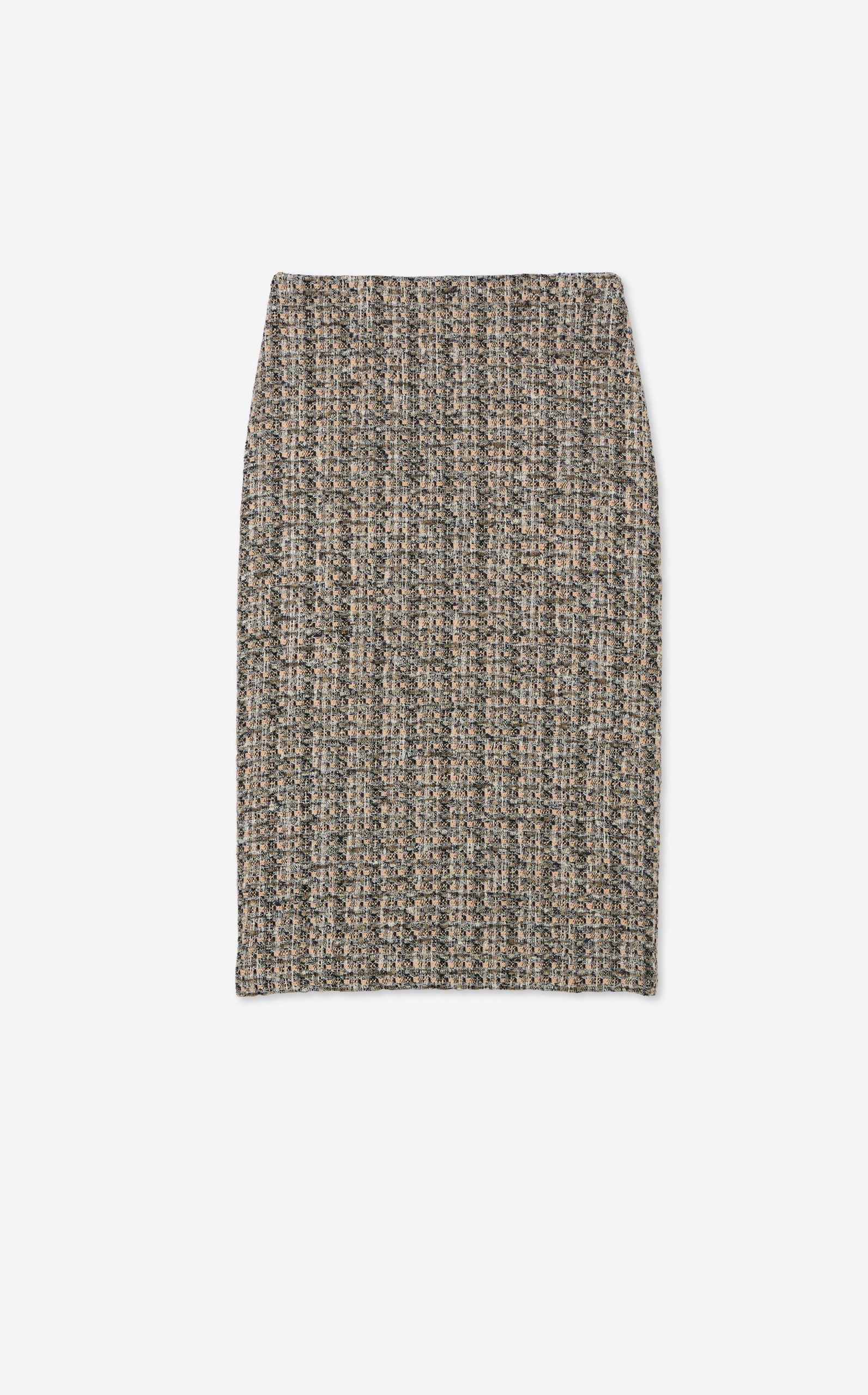 Metallic tweed collage knit brings texture to a pencil skirt, while a back slit offers ease of movement in this slim-cut style.All Sales are Final. No Returns or Exchanges.