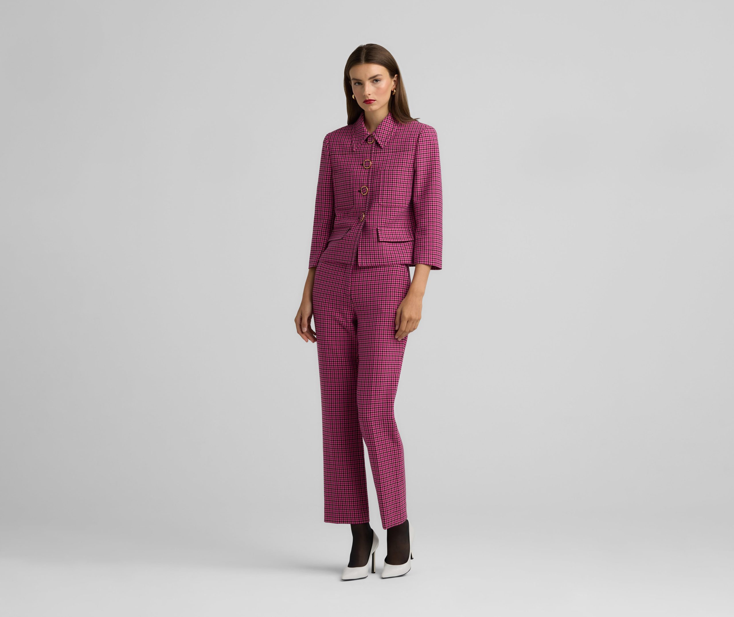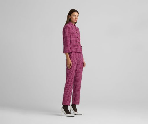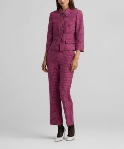 Bright hues liven up a mini plaid print in this stretch pant with a flat front and ankle length for a playful pop of color in any look.All Sales are Final. No Returns or Exchanges.