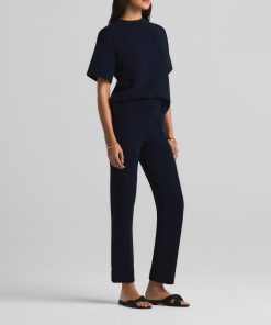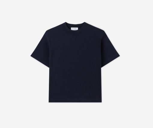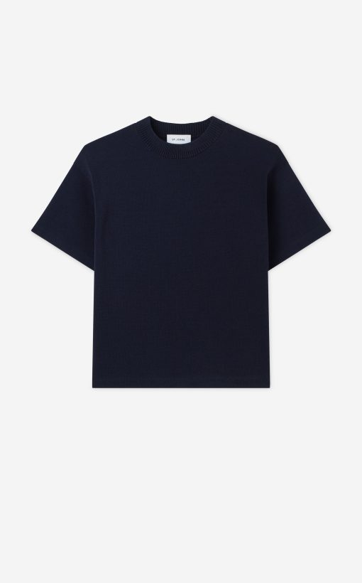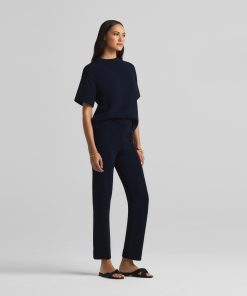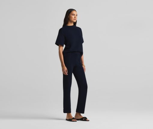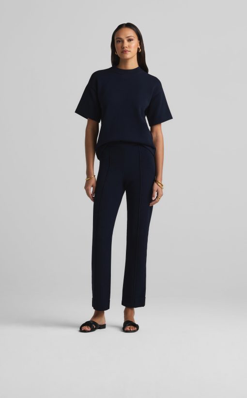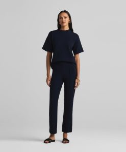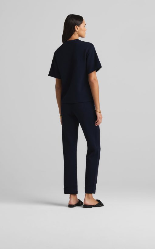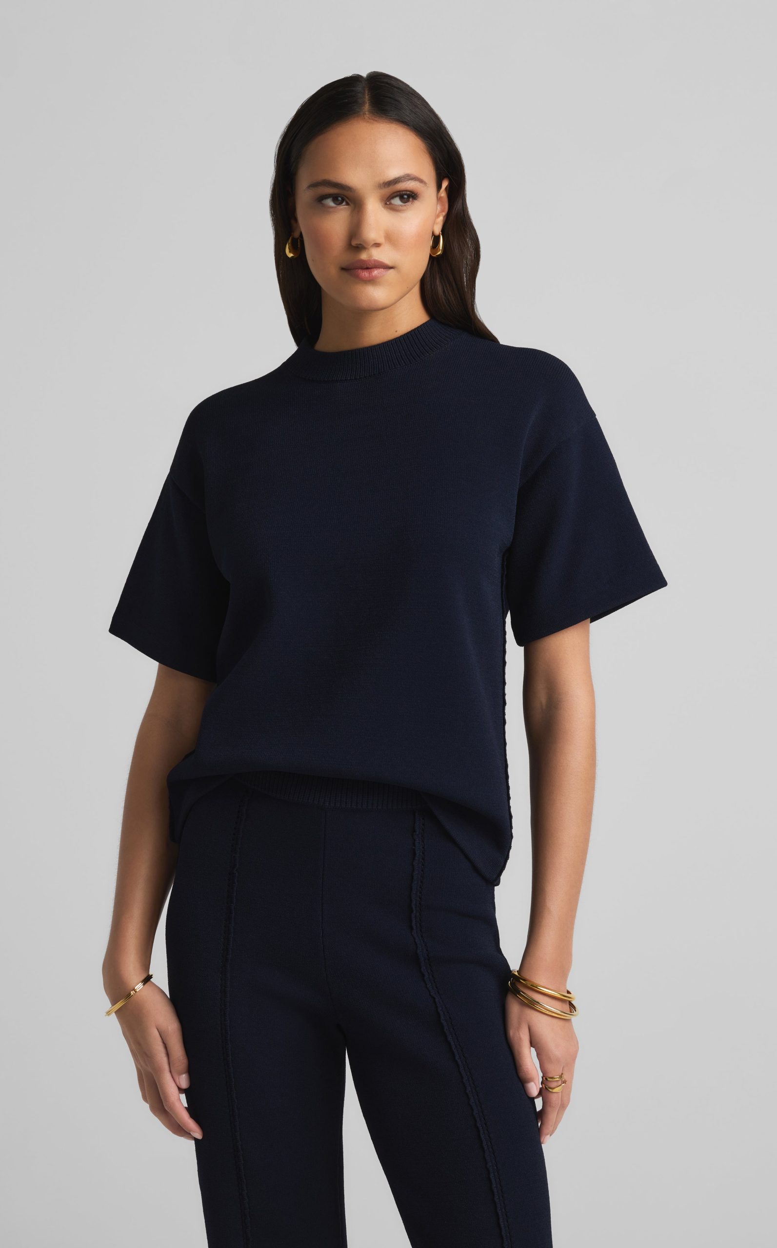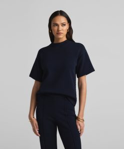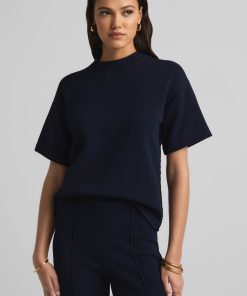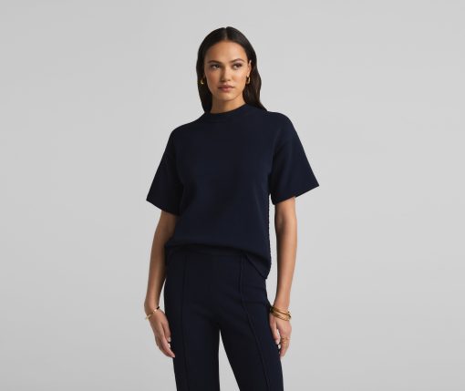Crafted in a knit blend with a bit of stretch, this crewneck short sleeve mixed gauge rib knit sweater elevates the beloved classic tee.All Sales are Final. No Returns or Exchanges.
