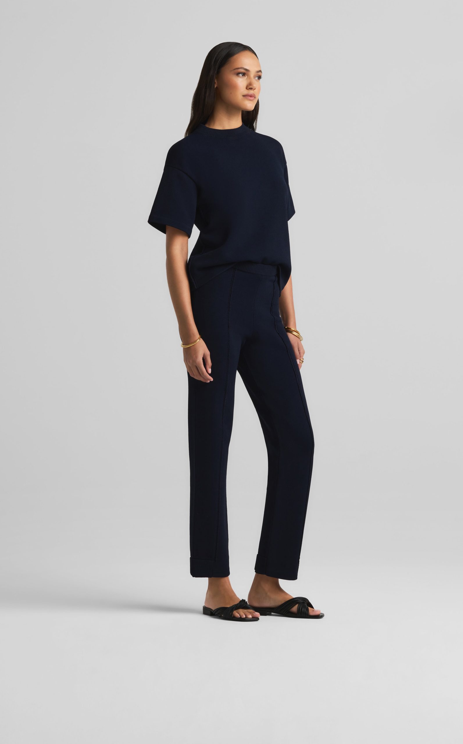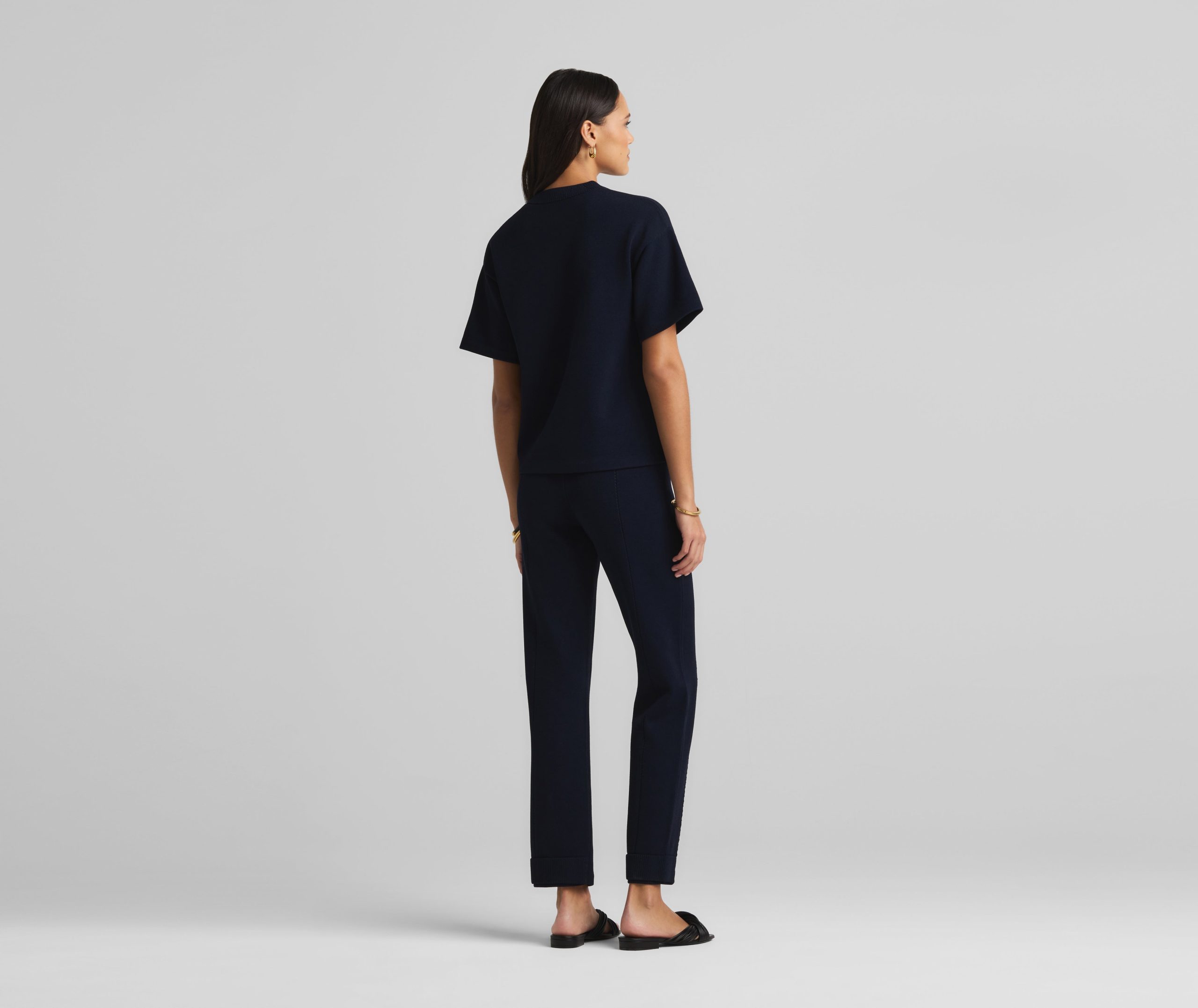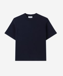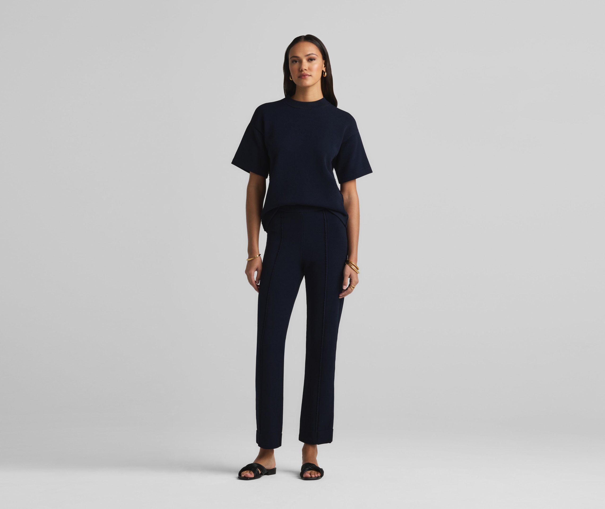Crafted in a knit blend with a bit of stretch, this crewneck short sleeve mixed gauge rib knit sweater elevates the beloved classic tee.All Sales are Final. No Returns or Exchanges.