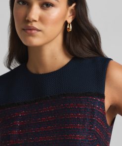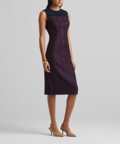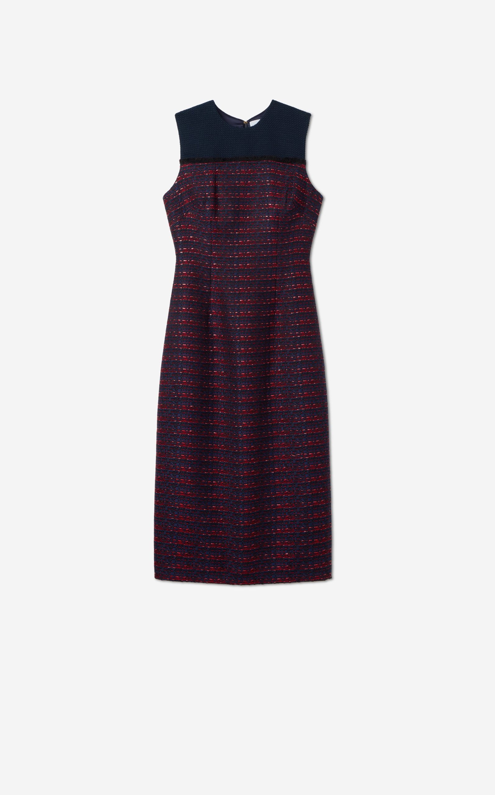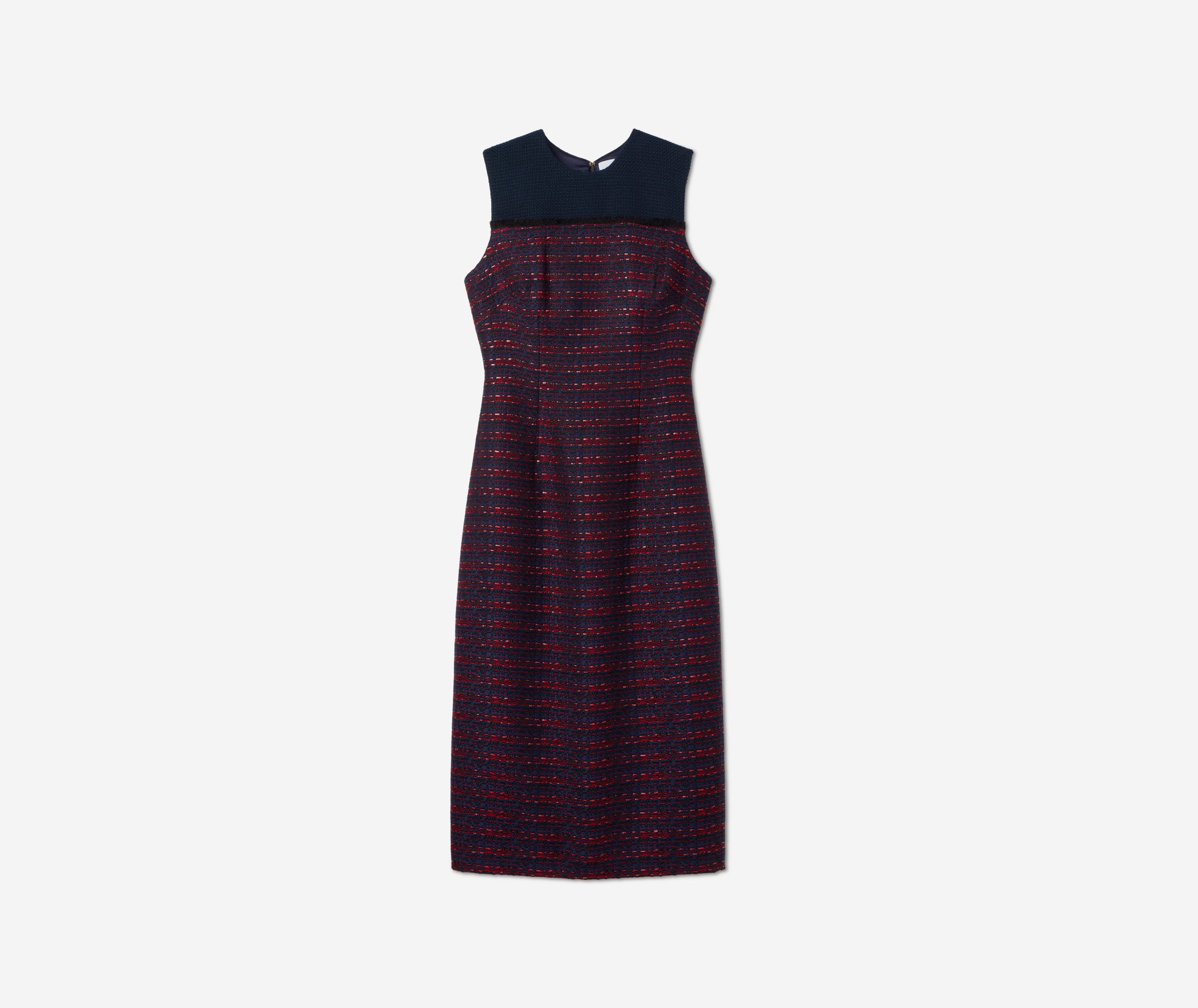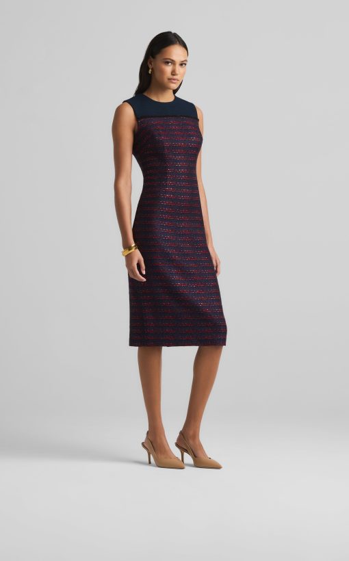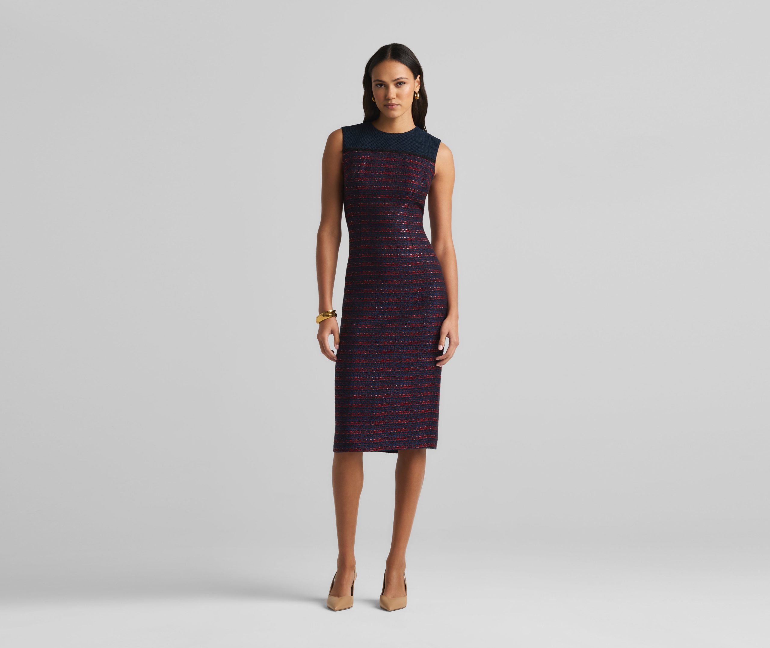 A textured tweed is cut for a close fit, while a solid knit panel tops the sleeveless dress. A look as perfect for the office as it is out.All Sales are Final. No Returns or Exchanges.