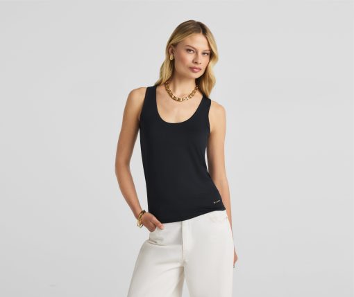 Soft and subtle, this sleeveless staple is crafted in slightly stretchy polished jersey, the perfect base layer or standalone tank.
