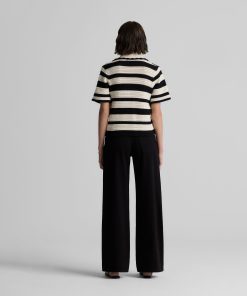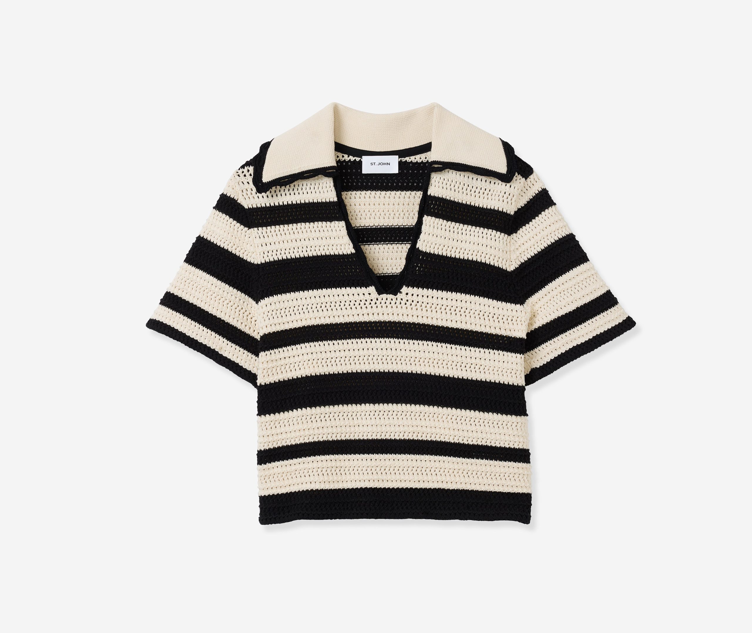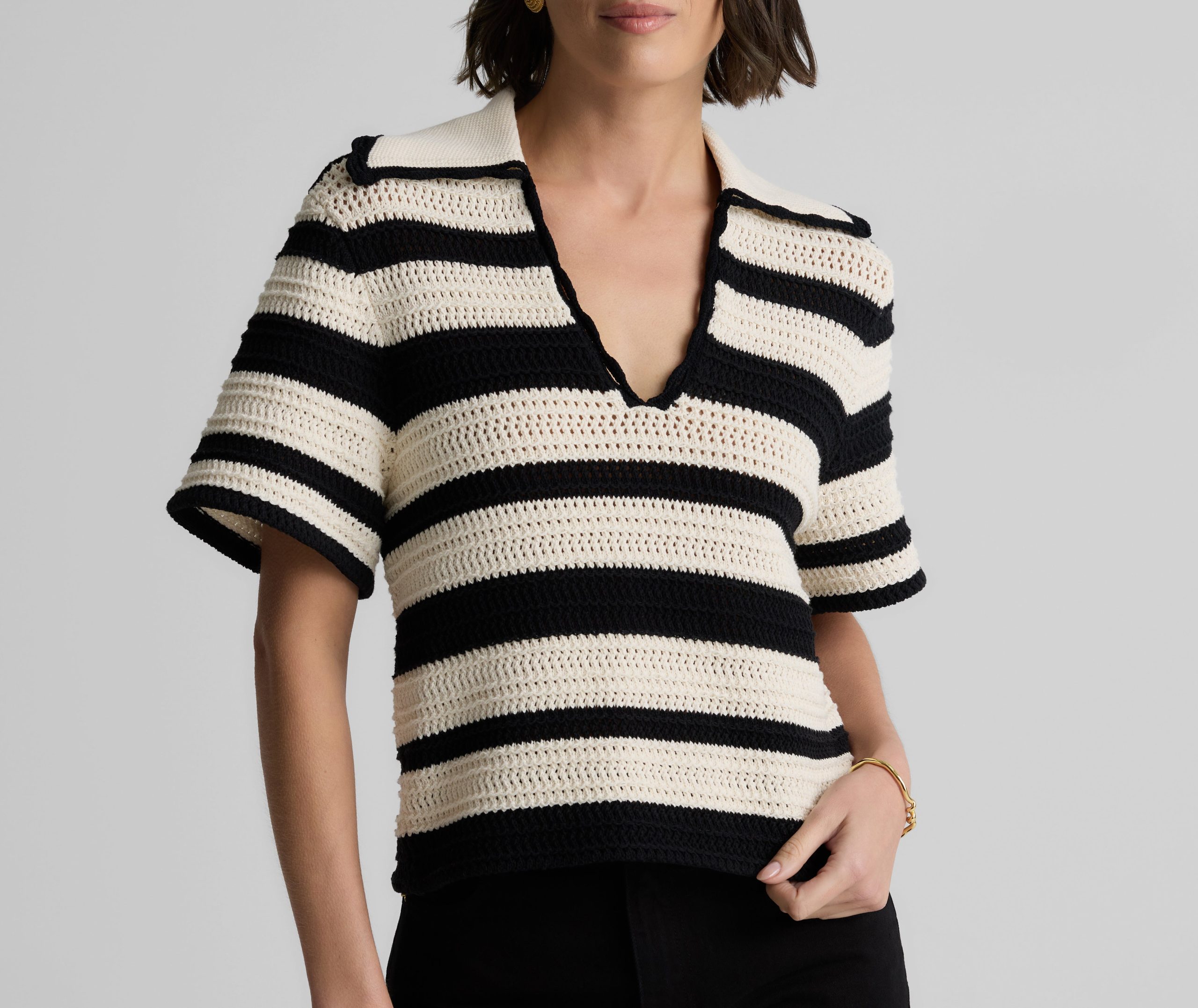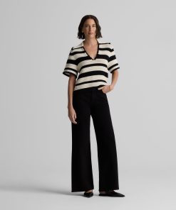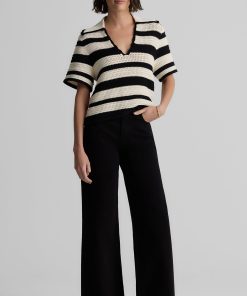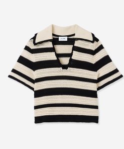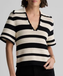 Featuring a seamless pairing of both retro and modern design details, the Reagan nods to the past while feeling fresher than ever for present day wear. With its breezy Striped Pointelle Knit, relaxed t-shirt sleeves, and wing collar, this sweater is a refined take on the classic polo tee, offering your warm weather wardrobe a touch of sporty chic charm that can be worn so many ways.