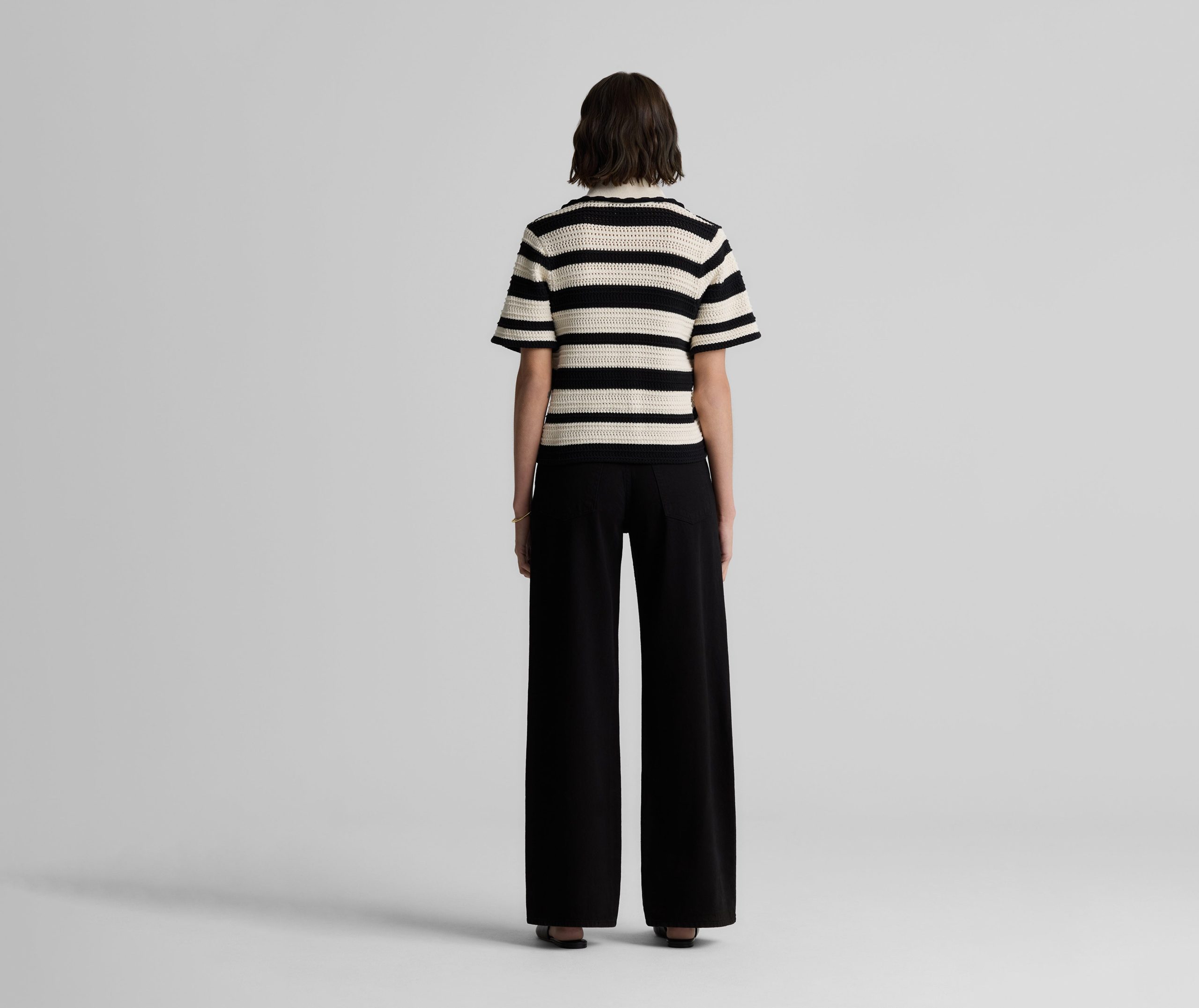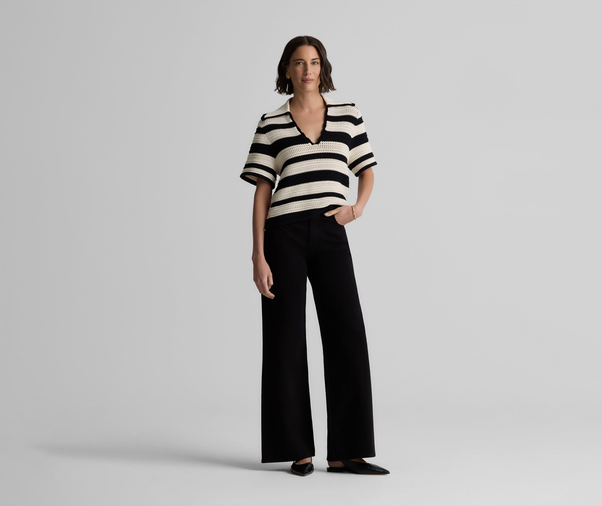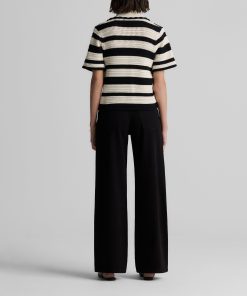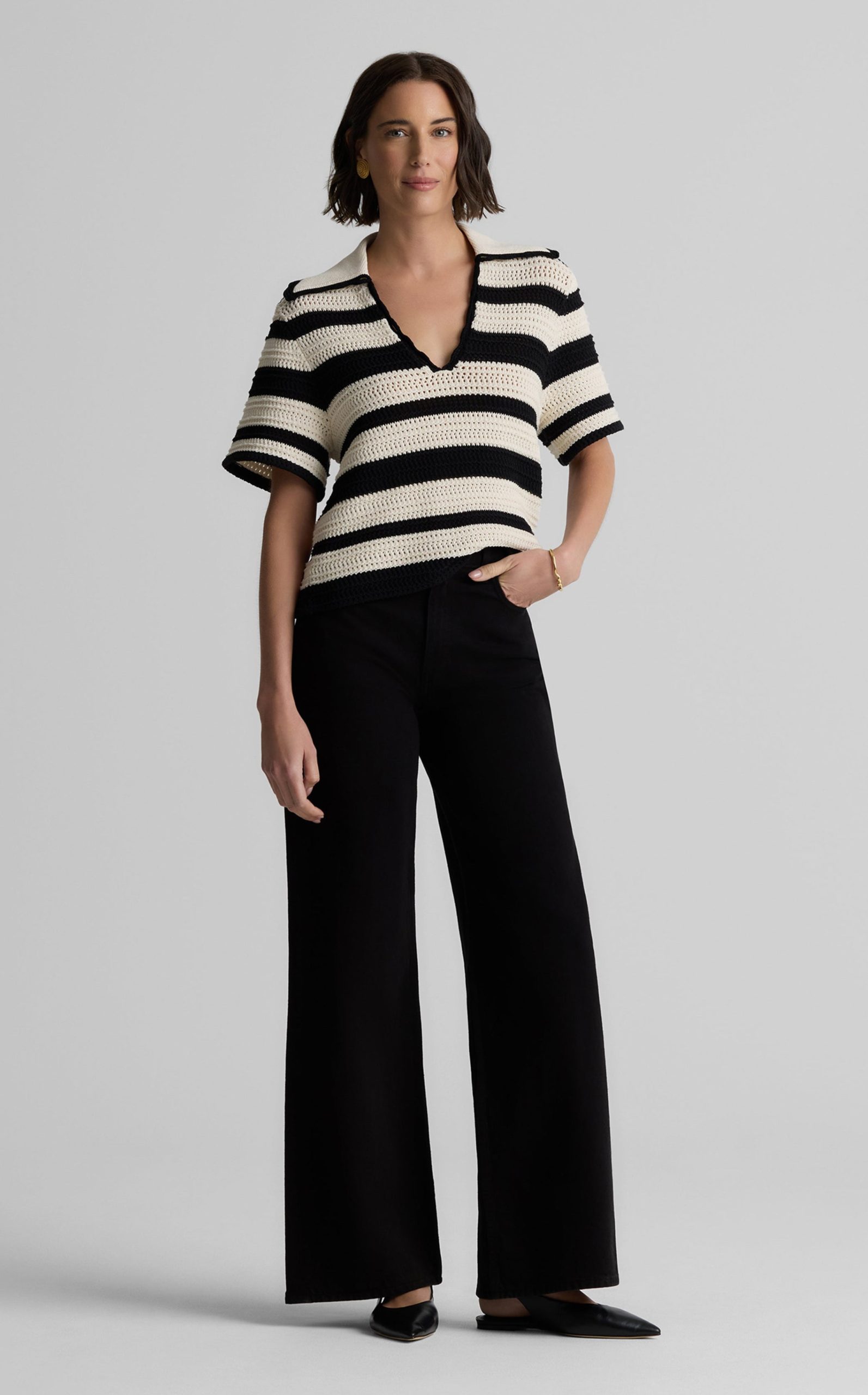 Featuring a seamless pairing of both retro and modern design details, the Reagan nods to the past while feeling fresher than ever for present day wear. With its breezy Striped Pointelle Knit, relaxed t-shirt sleeves, and wing collar, this sweater is a refined take on the classic polo tee, offering your warm weather wardrobe a touch of sporty chic charm that can be worn so many ways.