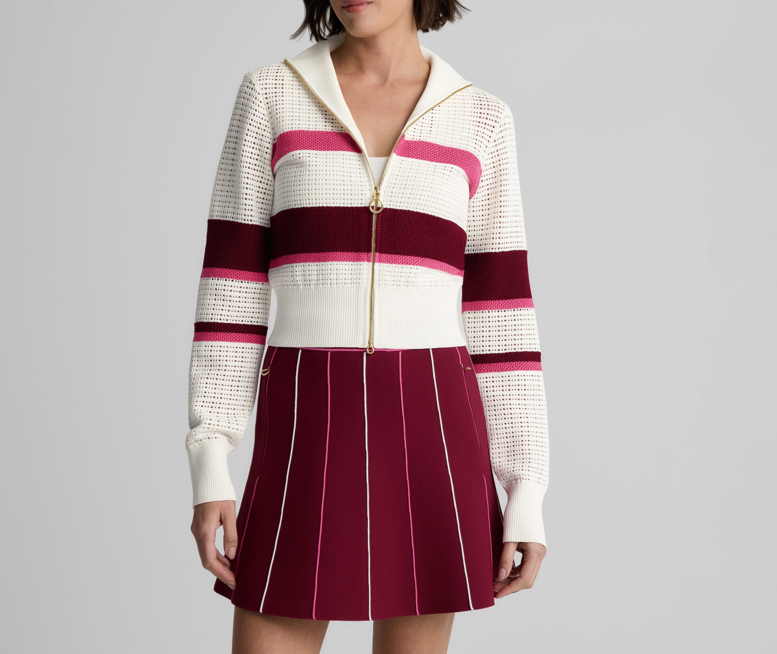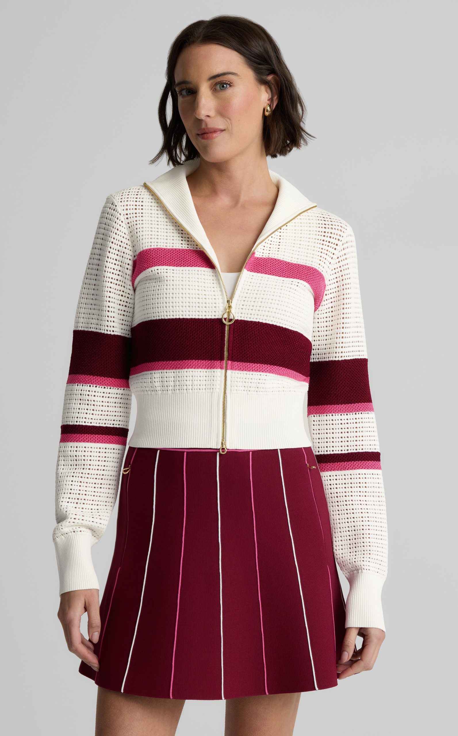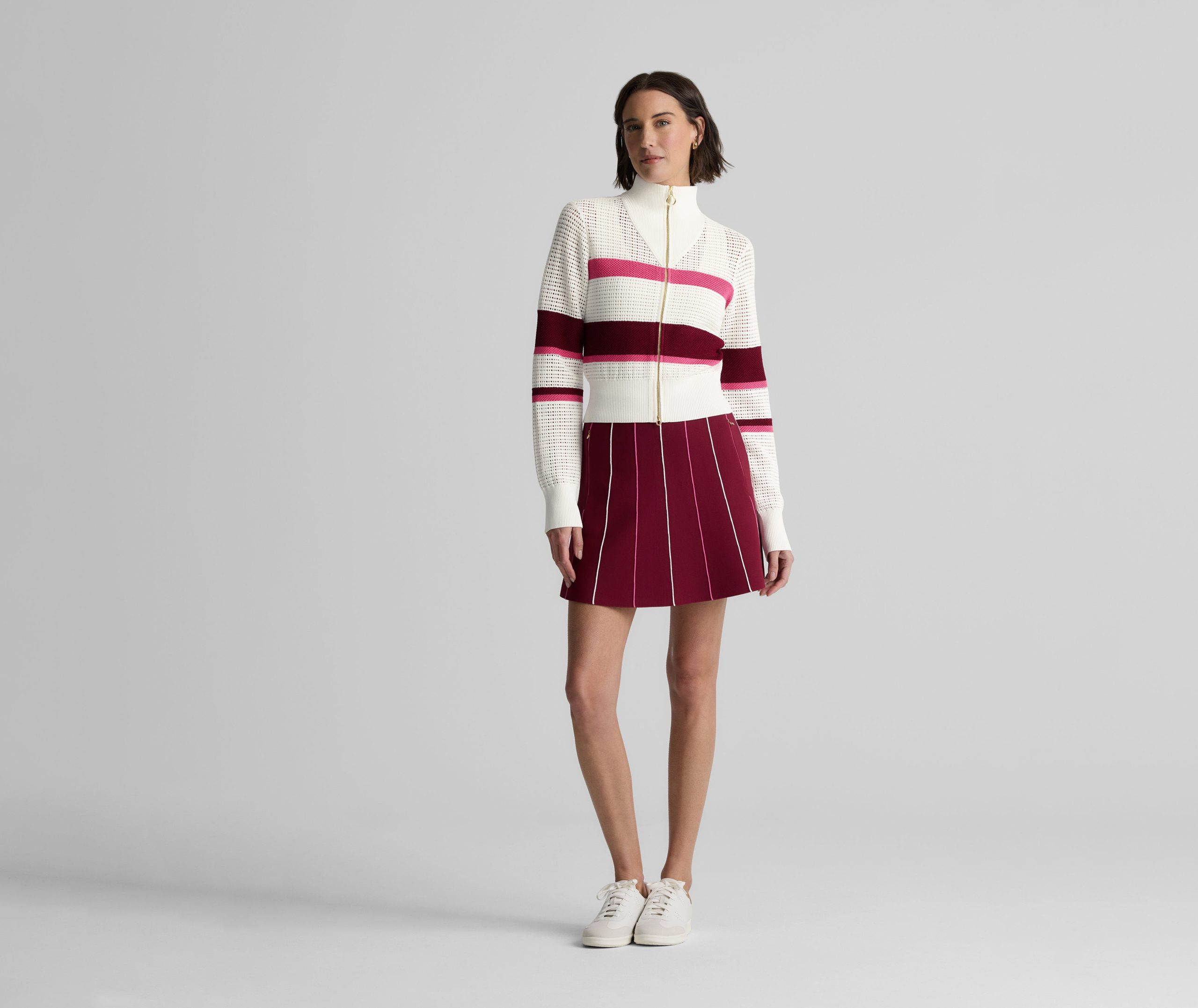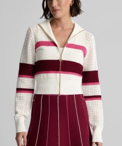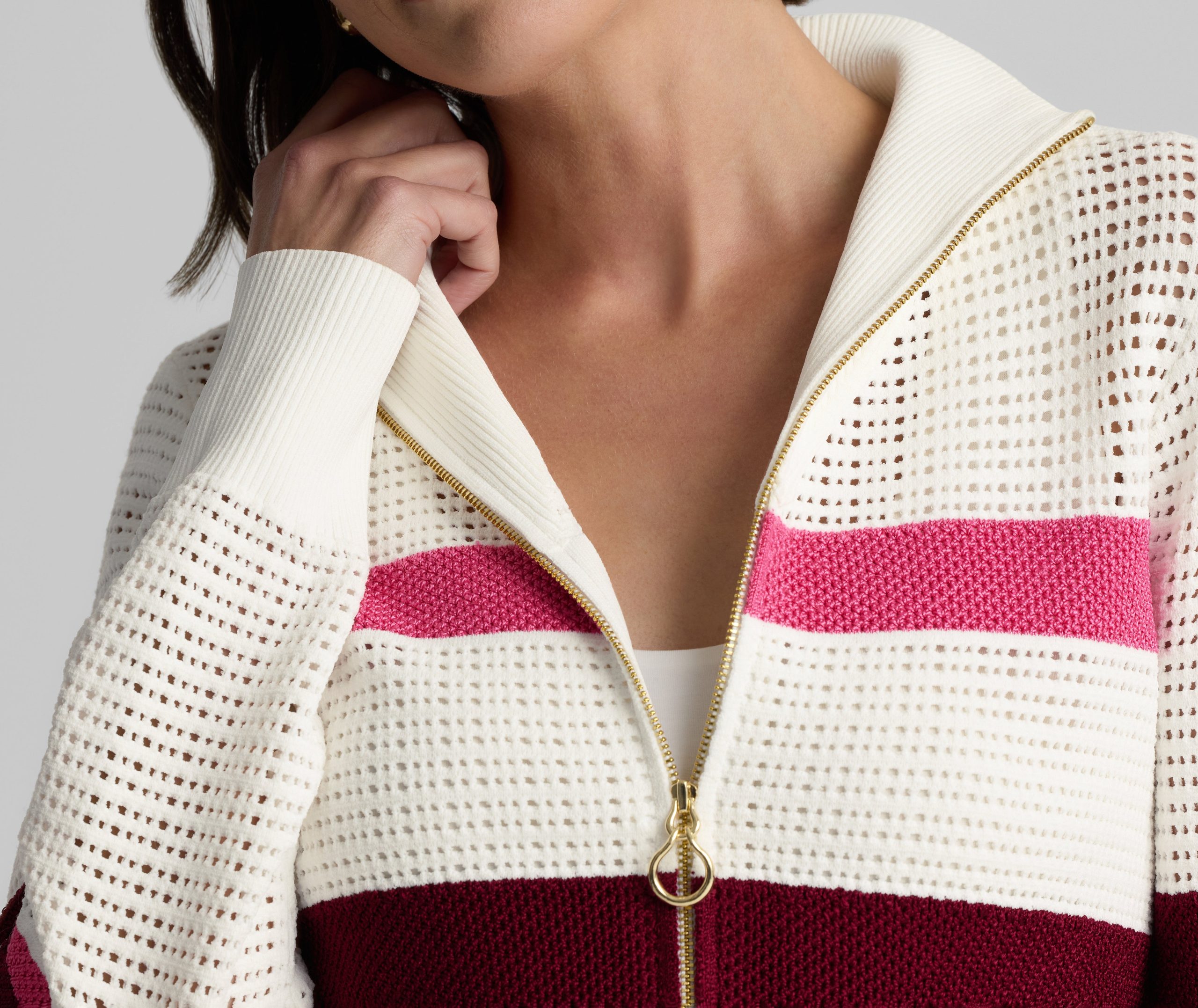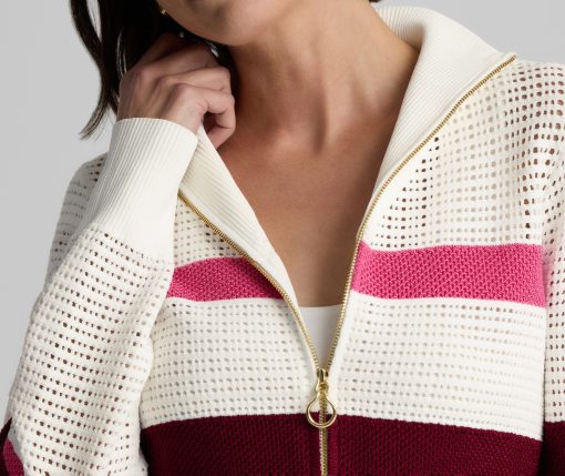 Created in an exclusive collaboration with influential golf brand Malbon, the Savannah adds a luxurious, lightweight layer to your athleisure attire. This zip-up sweater was designed in an airy open knit to feel like a breeze on a sunny day and finished with gold hardware and ribbed trim for a refined take on sporty style.