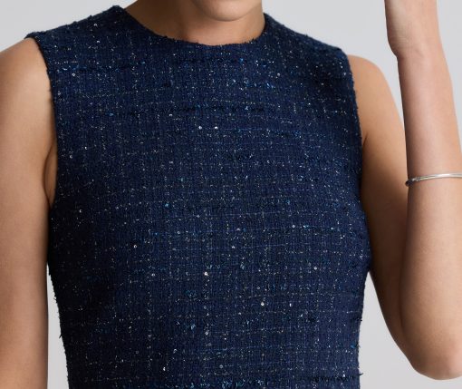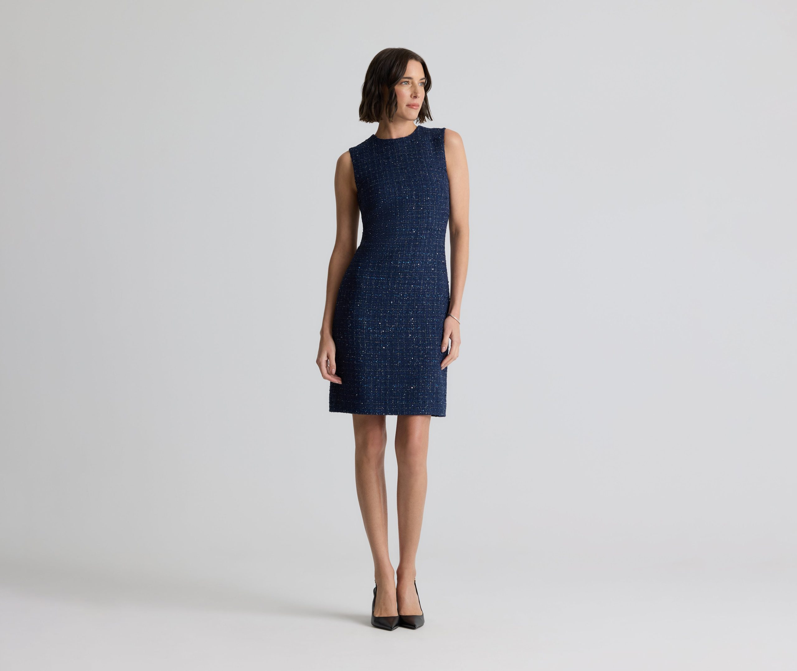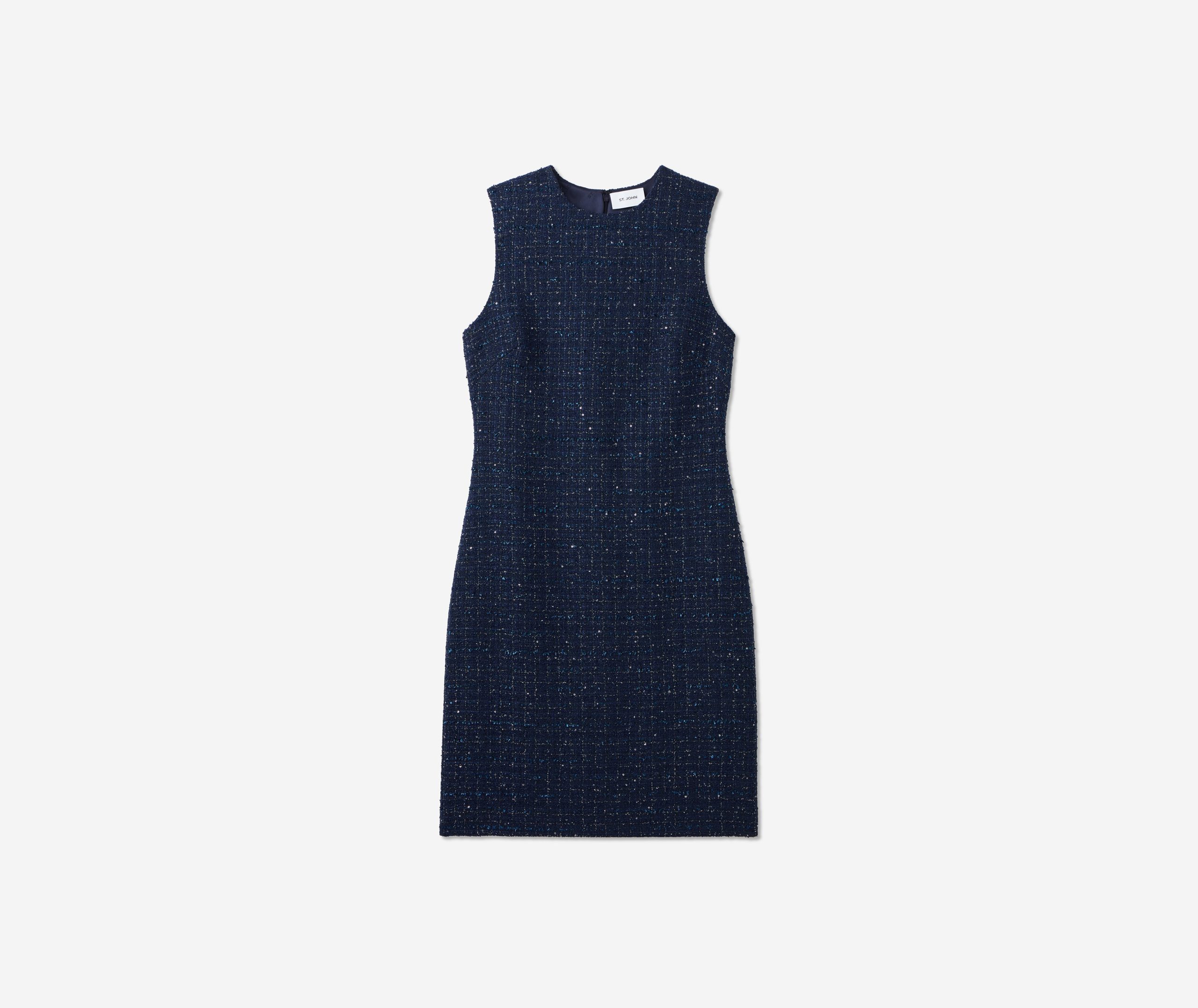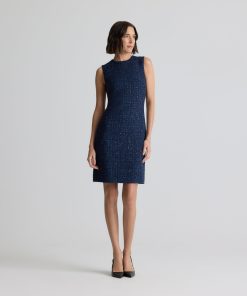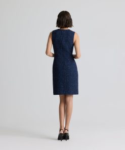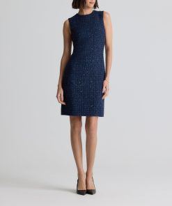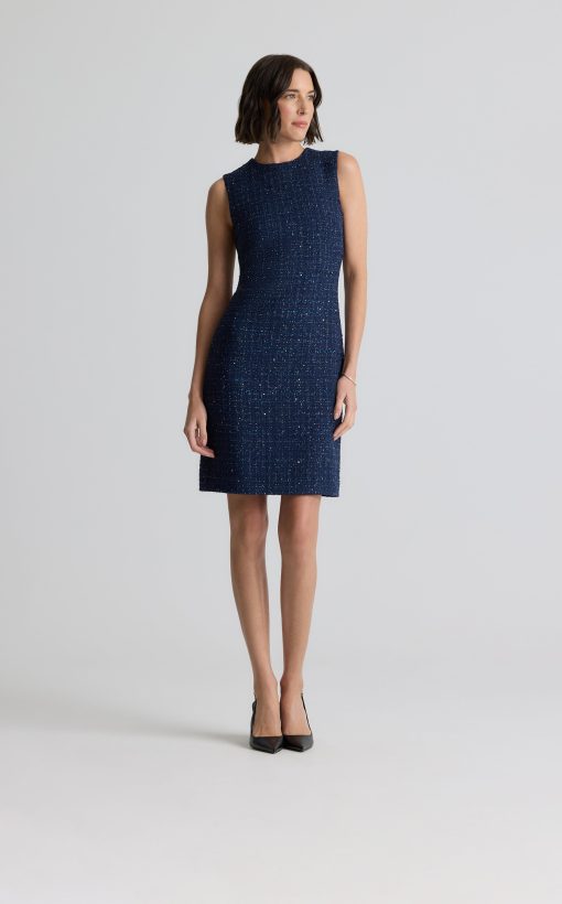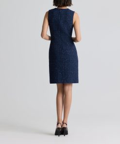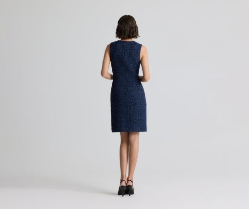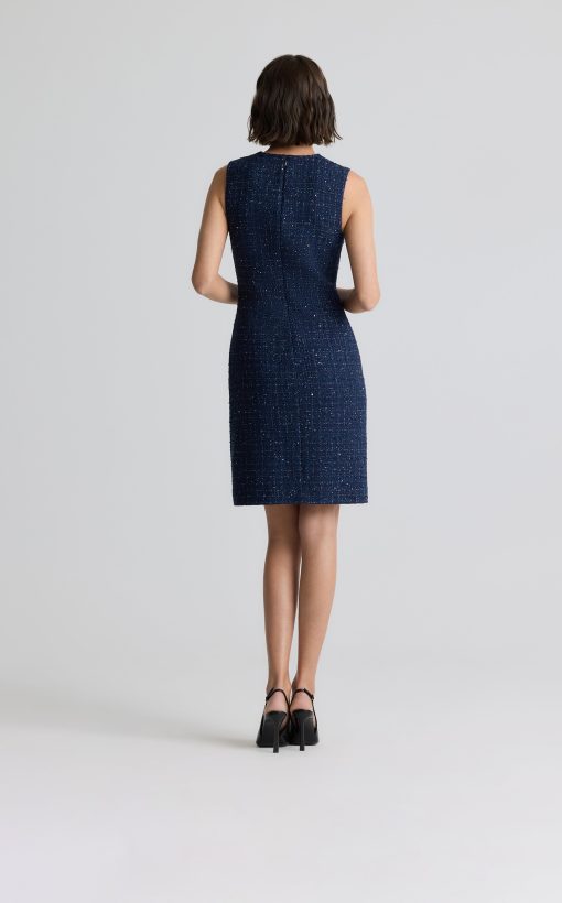 A subtle micro check print is woven in fine tweed, as a spray of sprinkles dresses up the fabric in this button-front jacket-style dress.All Sales are Final. No Returns or Exchanges.