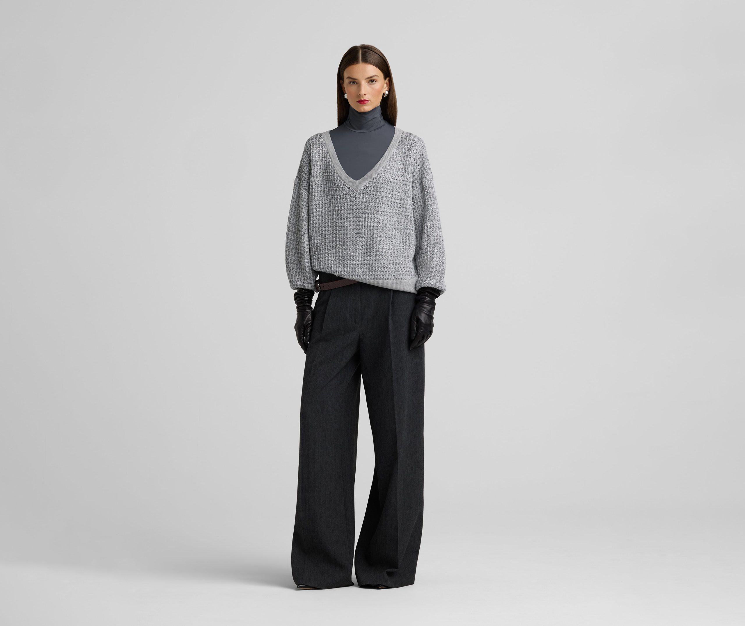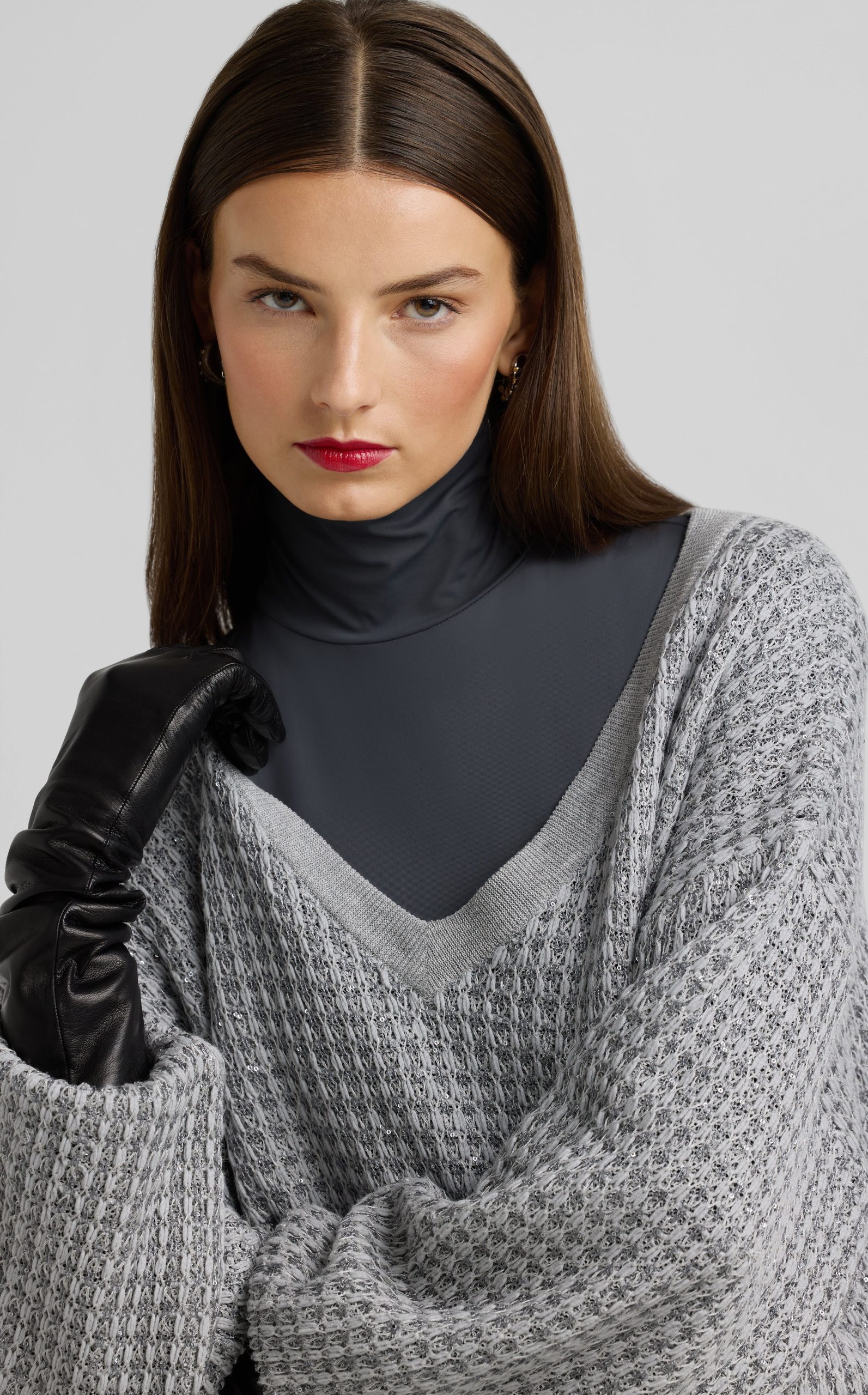 Sparkly sequins dress up a relaxed fit, textured V-neck sweater, a cozy and chic piece that elevates daytime wear and goes full glam for evening.All Sales are Final. No Returns or Exchanges.