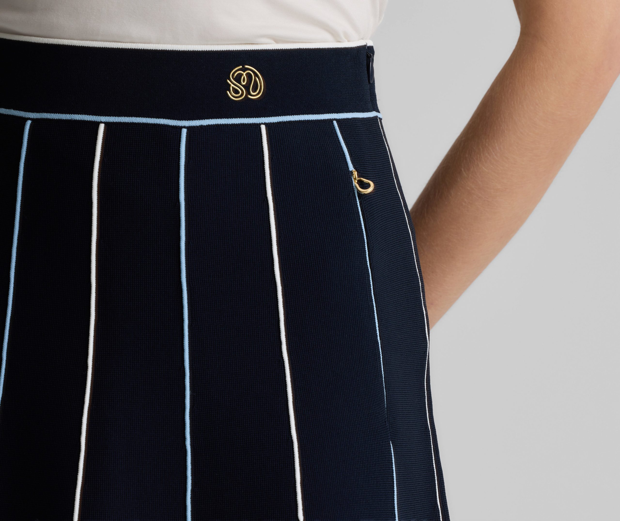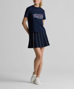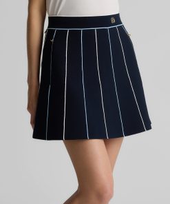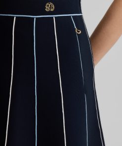 Created in an exclusive collaboration with influential golf brand Malbon, the Serena was designed to give your sportswear wardrobe a playfully chic update. Crafted from stretchy Santa Roma Knit in deep Garnet for a smooth look and flexible fit, this flared skirt features signature details including contrast piping, gold hardware, and logo embroidery to stand out in any casually chic setting.
