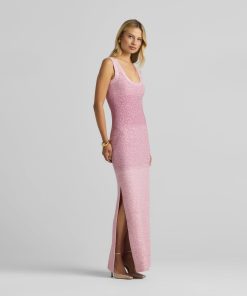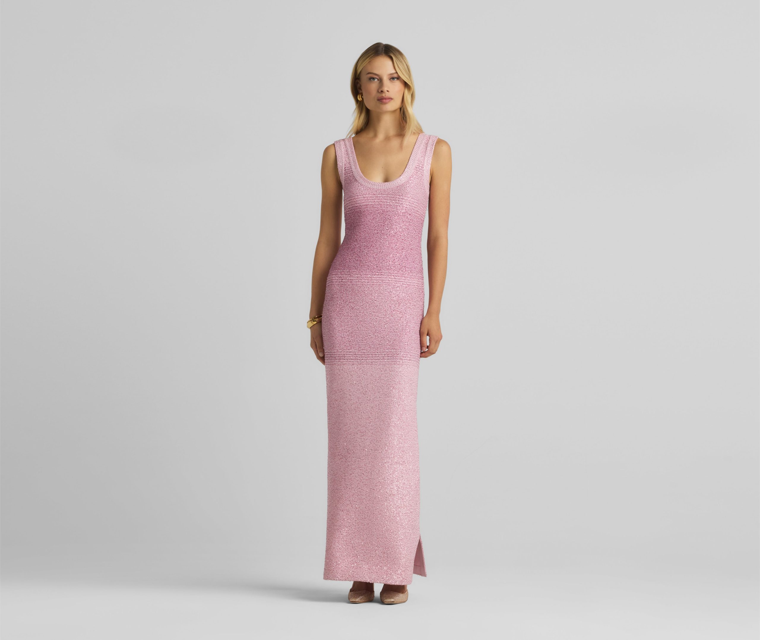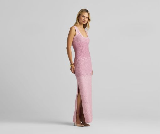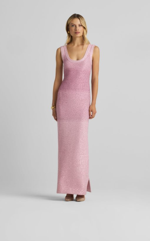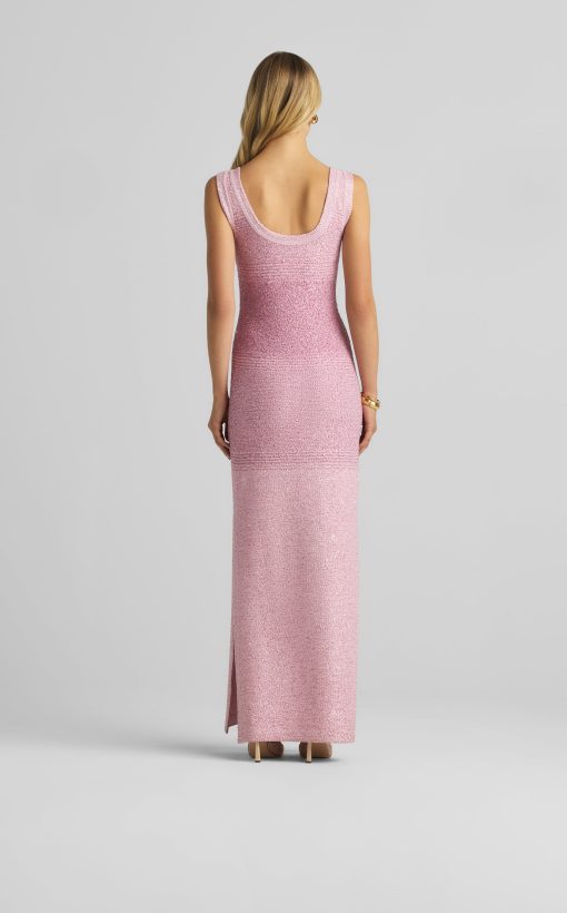 A ribbed scoop neck freshens this sparkly sleeveless gown, crafted in a degrade sequin ombré knit with subtle striping and side slits.All Sales are Final. No Returns or Exchanges.