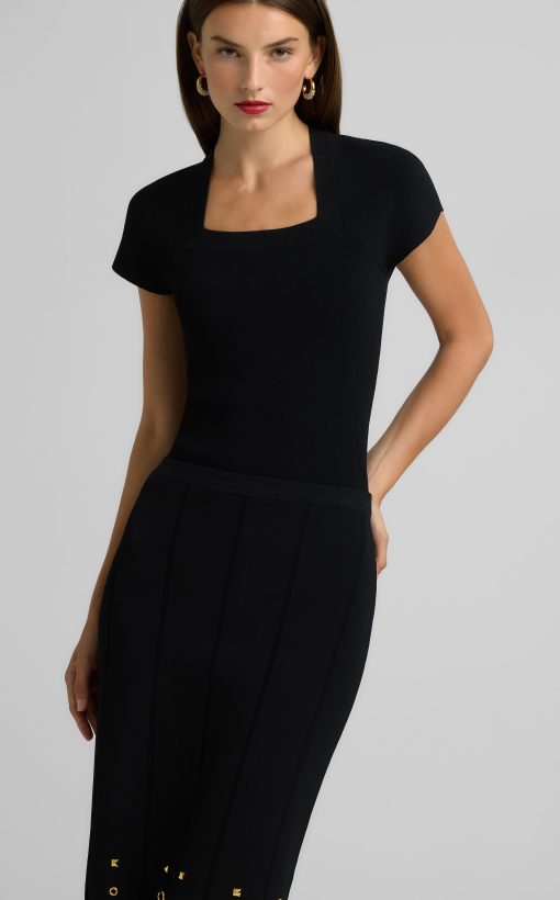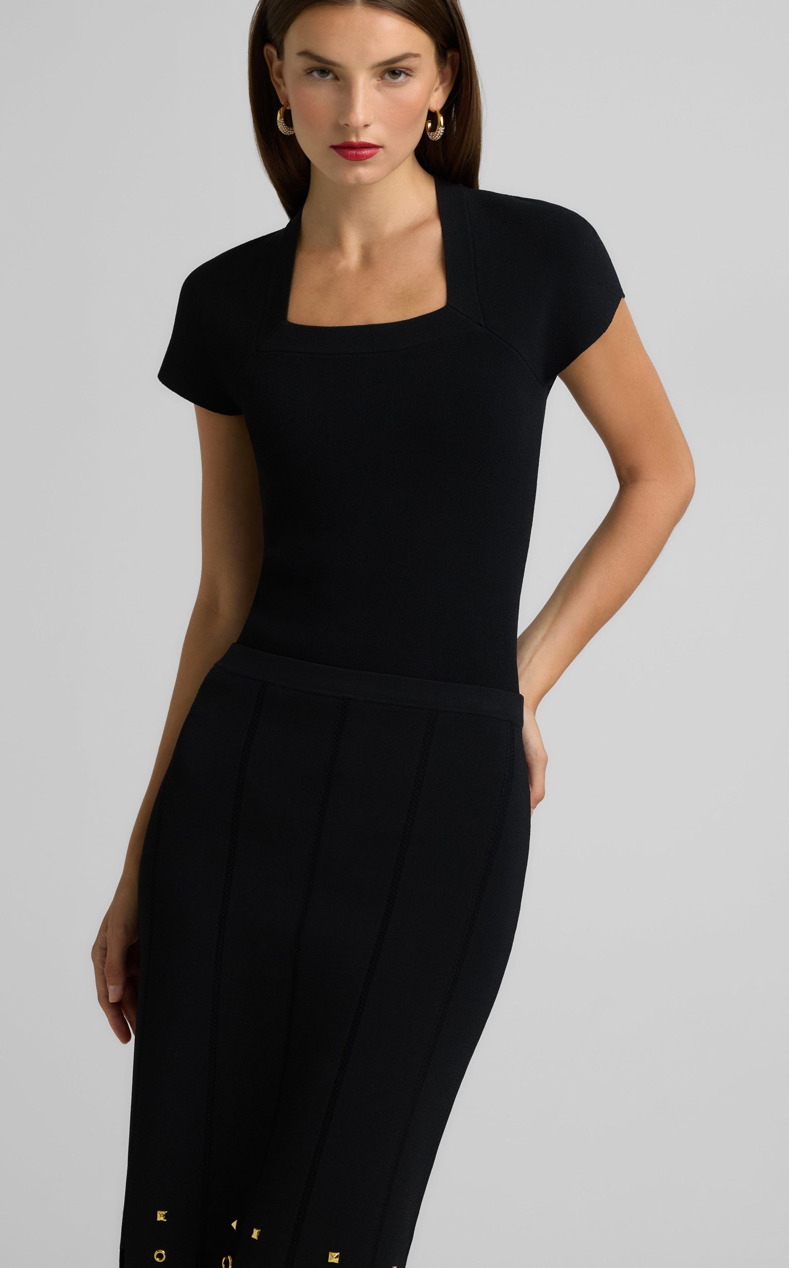 With a nod to the ’90s, this square neck short sleeve knit sweater brings personality to the pretty top, easy to dress up or down for endless looks.All Sales are Final. No Returns or Exchanges.