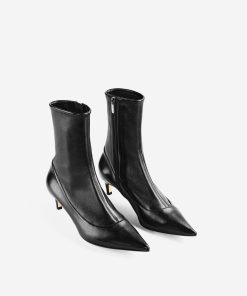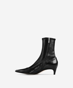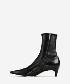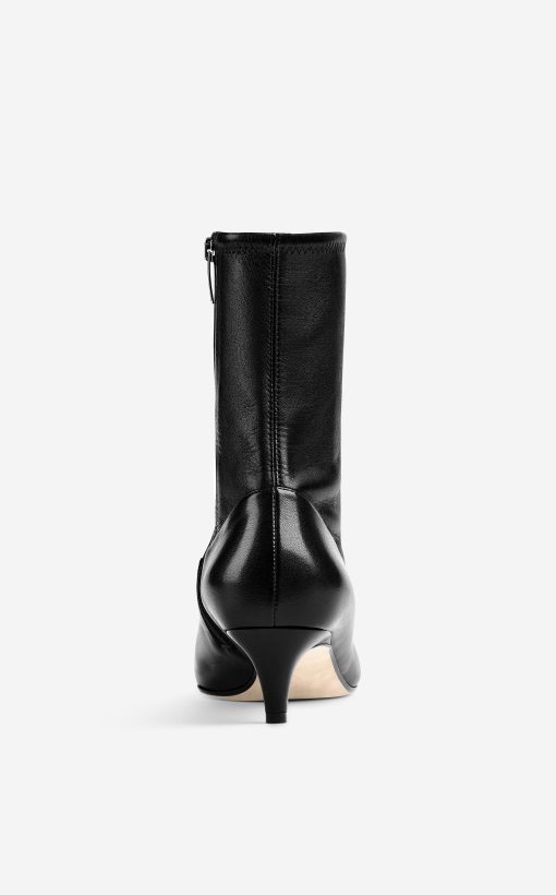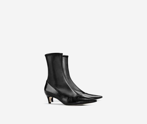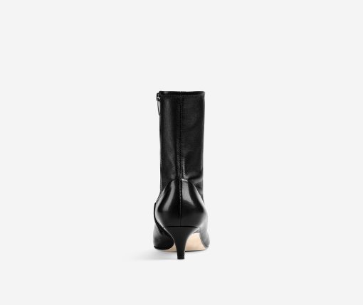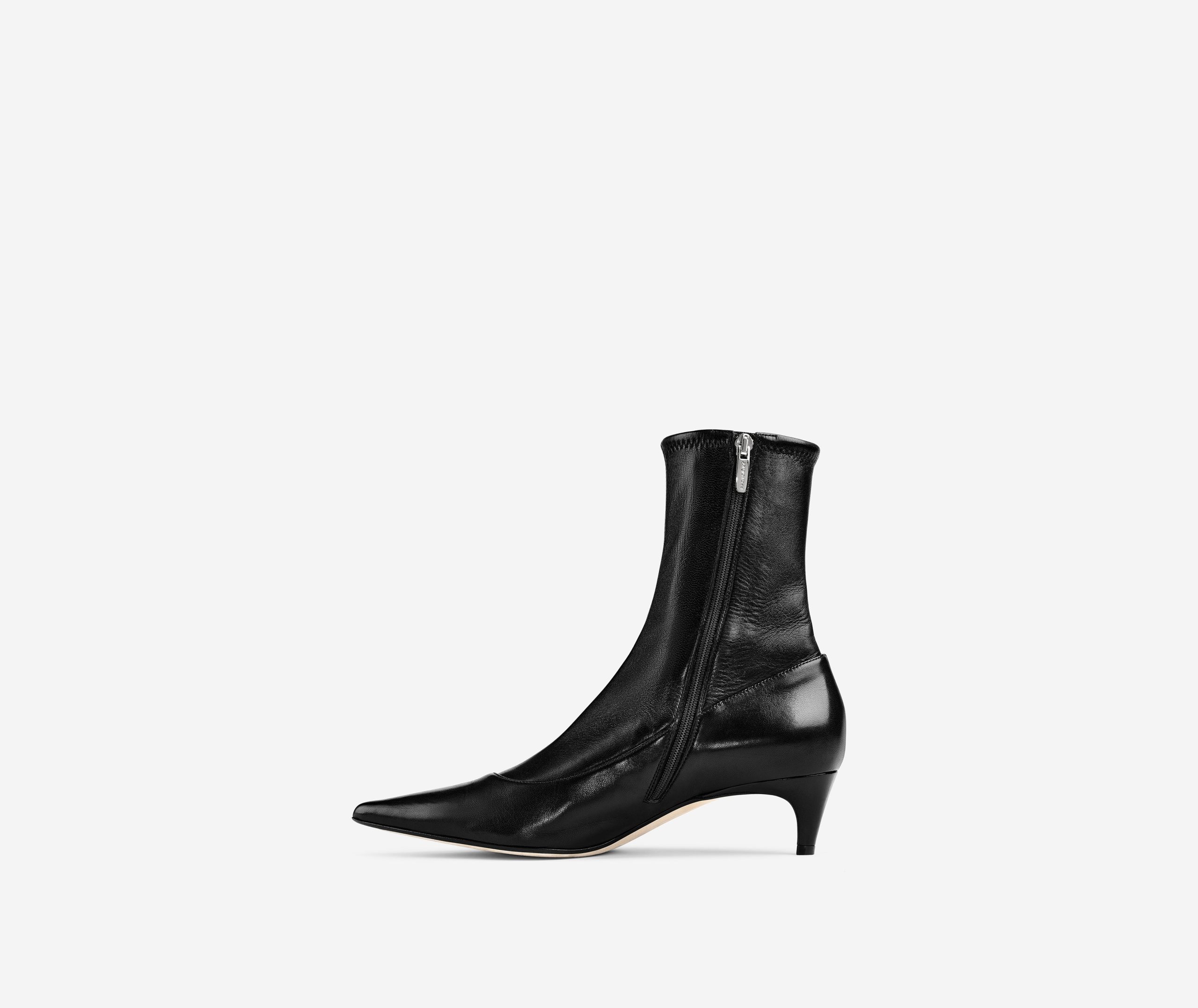 With a perfectly pointed toe and vintage-inspired seaming, this stretch leather kitten heeled bootie is the must-have short boot, complete with a zipper for easy wear.Sergio Rossi presents a special collection for St. John. Your footwear will be delivered in a Sergio Rossi shoebox, with St. John branding on the insole.