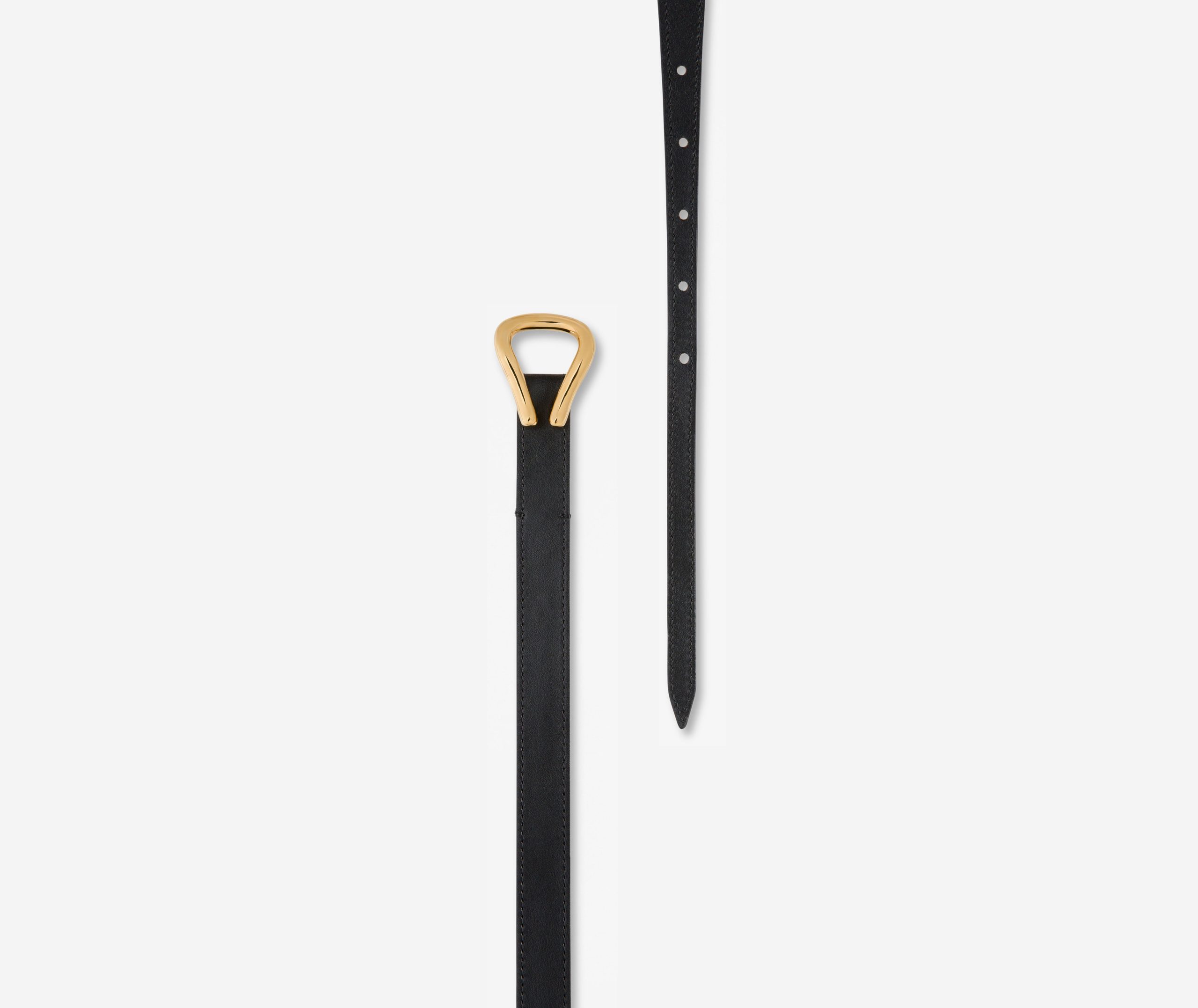 A thinner version of our signature Loop Belt, this 3/4″ leather belt with gold hardware is a daintier choice for pants and dresses alike.
