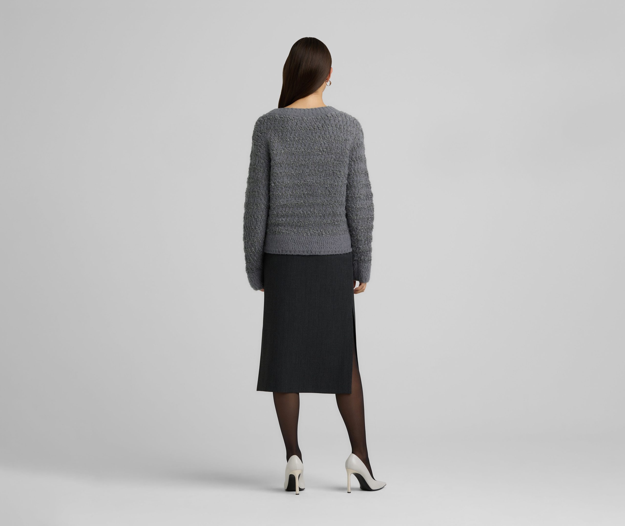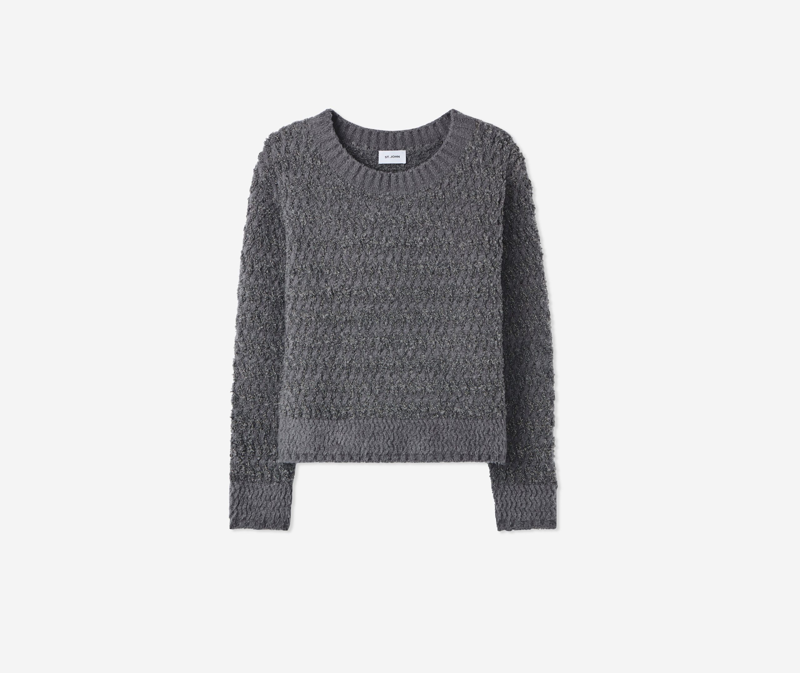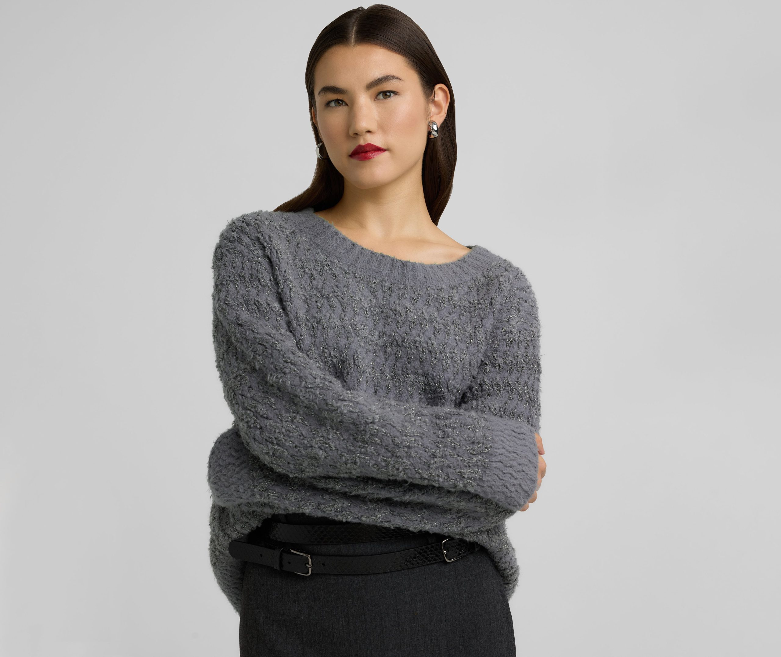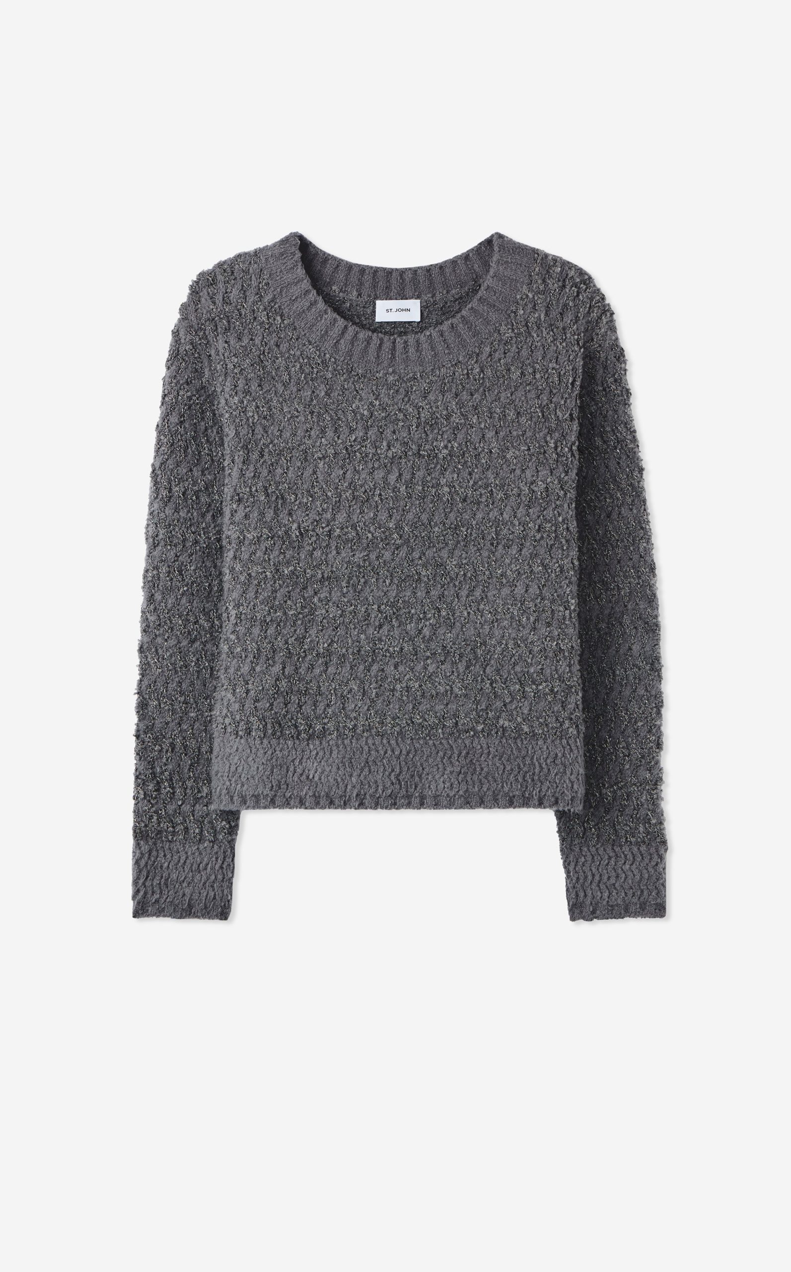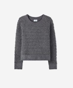 Two tones of grey threads emphasize the immaculate cable-knit texture woven into this cotton-blend crewneck sweater, a cozy, chunky staple.All Sales are Final. No Returns or Exchanges.