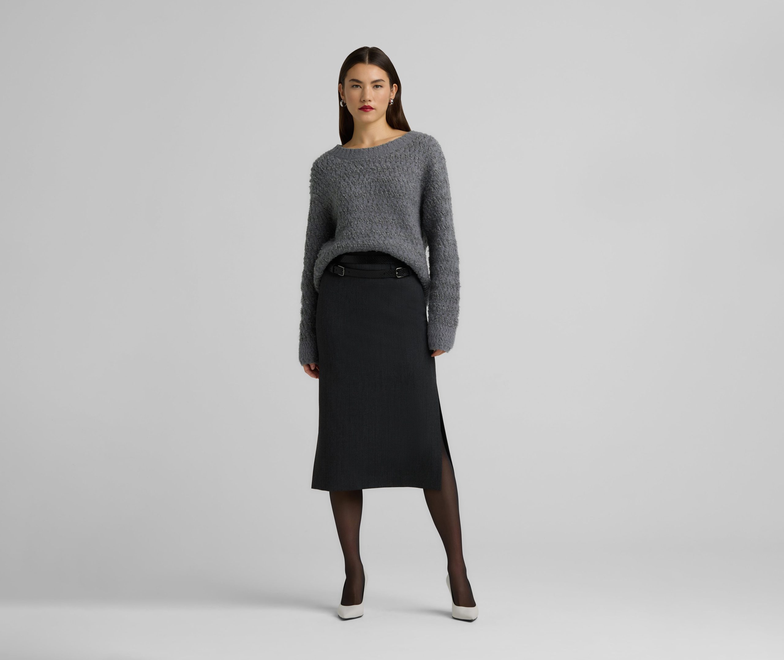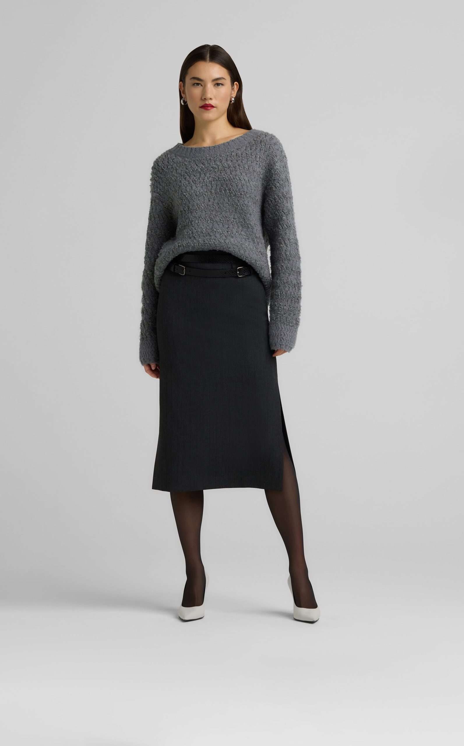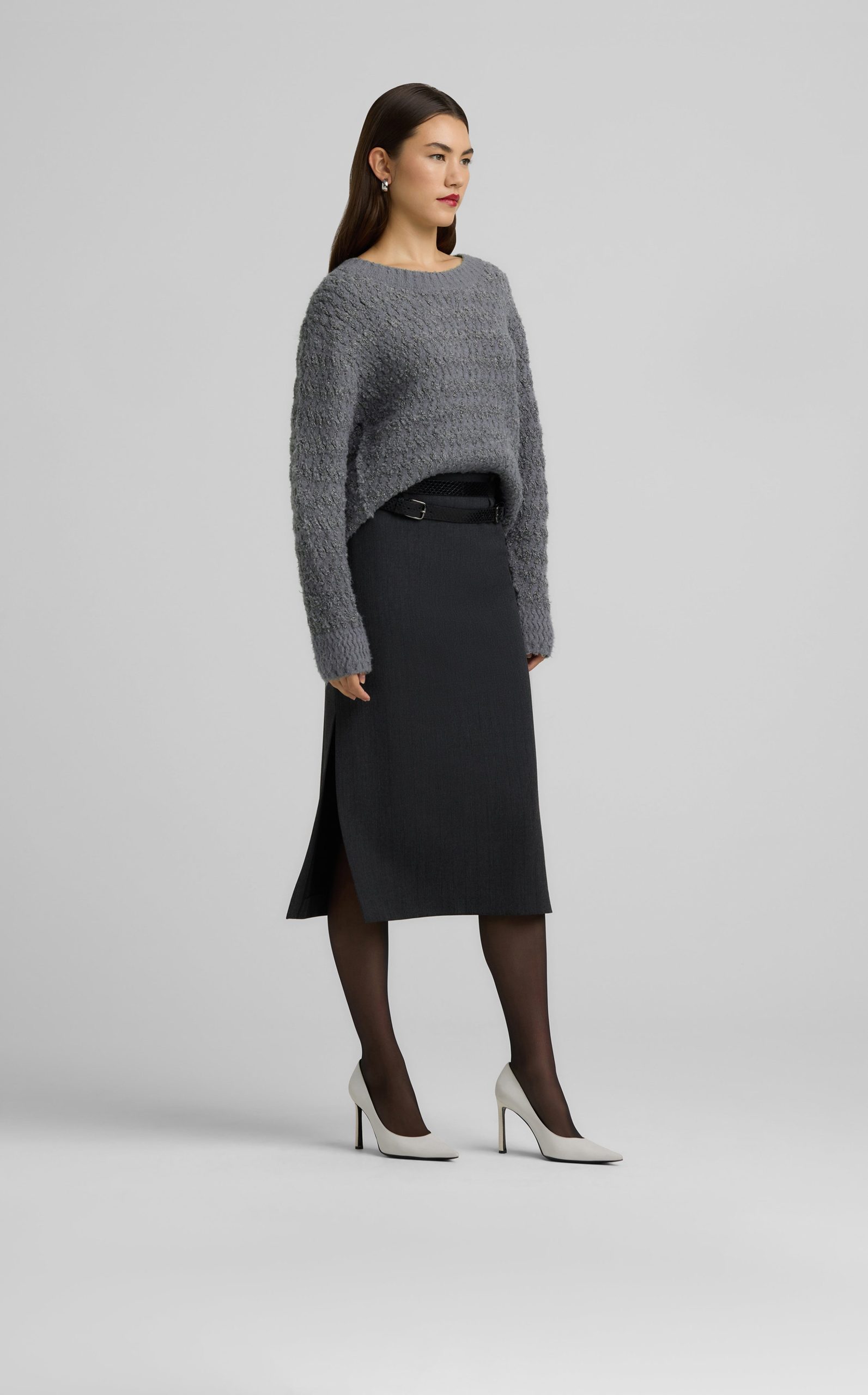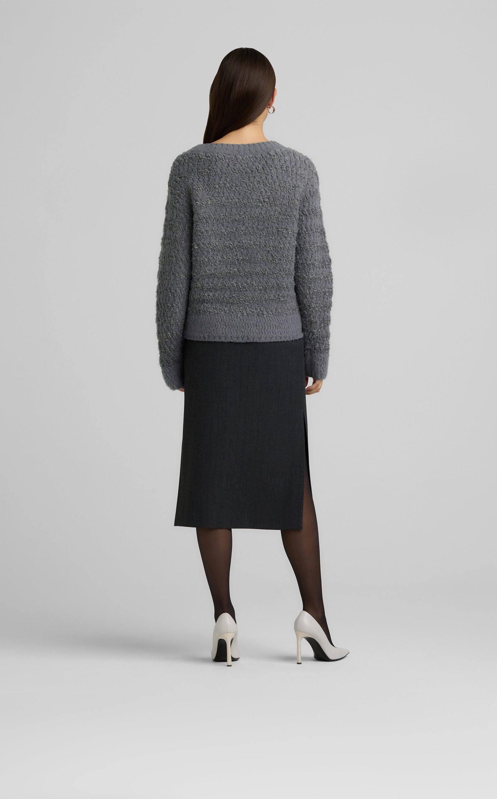 Two tones of grey threads emphasize the immaculate cable-knit texture woven into this cotton-blend crewneck sweater, a cozy, chunky staple.All Sales are Final. No Returns or Exchanges.