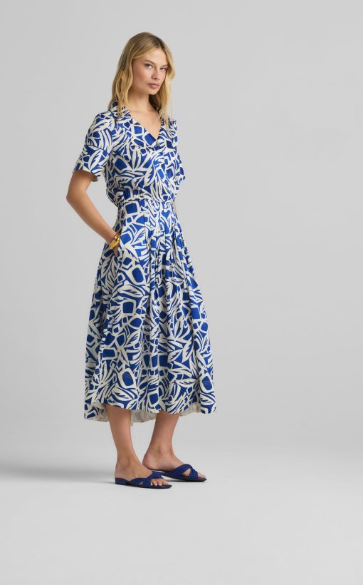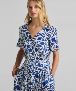 A vintage-inspired button-front shirt dress features short sleeves and a midi length, while a bold botanical pattern livens up the timeless look.All Sales are Final. No Returns or Exchanges.