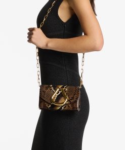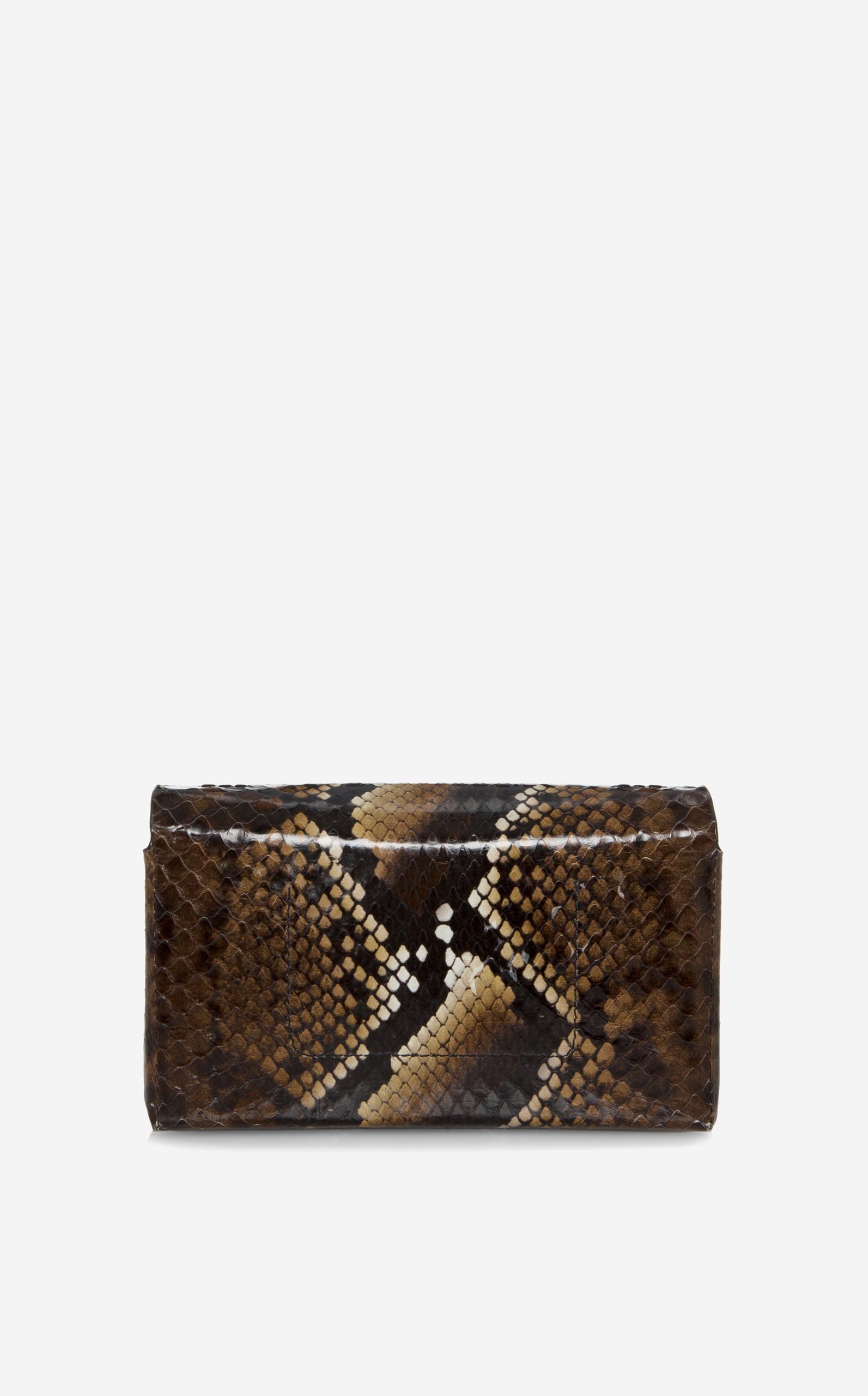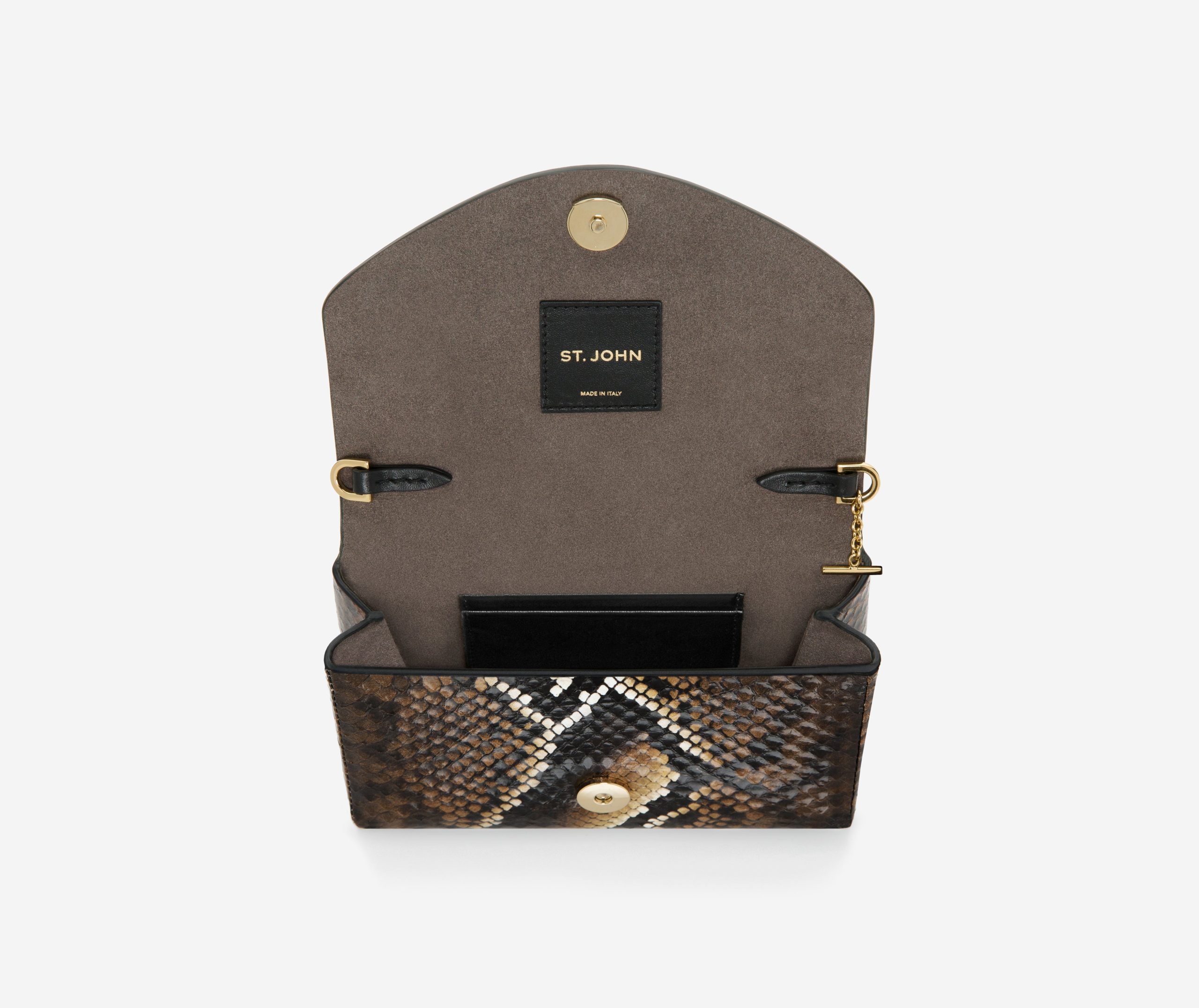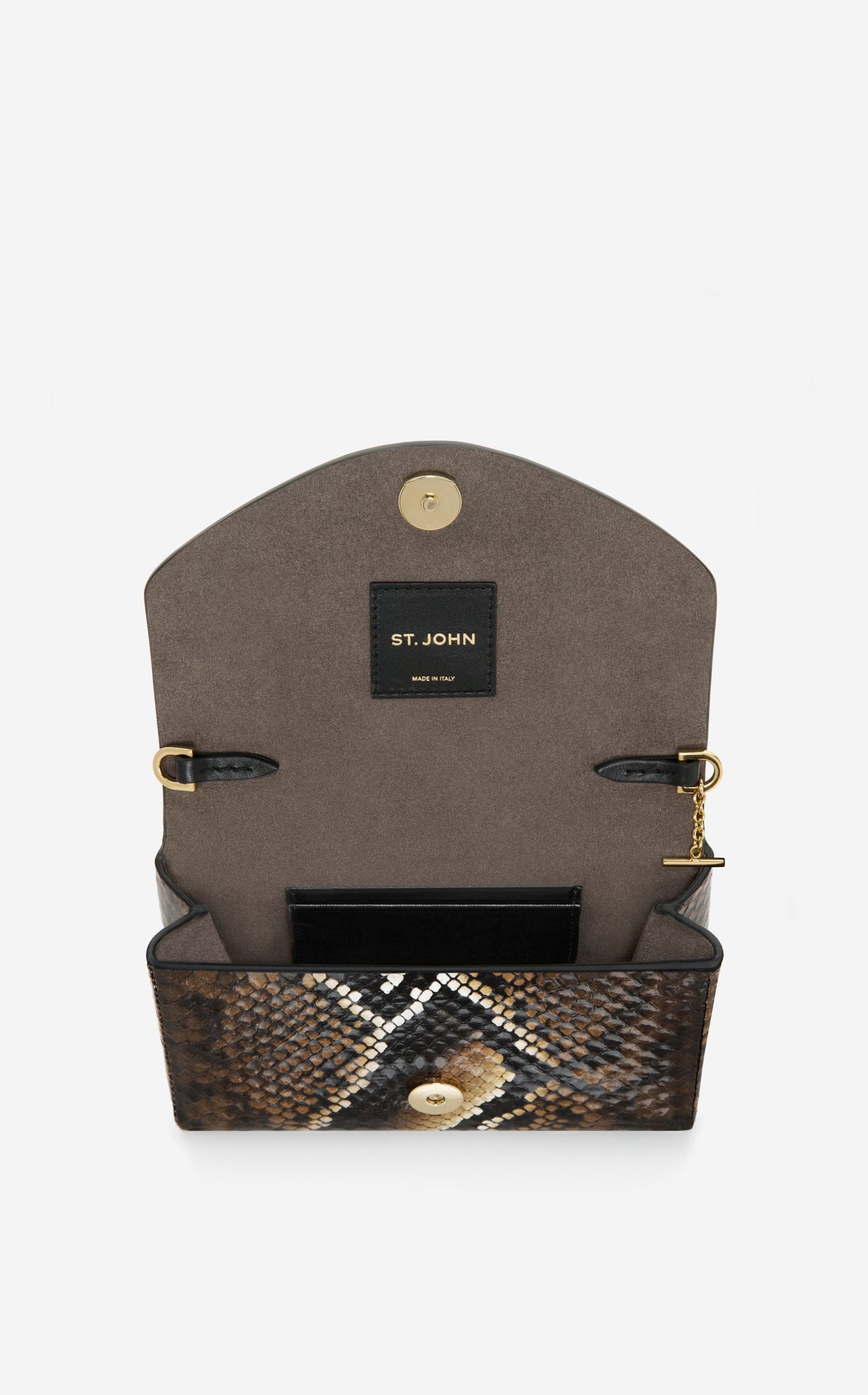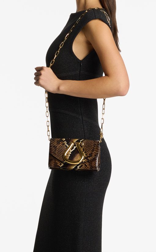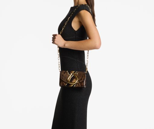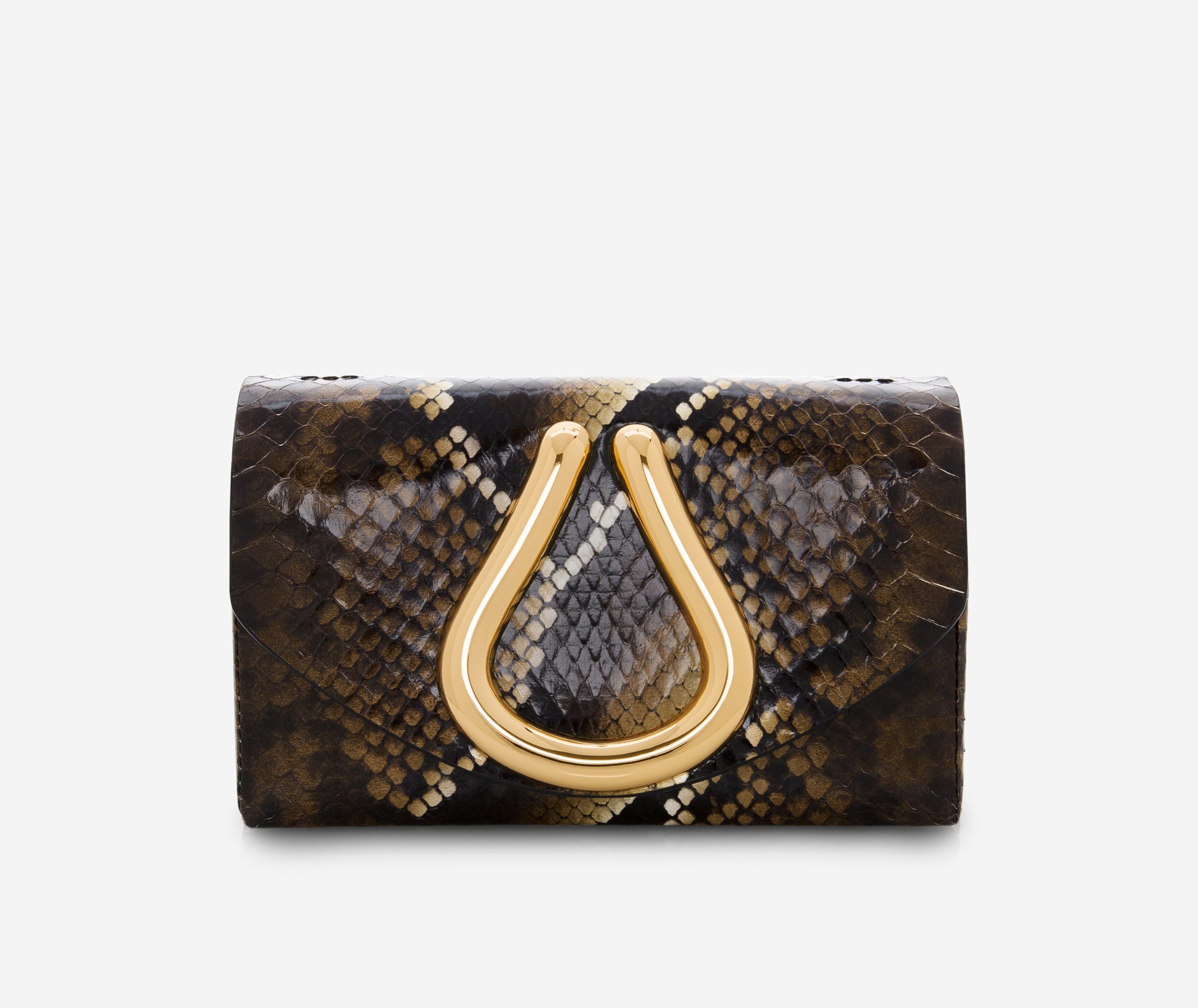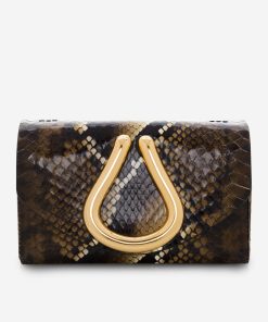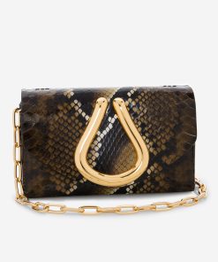 Mini Loop watersnake handbag with front flap, metal loop detail and removable chain strap. Lend a luxe note to your everyday with this mini version of our Loop leather handbag. Elegant snake patterning and the gleaming metal loop detail create a sumptuous contrast.Offers complimentary delivery and returns. Delivery and Return Policy
